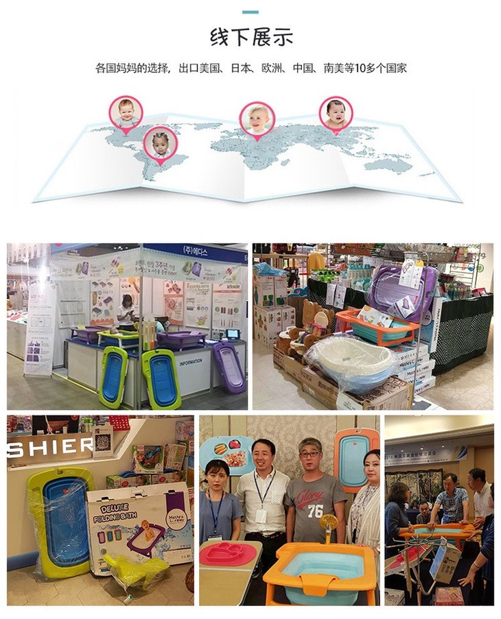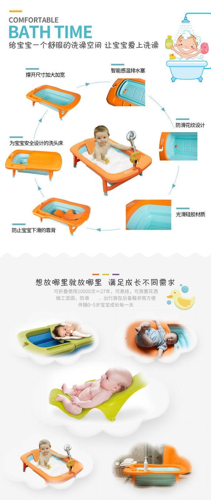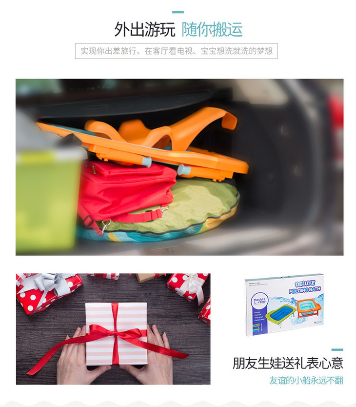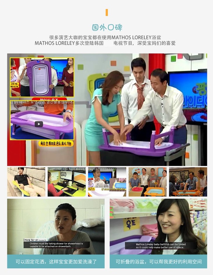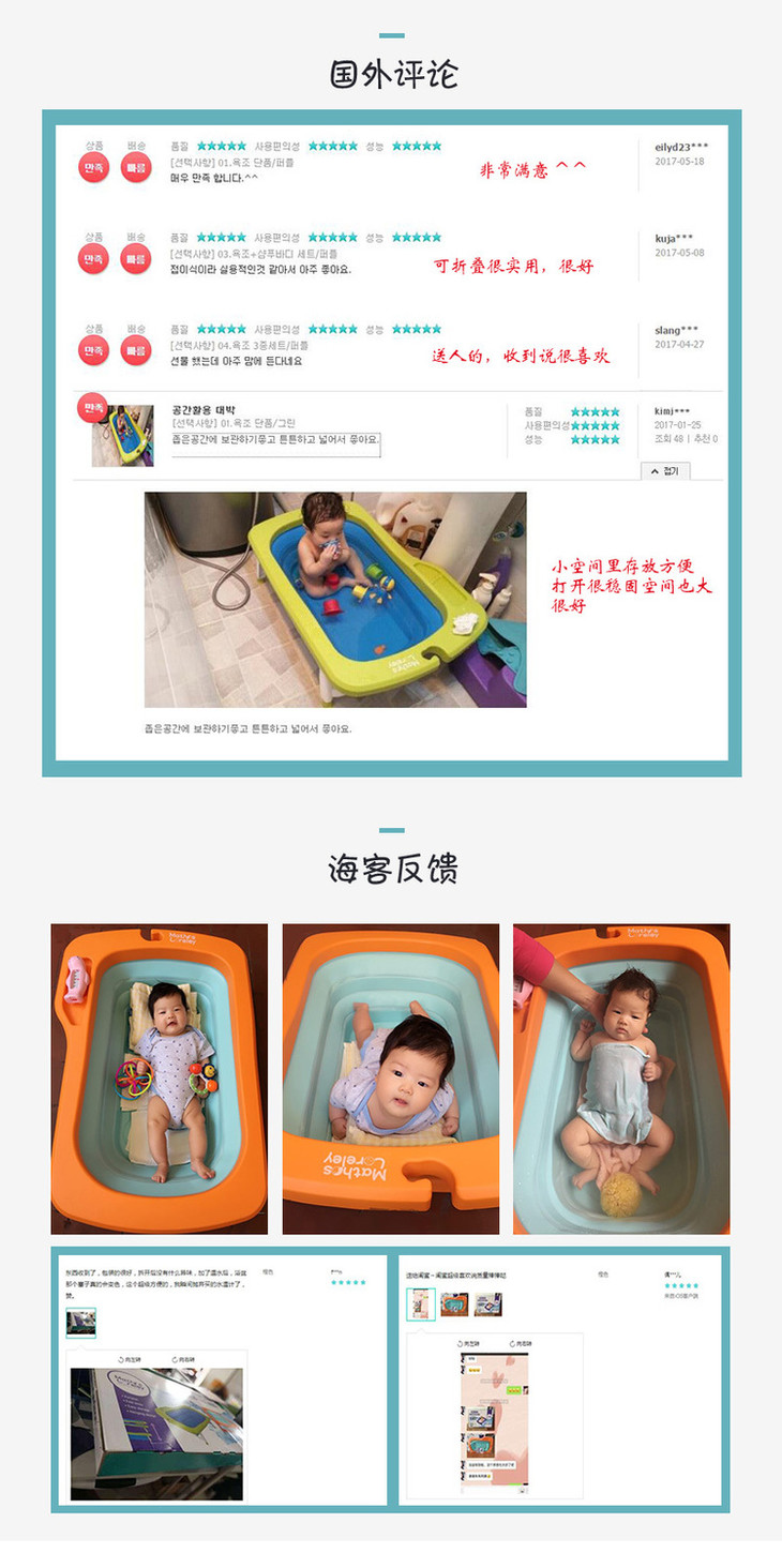 【一般贸易】韩国原产Mathos Loreley婴儿浴盆澡盆便携感温可折叠浴盆 橙色 展开前:87.5*58*9cm,展开后:87.5*58*23cm