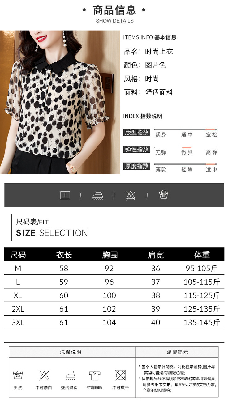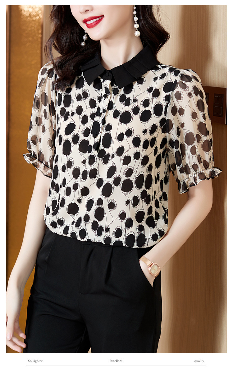 仿真丝洋气波点短袖上衣K-413H6319