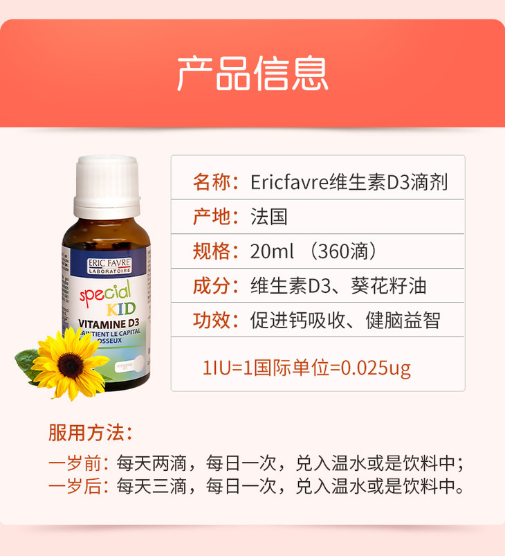 【保税仓】法国ERIC FAVRE埃里克儿童D3滴剂20ml 商品图0