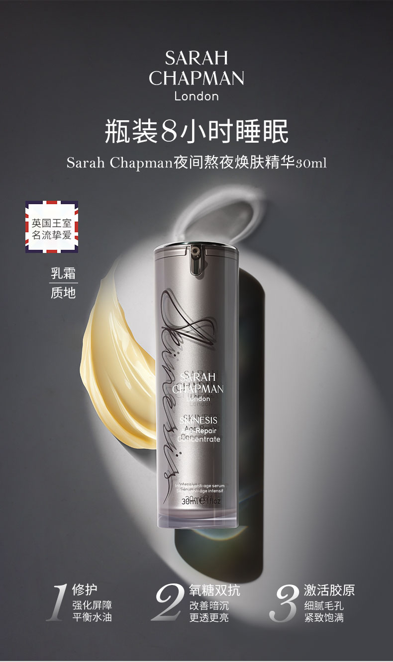 熬夜精华乳30ml,送抗老日霜10ml*1+卸妆膏20ml*2【美仓保税】