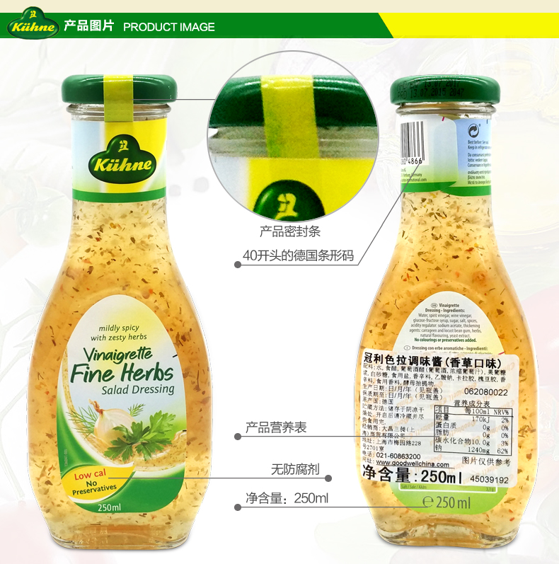 德国冠利香草沙拉酱(复合调味料) 250ml/030060-2 口味清新酸甜口感百搭款