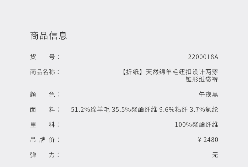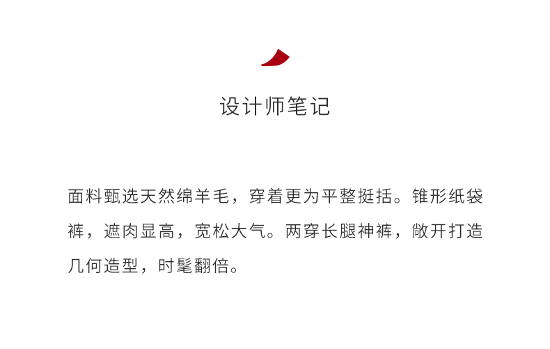 【折纸】天然绵羊毛纽扣设计两穿锥形纸袋裤/2200018A