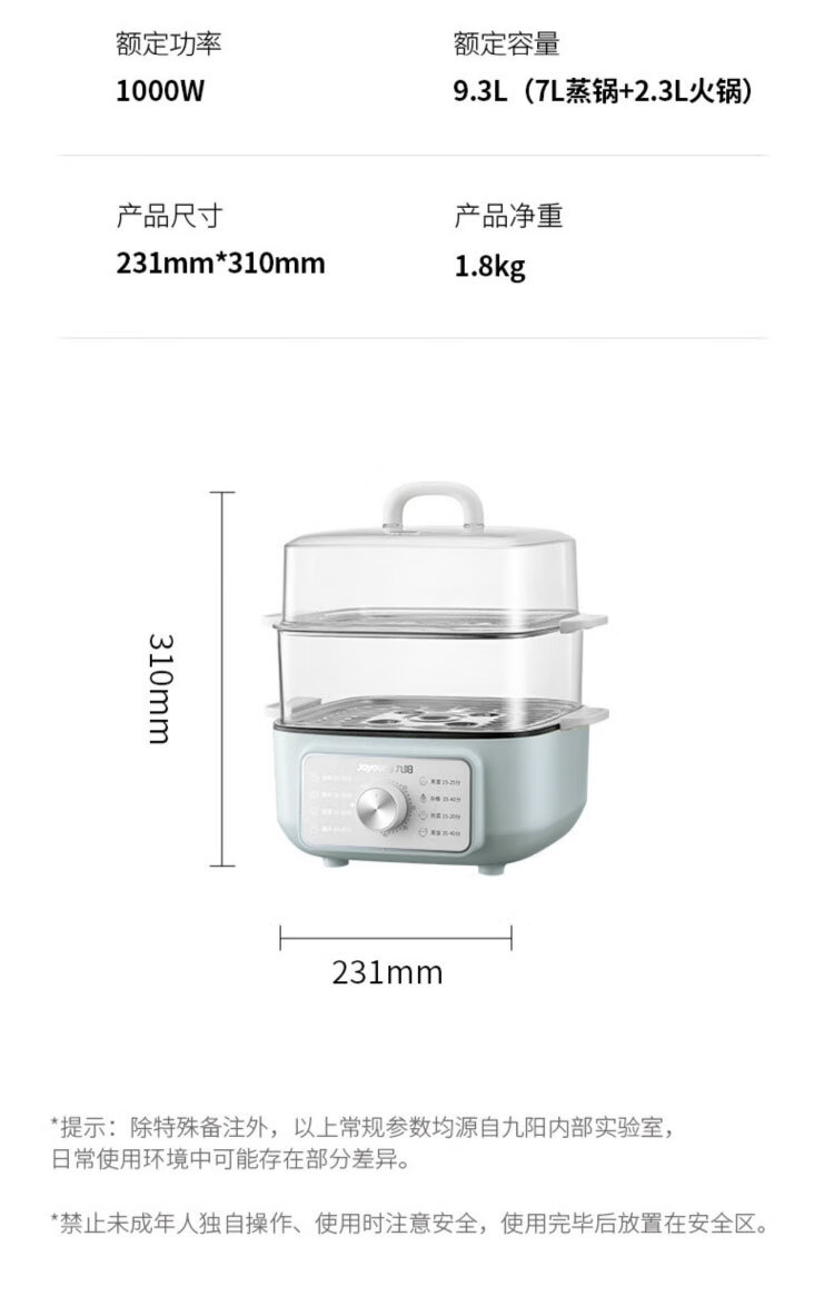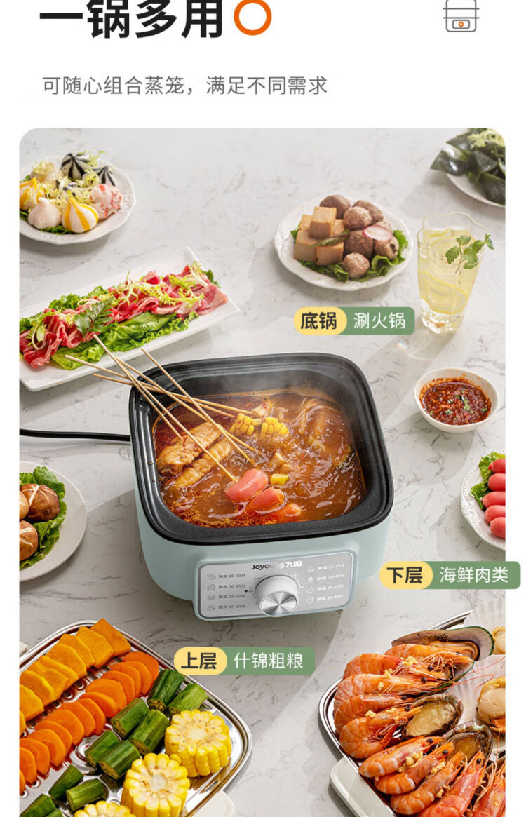 九阳2.3L火锅+3.5L*2电蒸锅二合一ZD20-GE620
