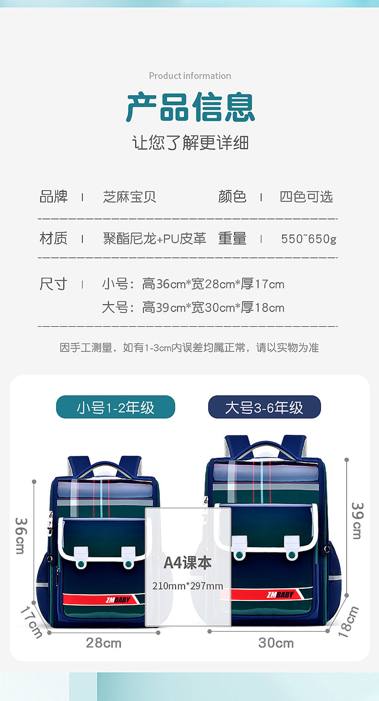 【芝麻宝贝】小学生一二三至九年级书包