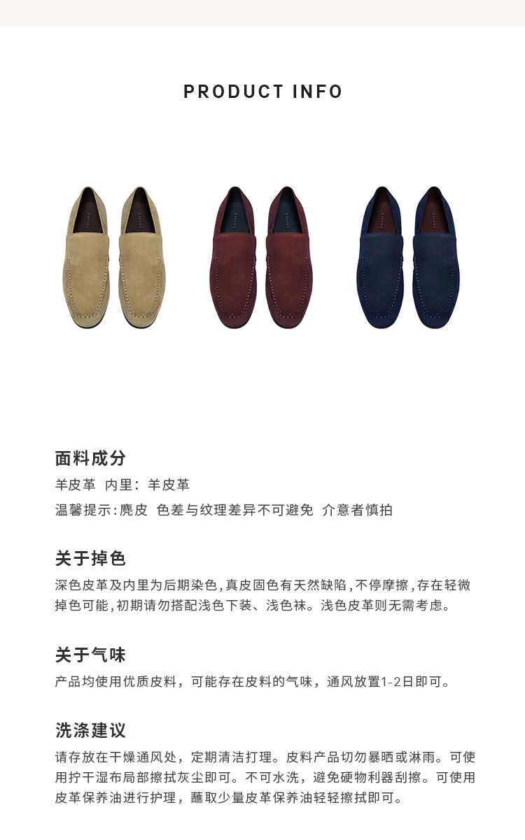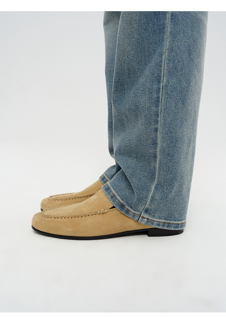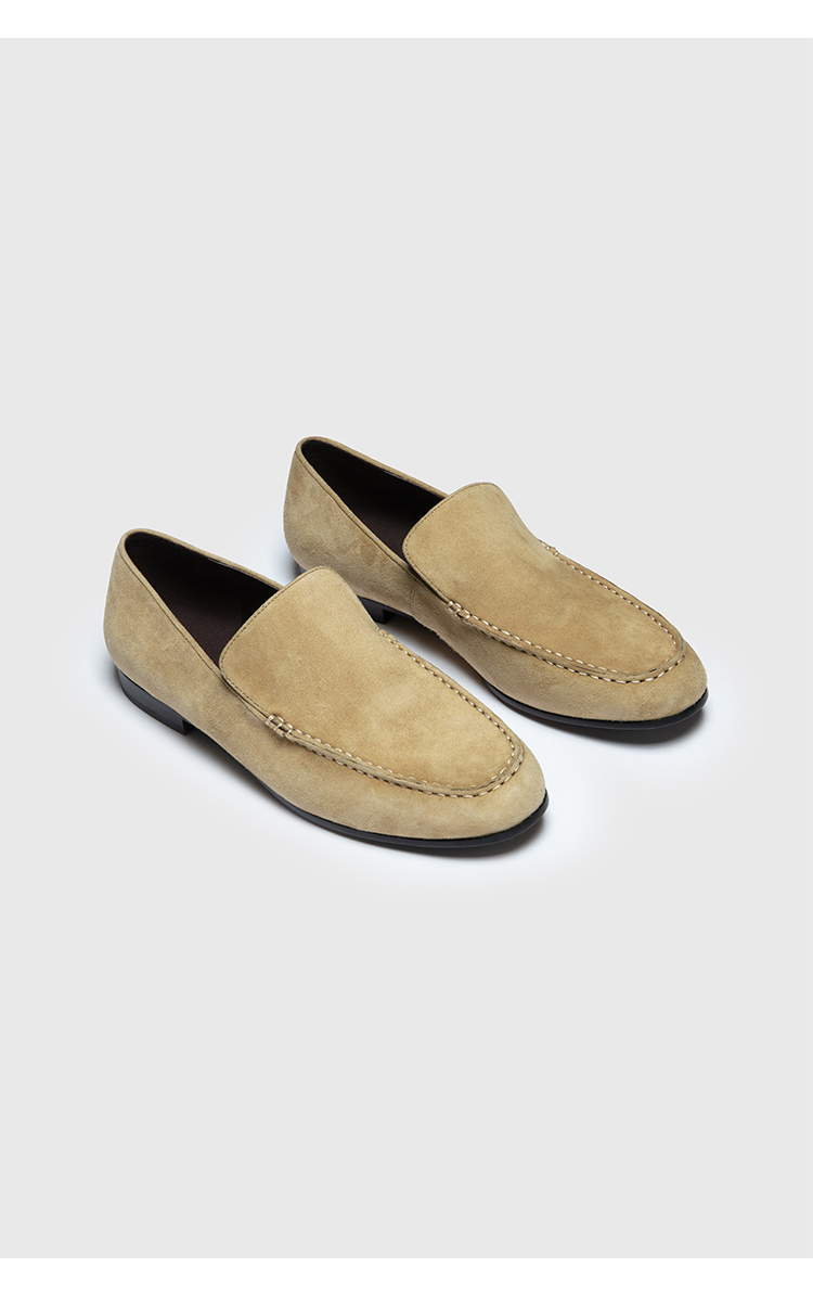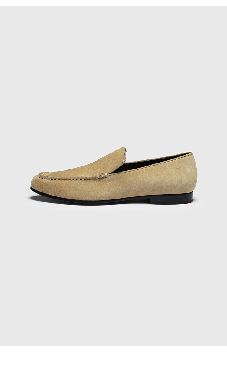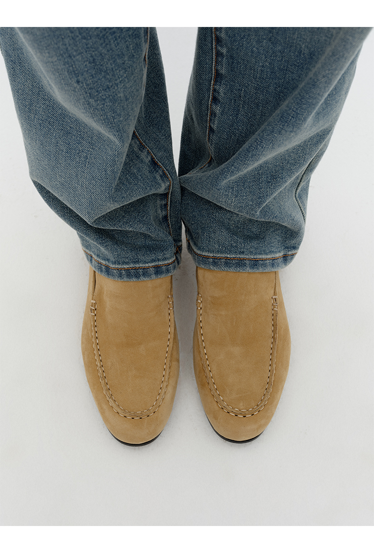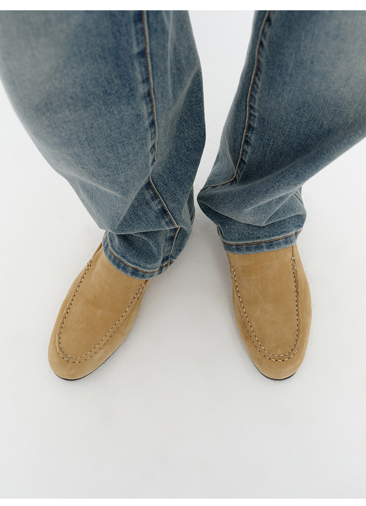 HIDEMI经典款极简进口麂皮乐福平底鞋 复古蓝/勃艮第红/华夫卡其米