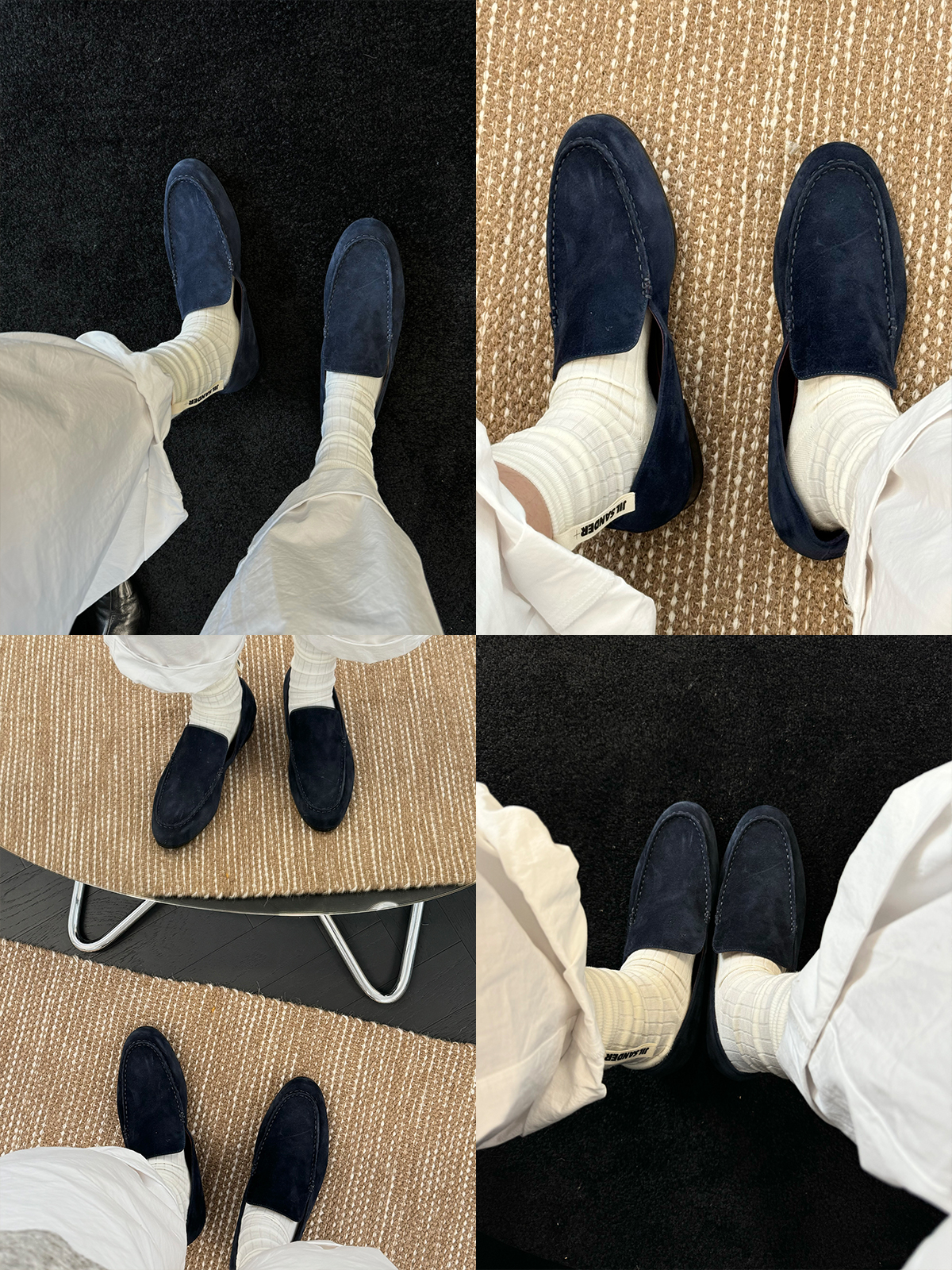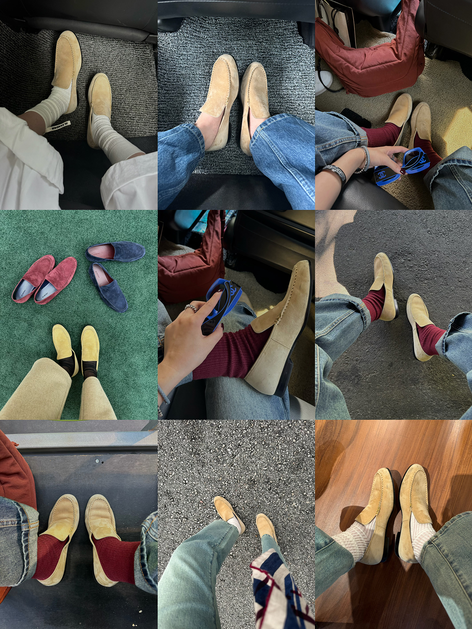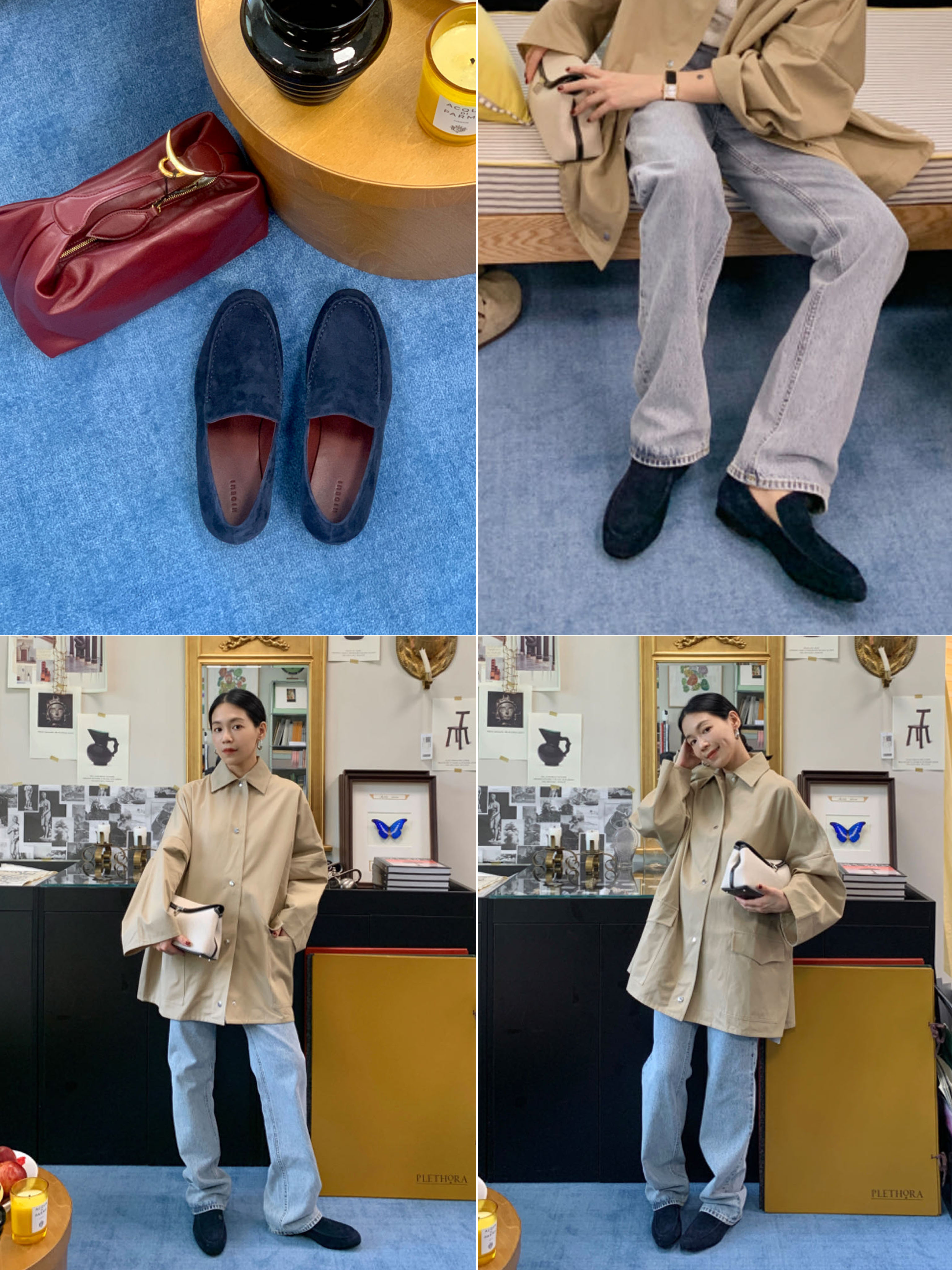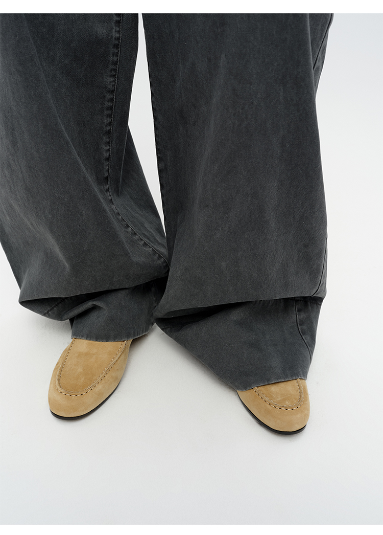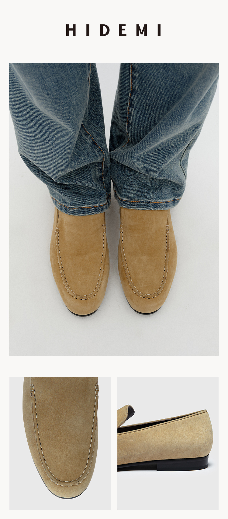 HIDEMI经典款极简进口麂皮乐福平底鞋 复古蓝/勃艮第红/华夫卡其米