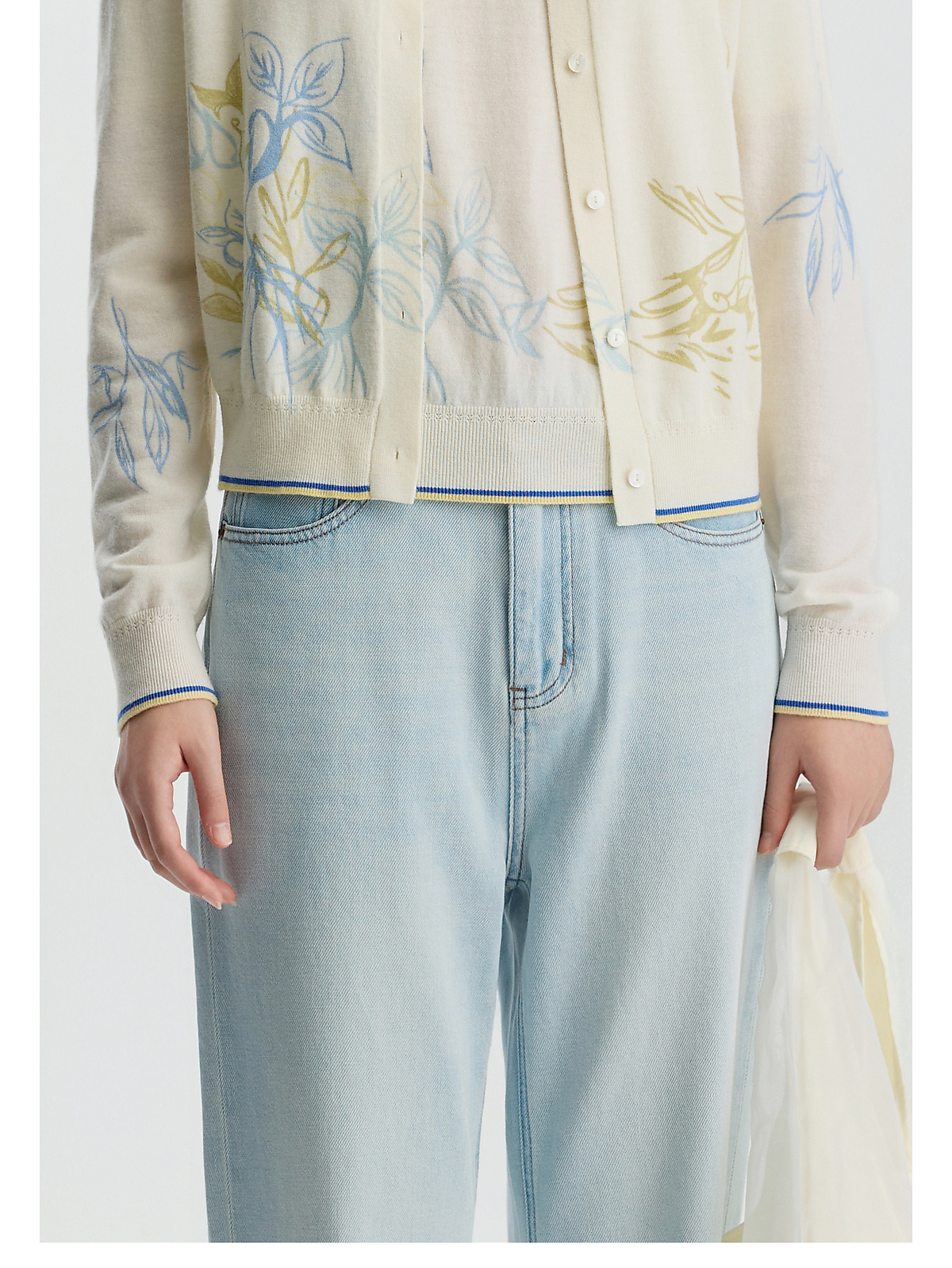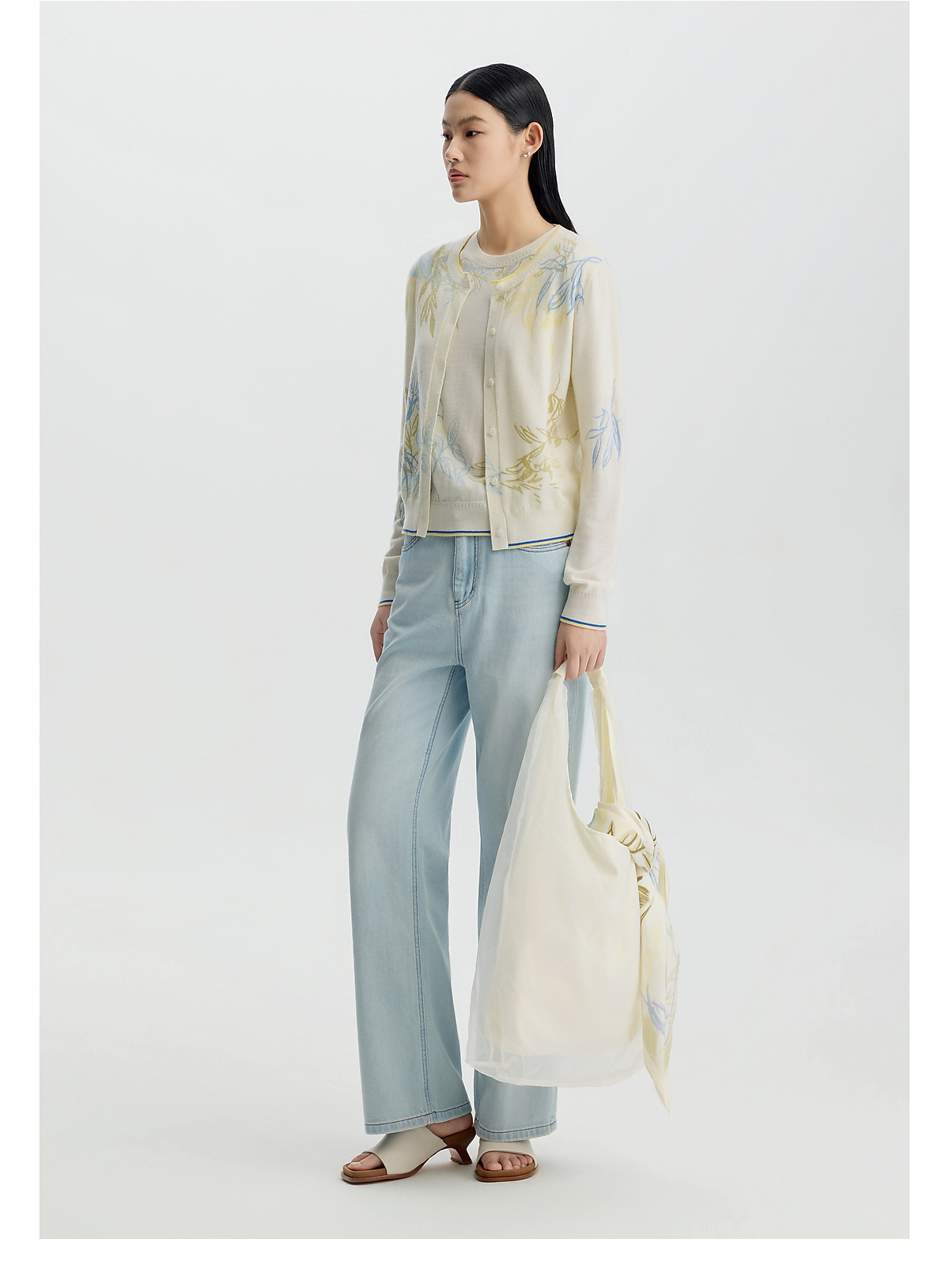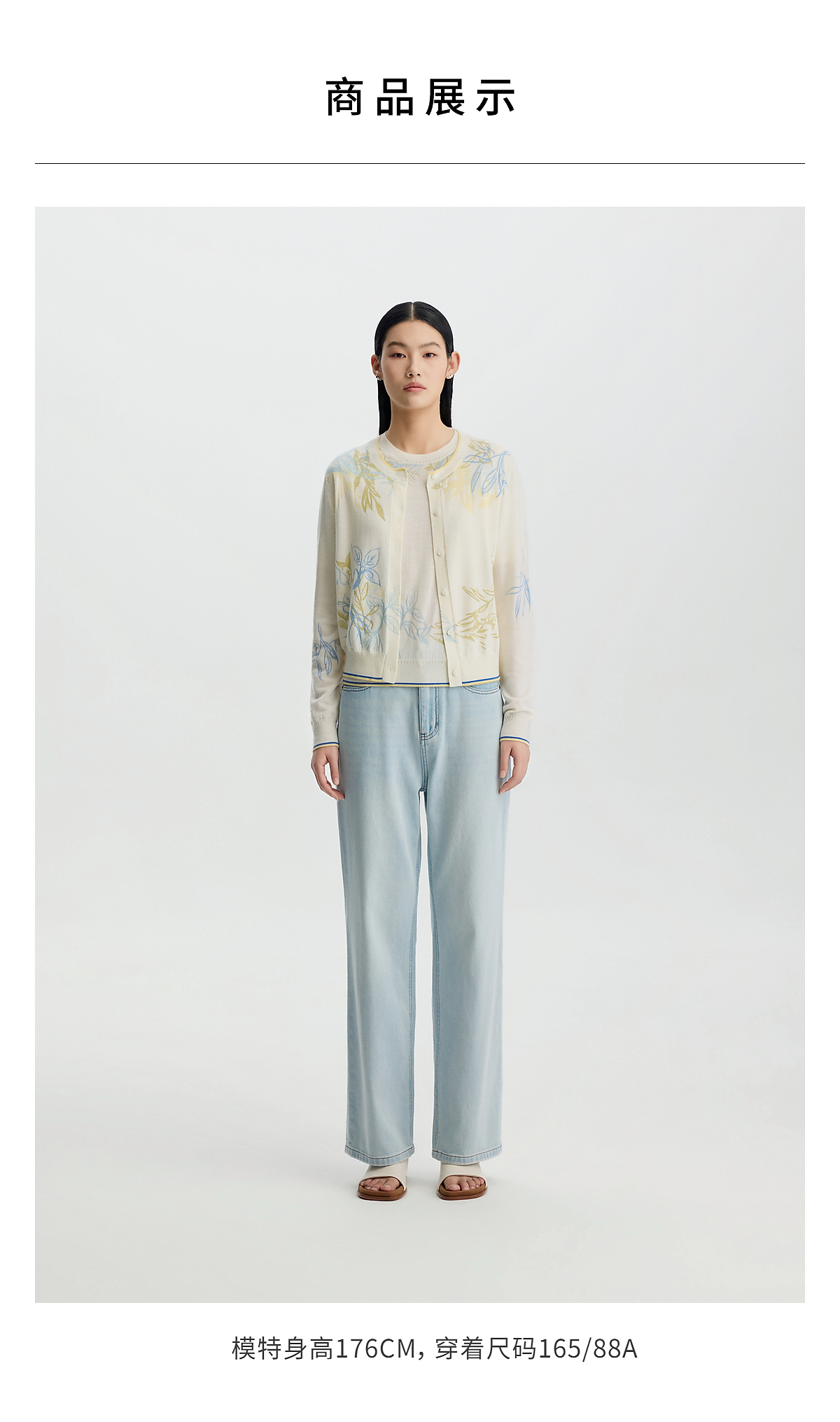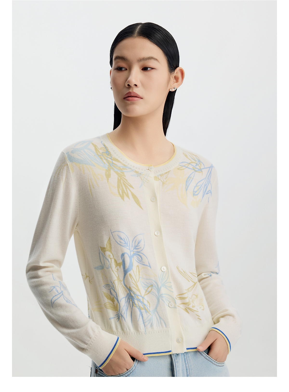 商场同款PURE TOUCH女装 26春夏新款羊毛针织开衫圆领印花开襟衫