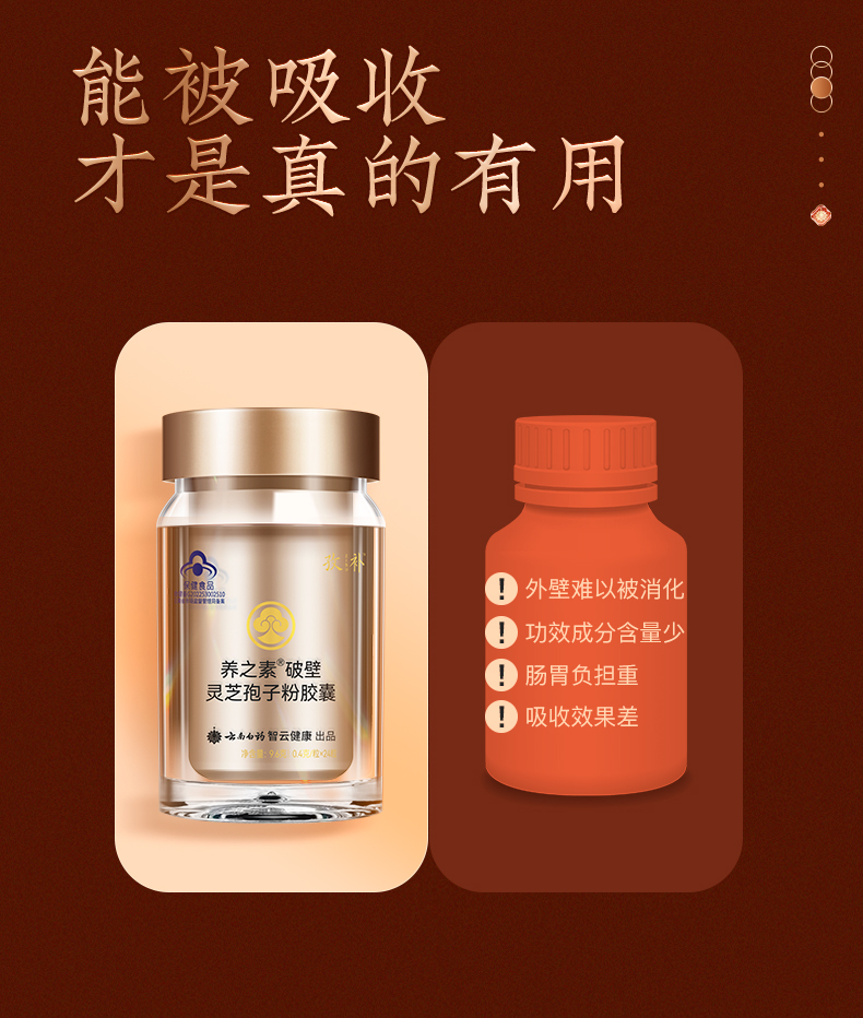 【官方正品】云南白药养之素破壁灵芝孢子粉胶囊0.4g*24粒*2瓶礼盒装三萜含量7.5%增强免疫力送礼送长辈