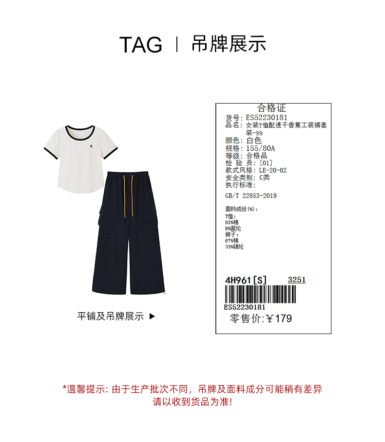 女装T恤配速干香蕉工装裤套装-99S5223018