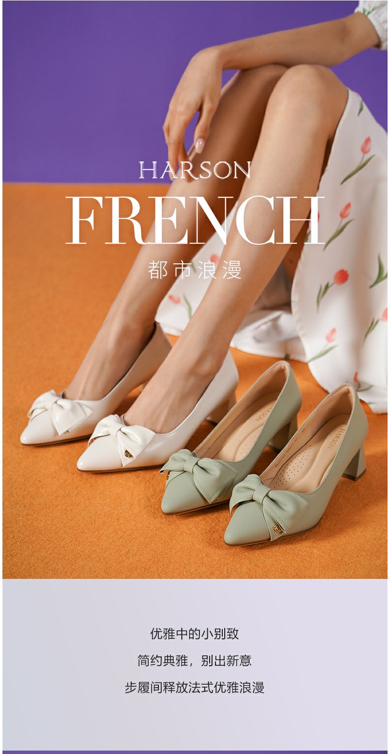 【Harson哈森】B3F I高跟小皮鞋通勤时尚蝴蝶结单鞋HS237161