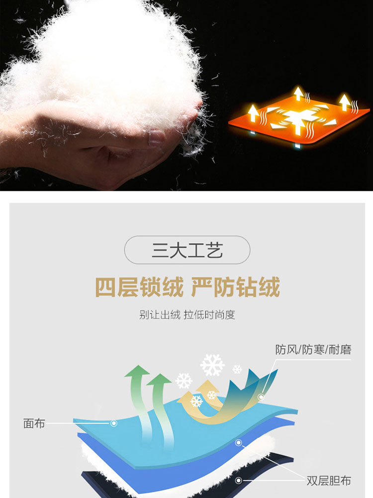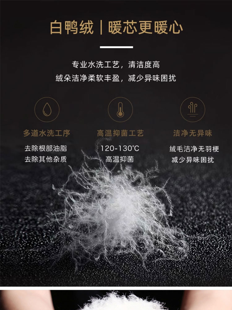 填充物:90%白鸭绒(充绒量:150g-200g克)