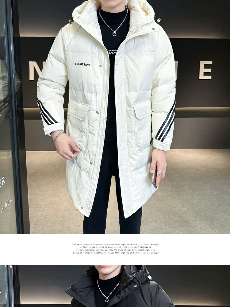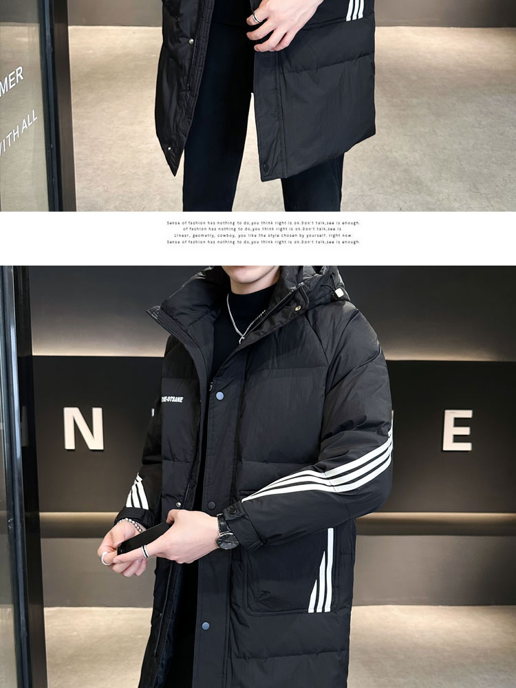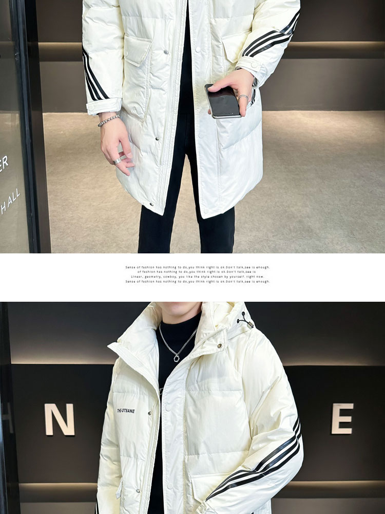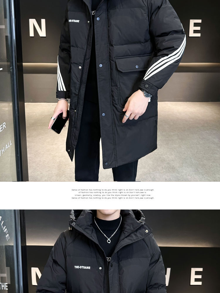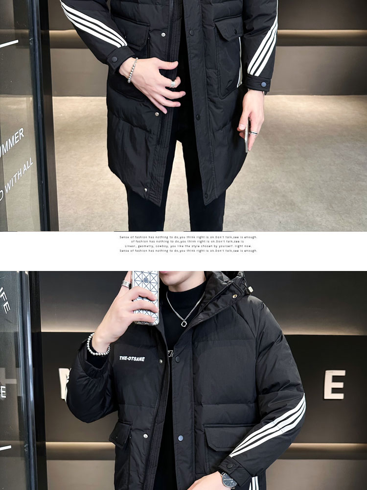 【YW】无忧购韩版休闲百搭三条杠90%白鸭绒男士中长款羽绒服620(截单后7天发货)