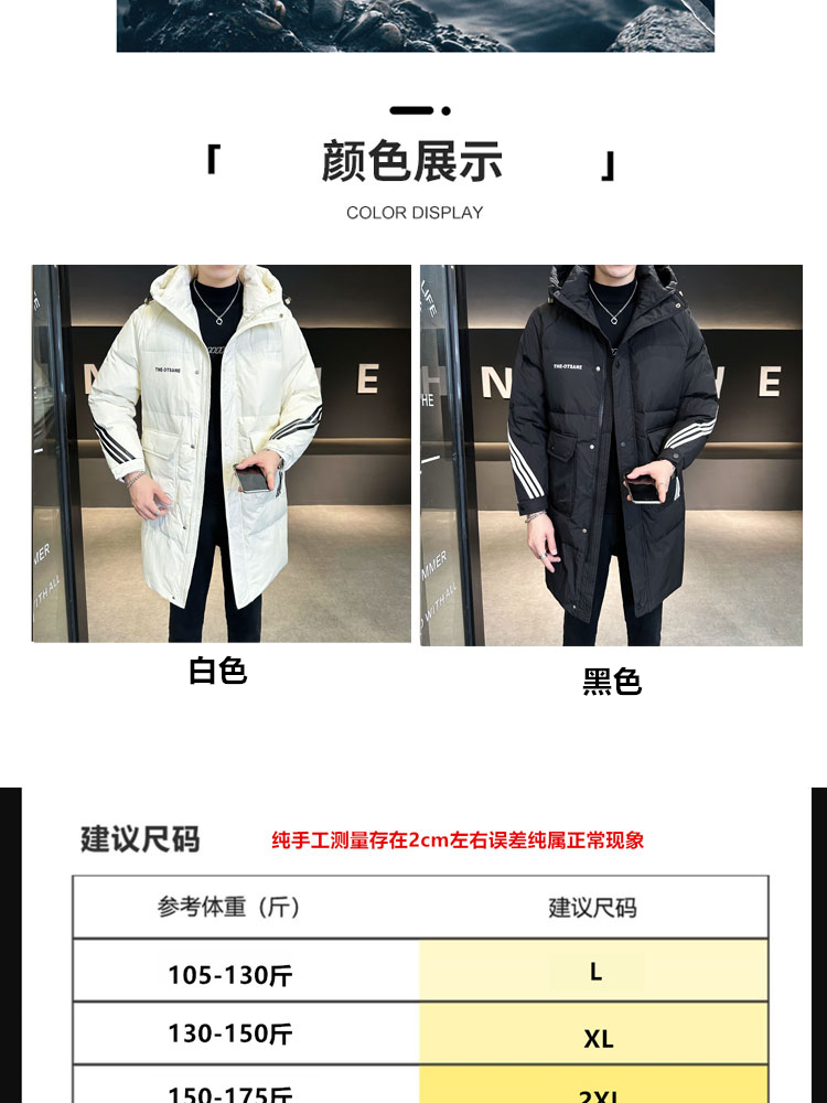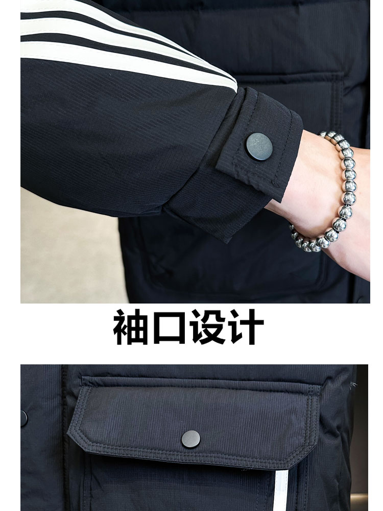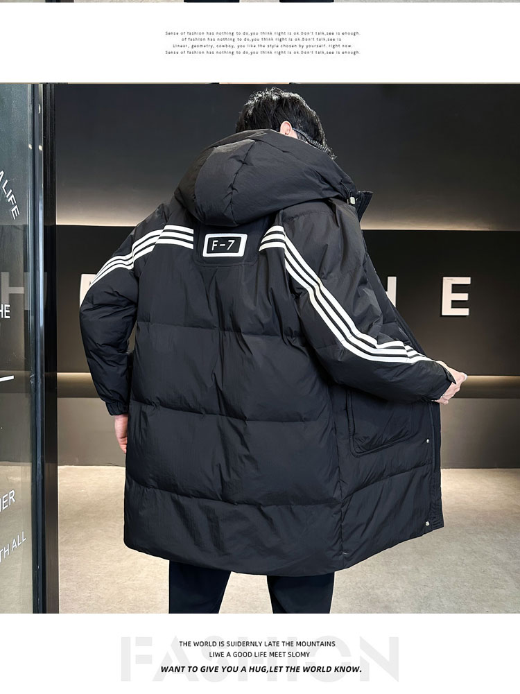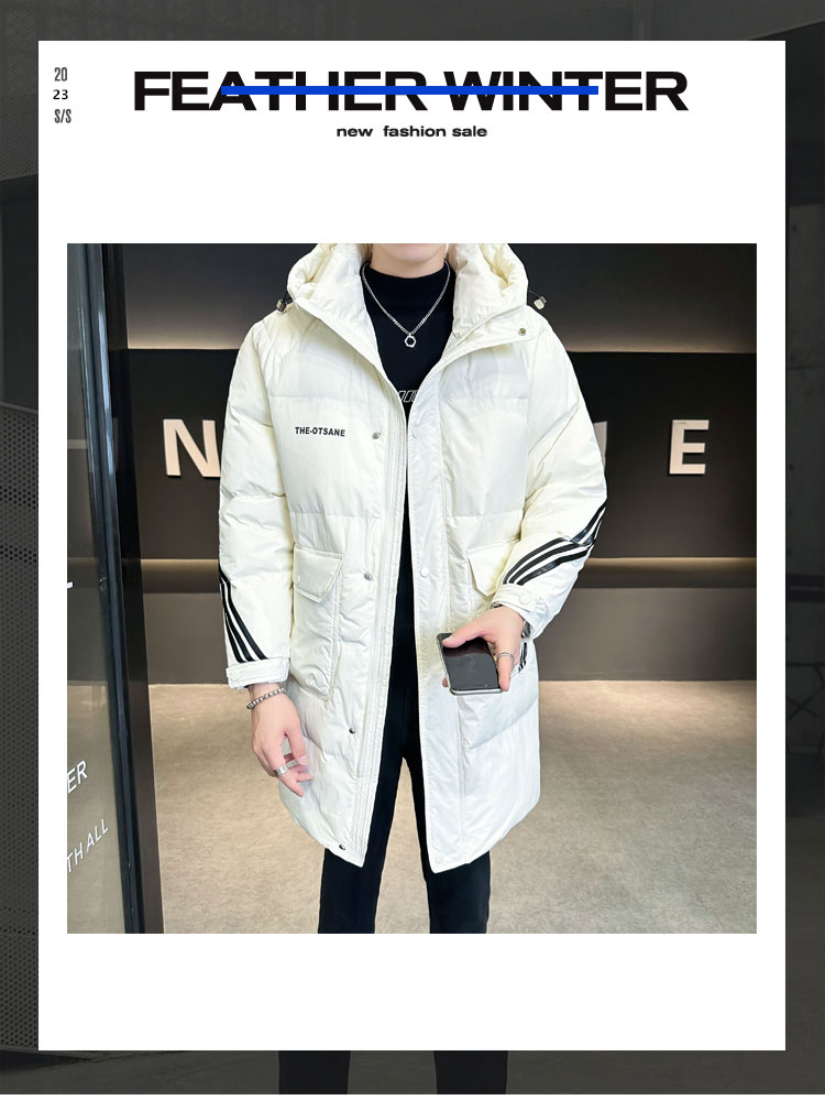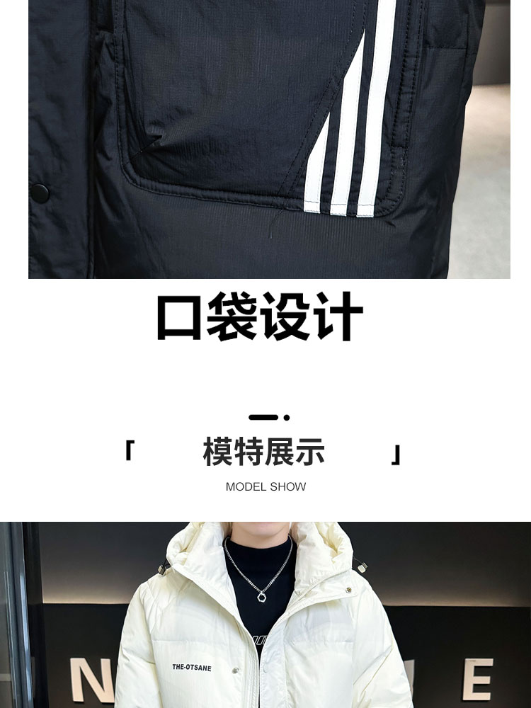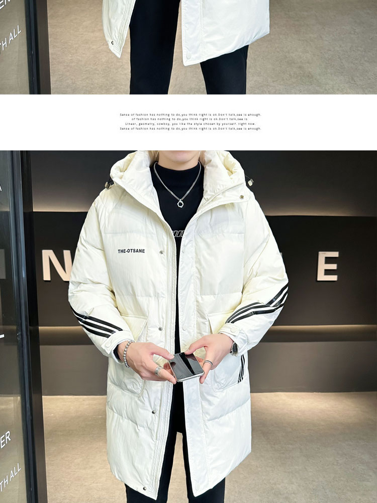 【YW】无忧购韩版休闲百搭三条杠90%白鸭绒男士中长款羽绒服620(截单后7天发货)