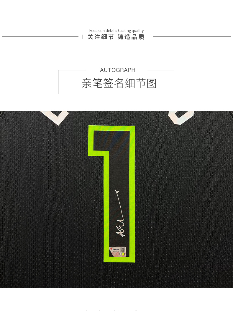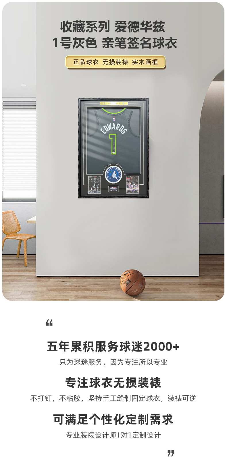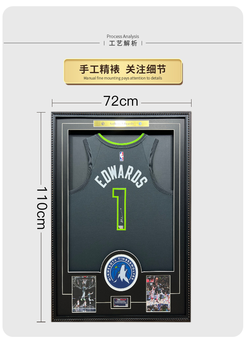 收藏系列 爱德华兹 1号灰色 亲笔签名球衣