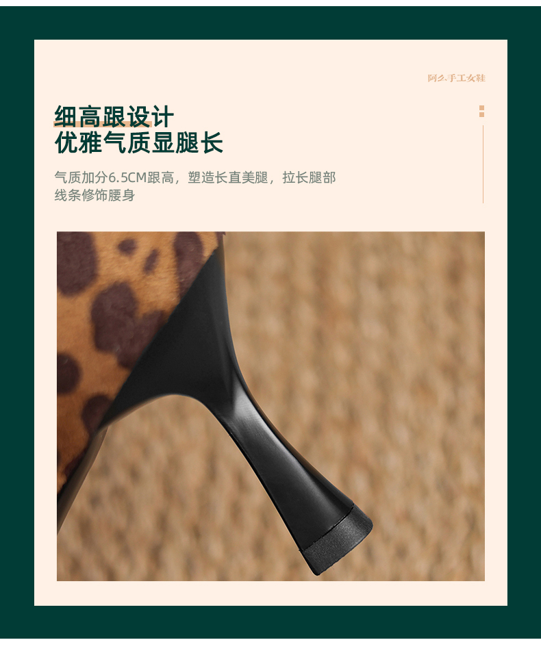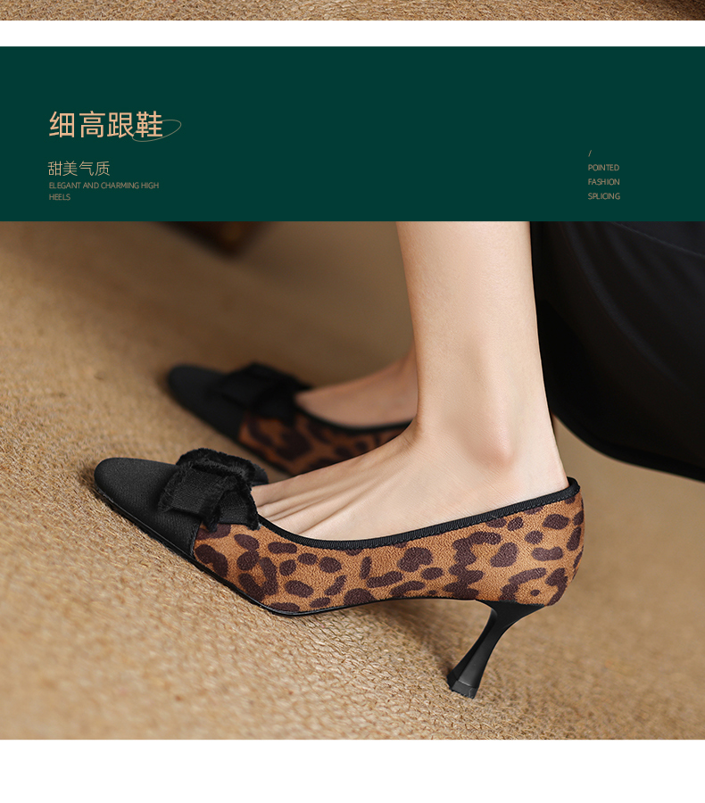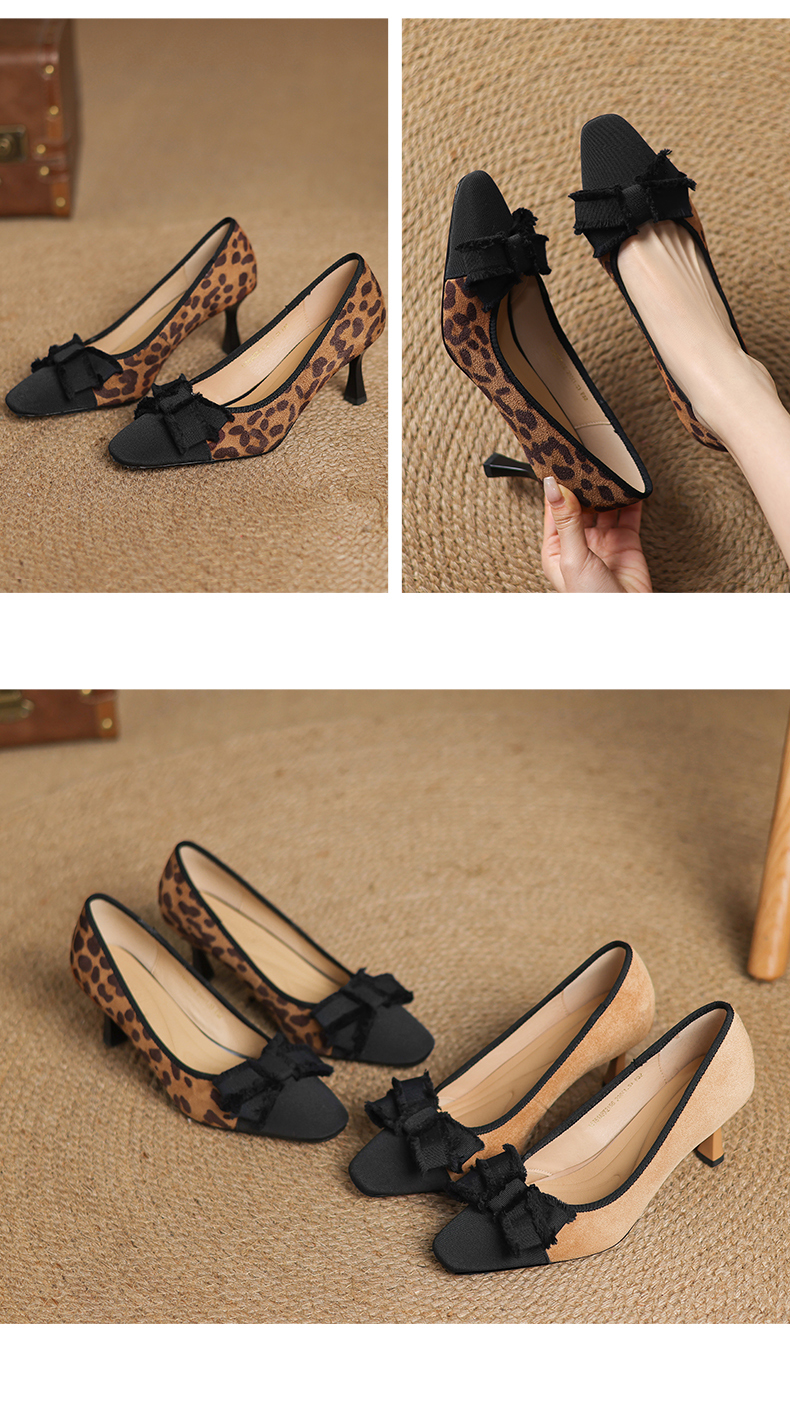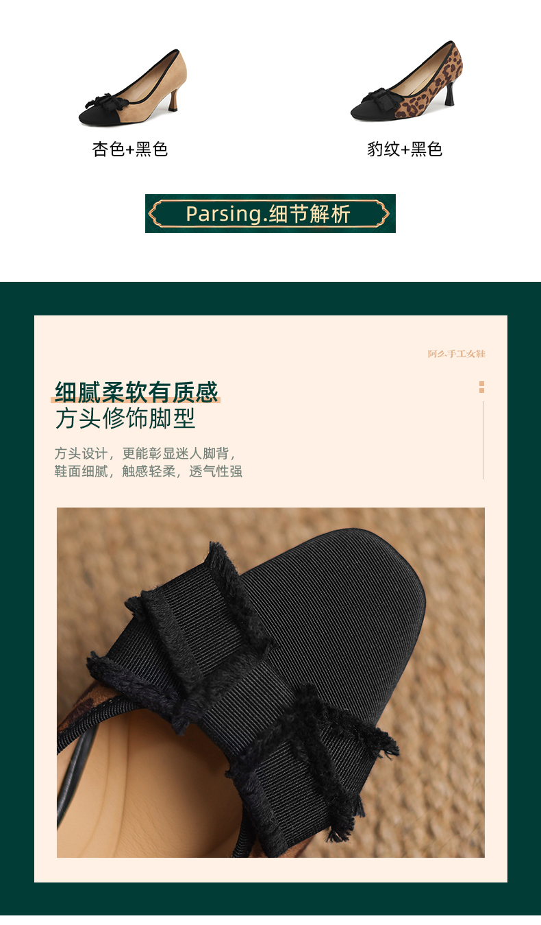 阿么手工女鞋蝴蝶结豹纹辣妹浅口高跟鞋2025新款时尚单鞋女6.5CM