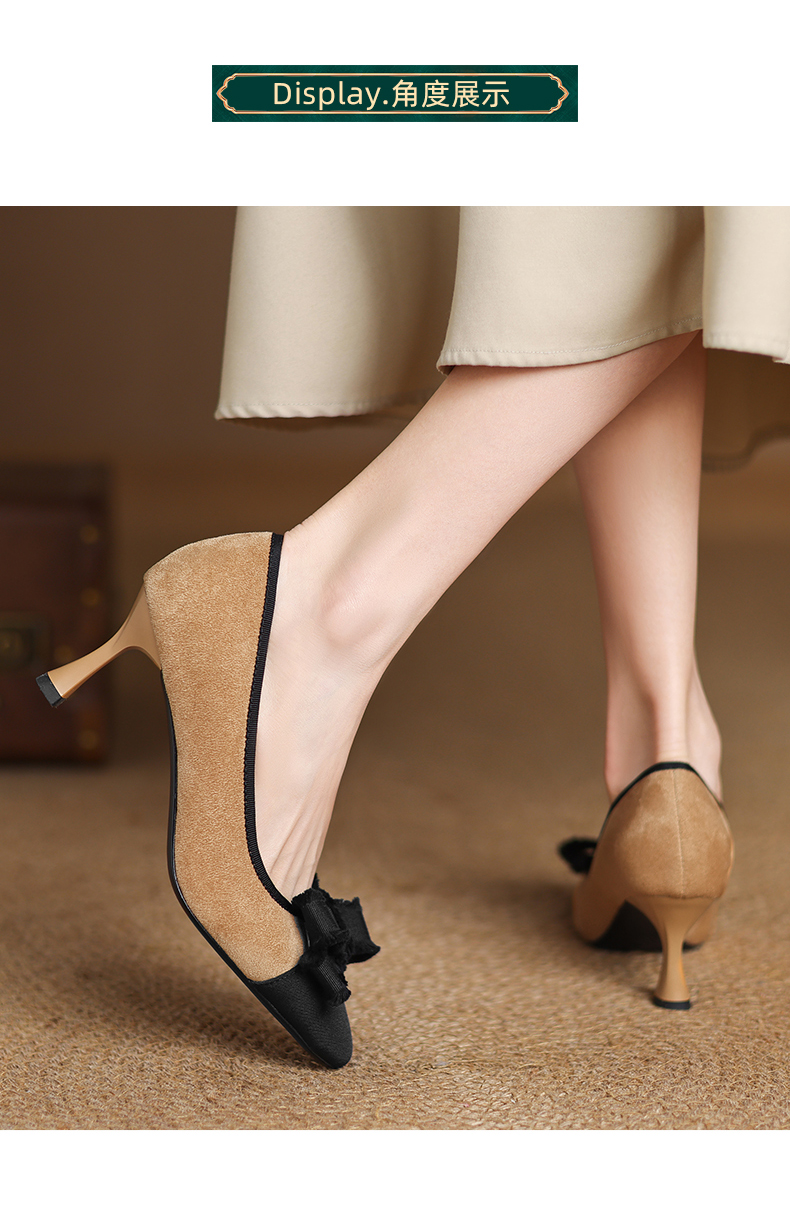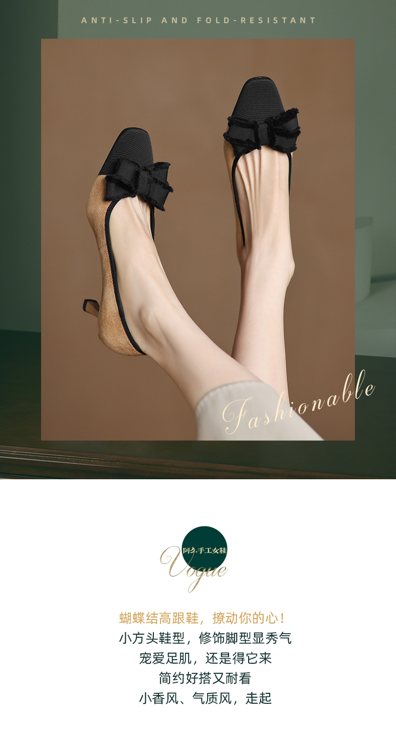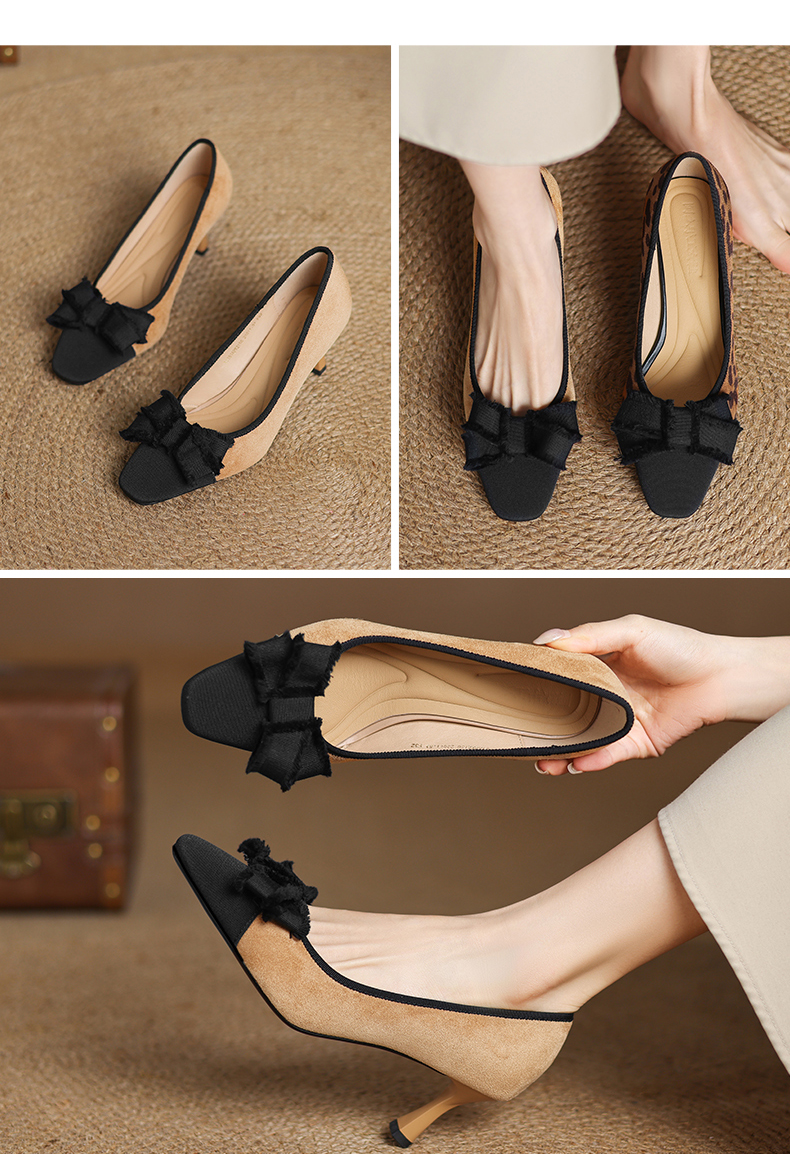 阿么手工女鞋蝴蝶结豹纹辣妹浅口高跟鞋2025新款时尚单鞋女6.5CM