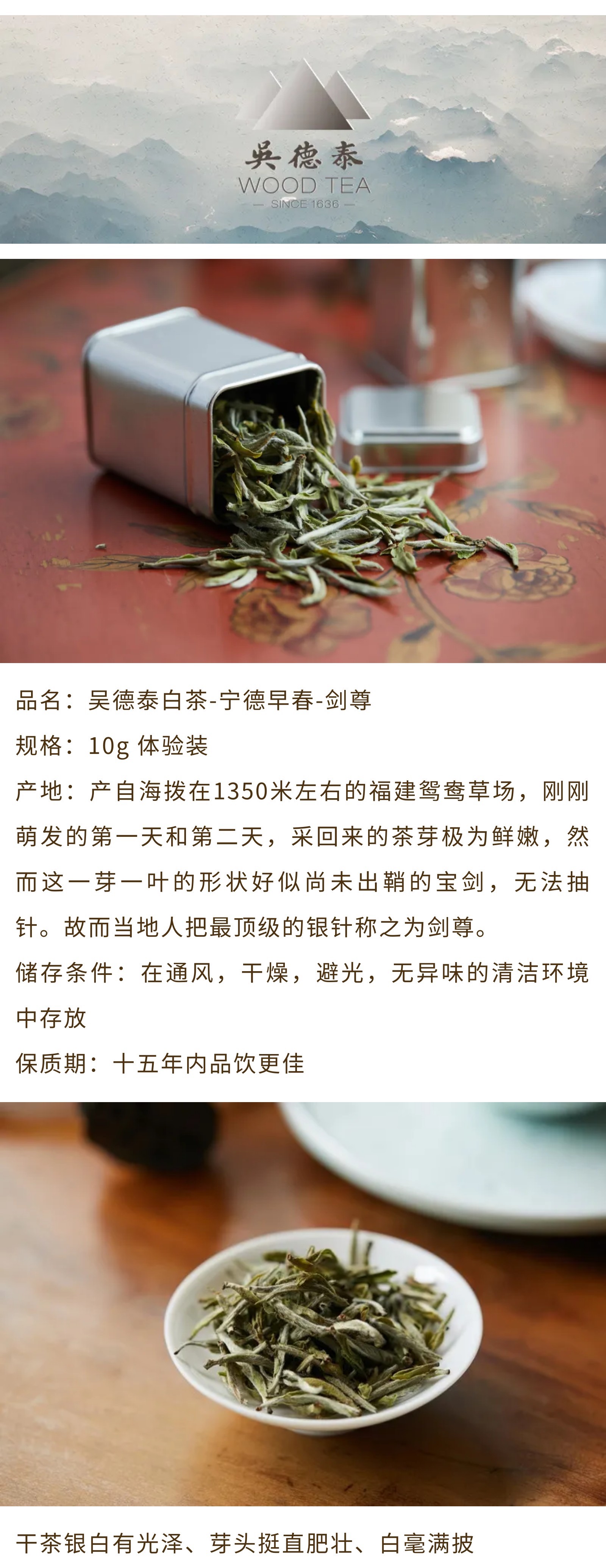 体验装 吴德泰白茶·宁德早春·剑尊(2019年)