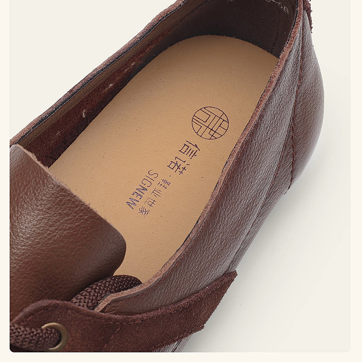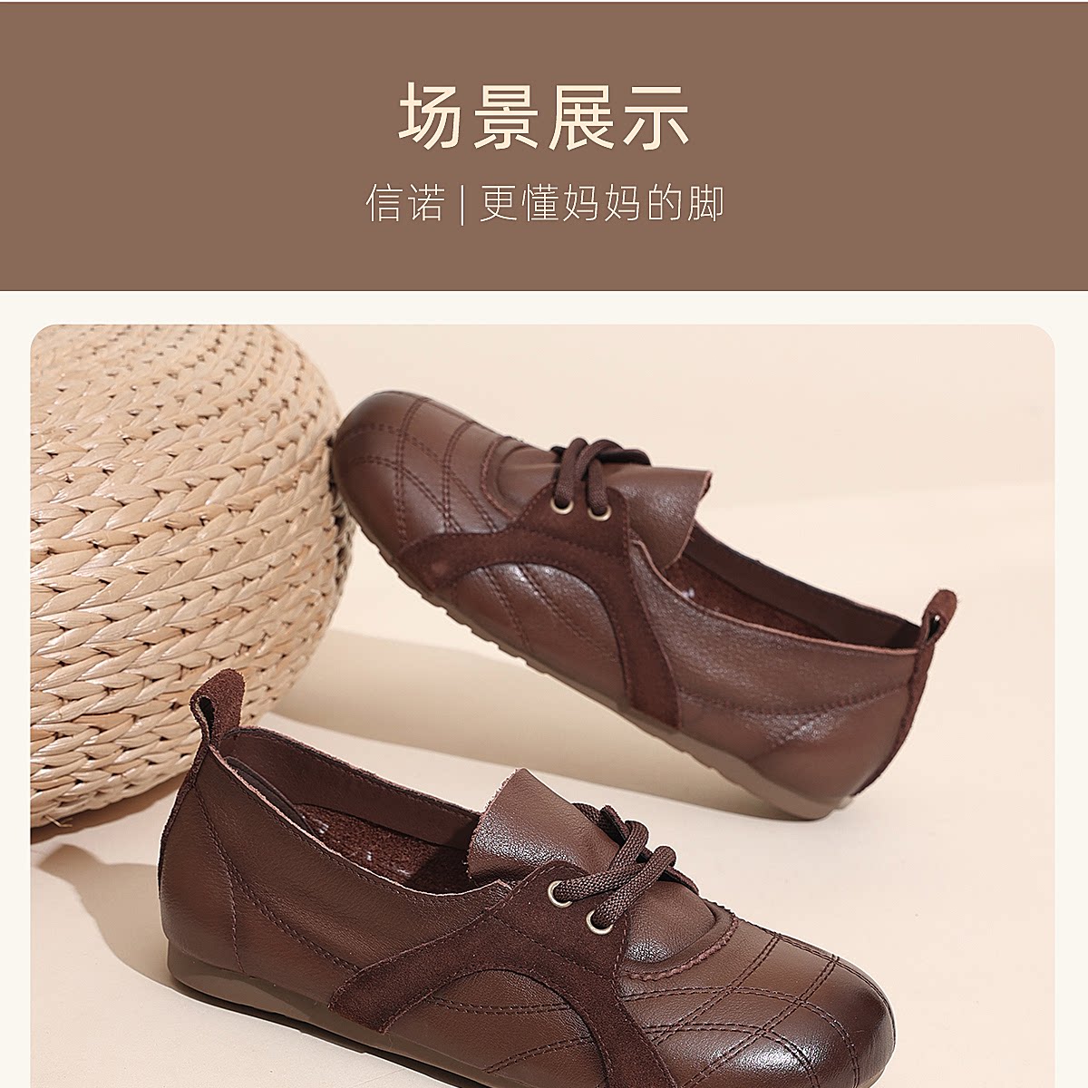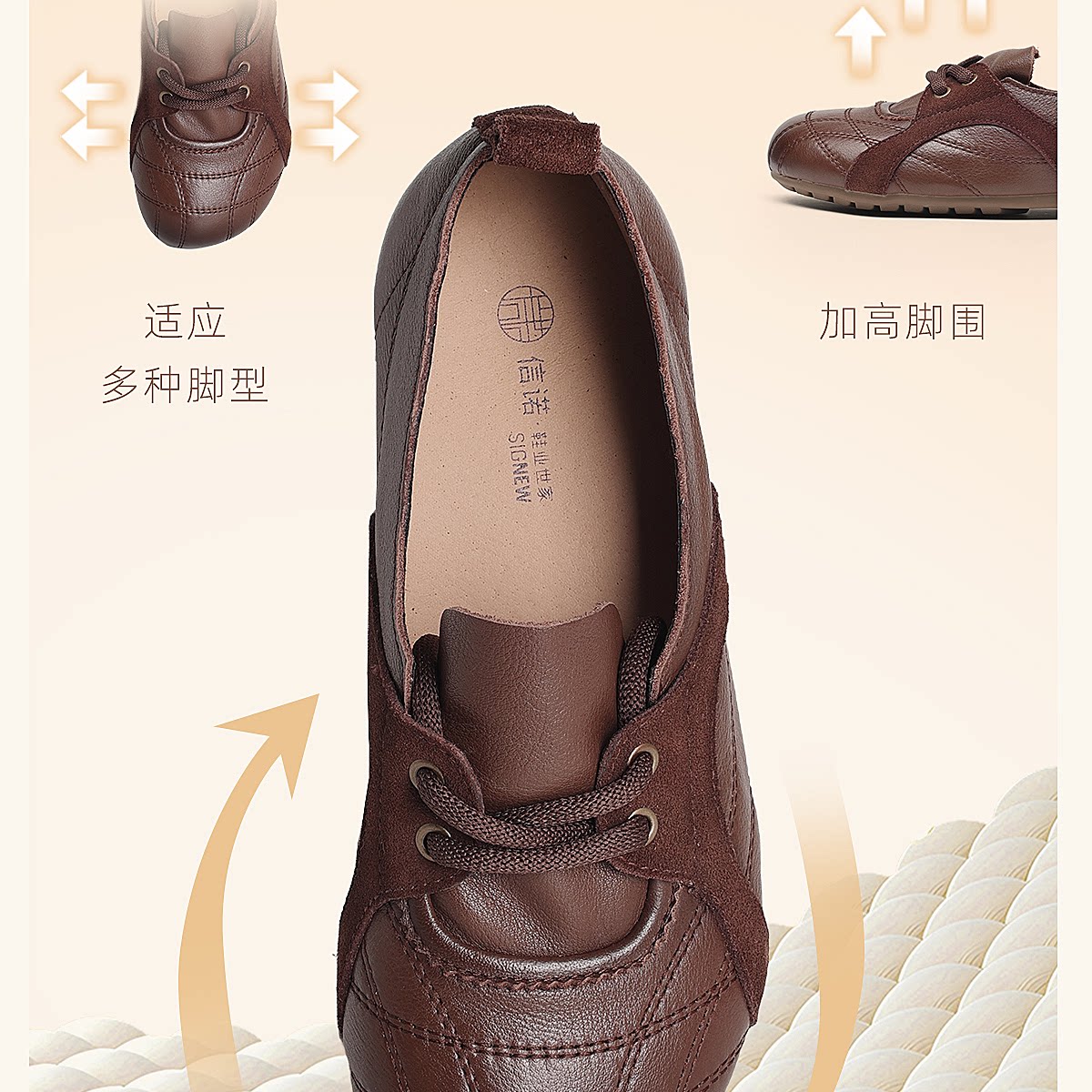 信诺牛皮德训鞋女平底系带休闲鞋圆头软底真皮妈妈鞋X6C020-68