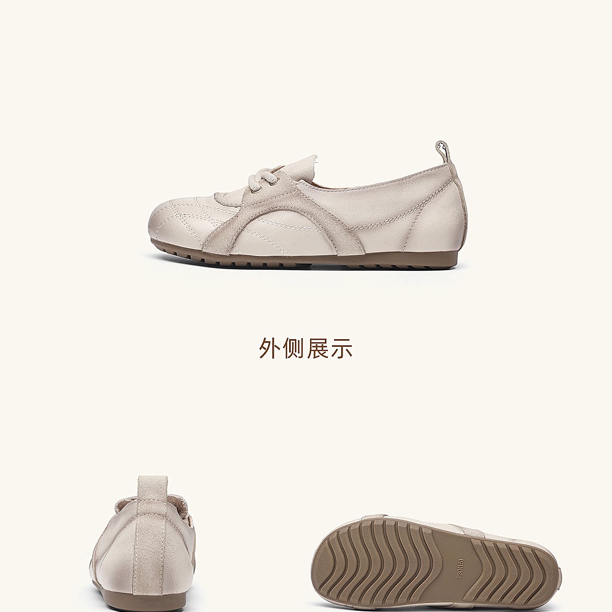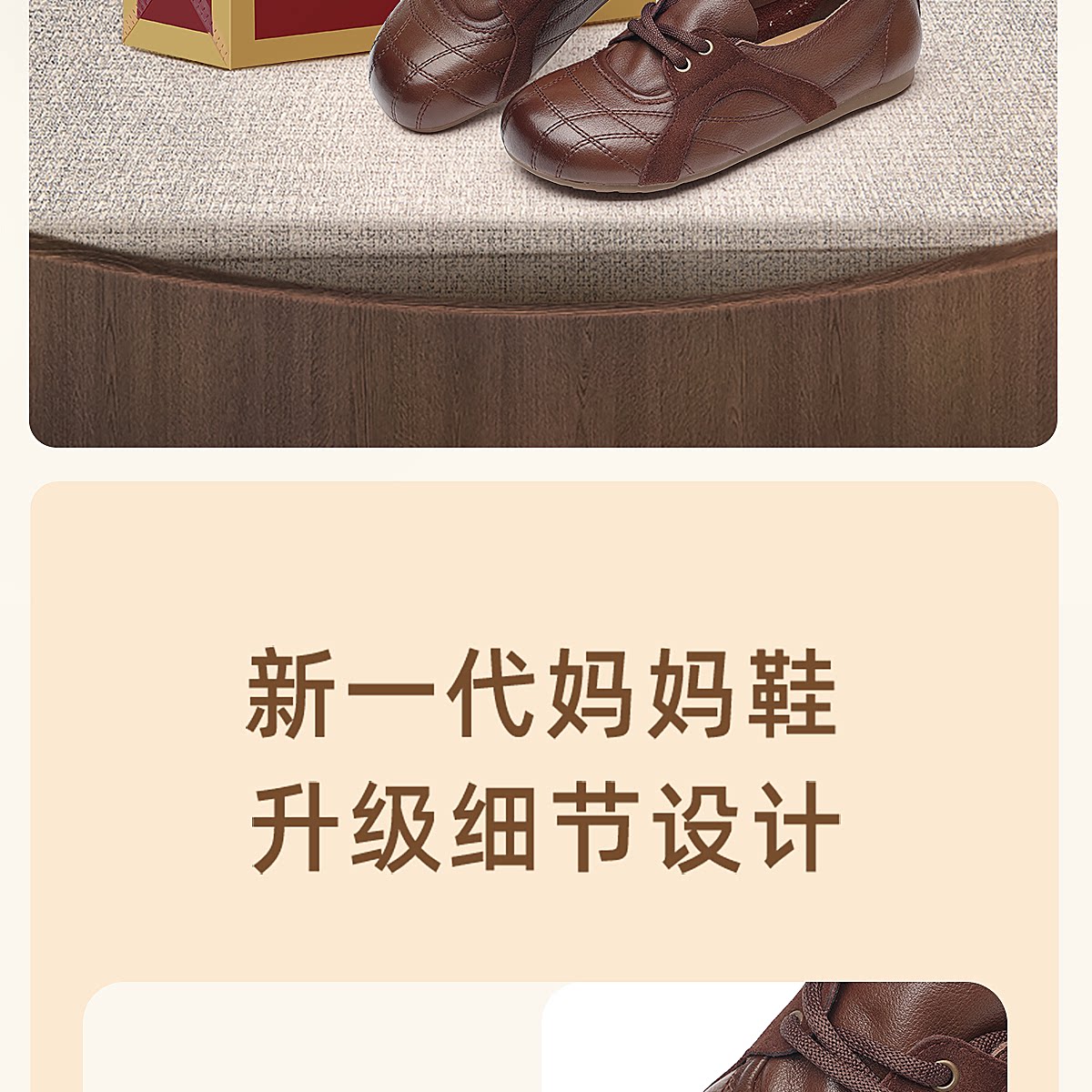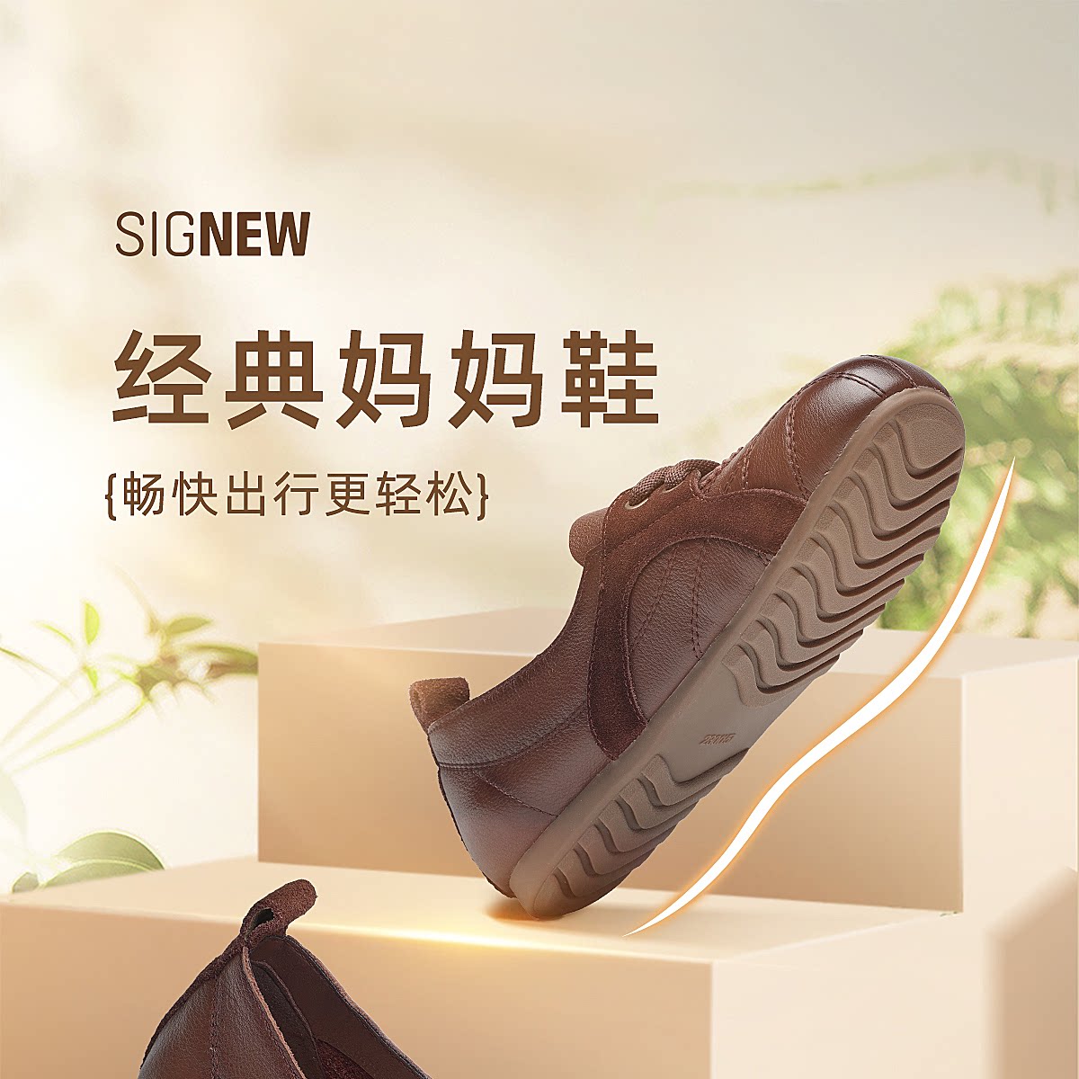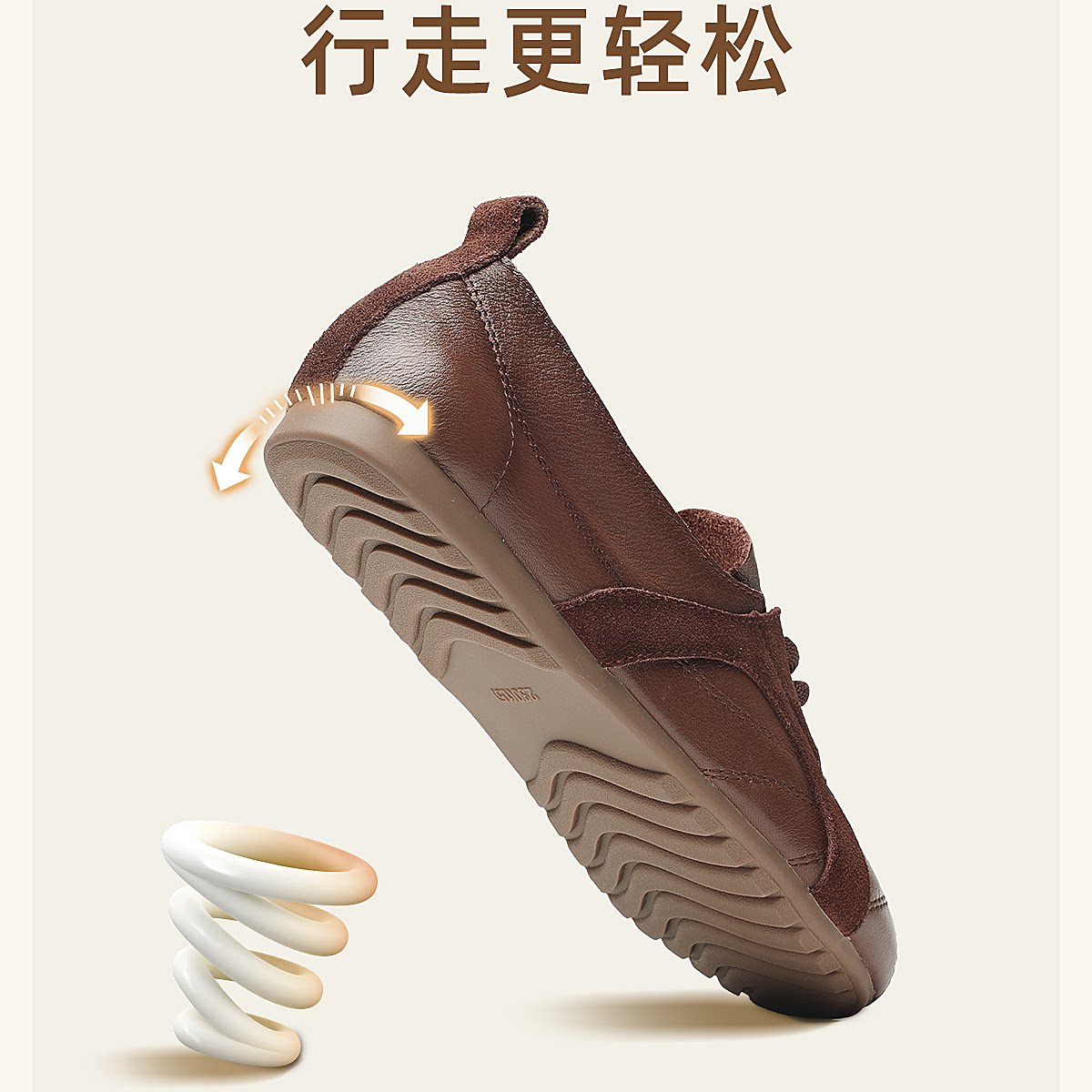 信诺牛皮德训鞋女平底系带休闲鞋圆头软底真皮妈妈鞋X6C020-68