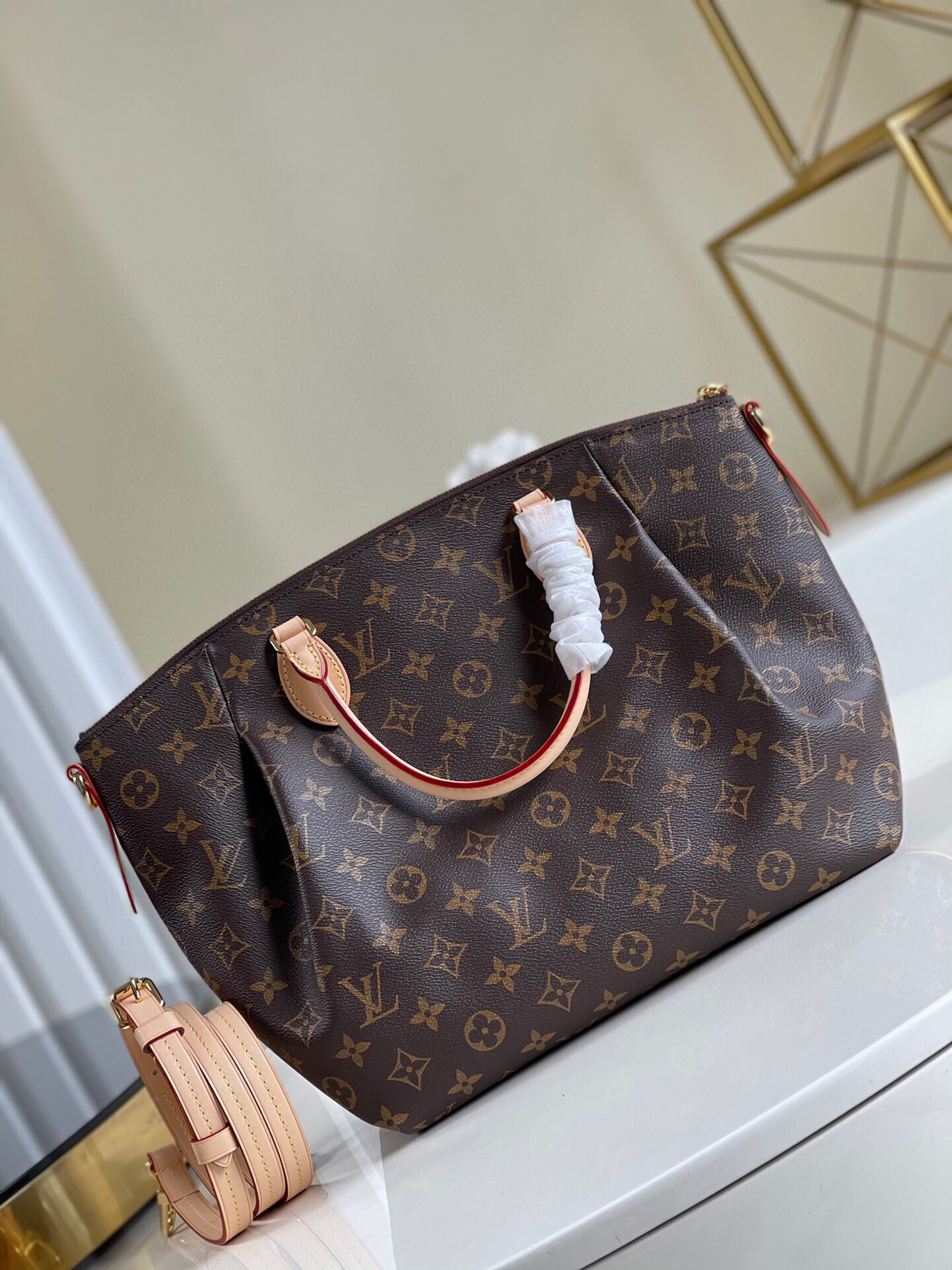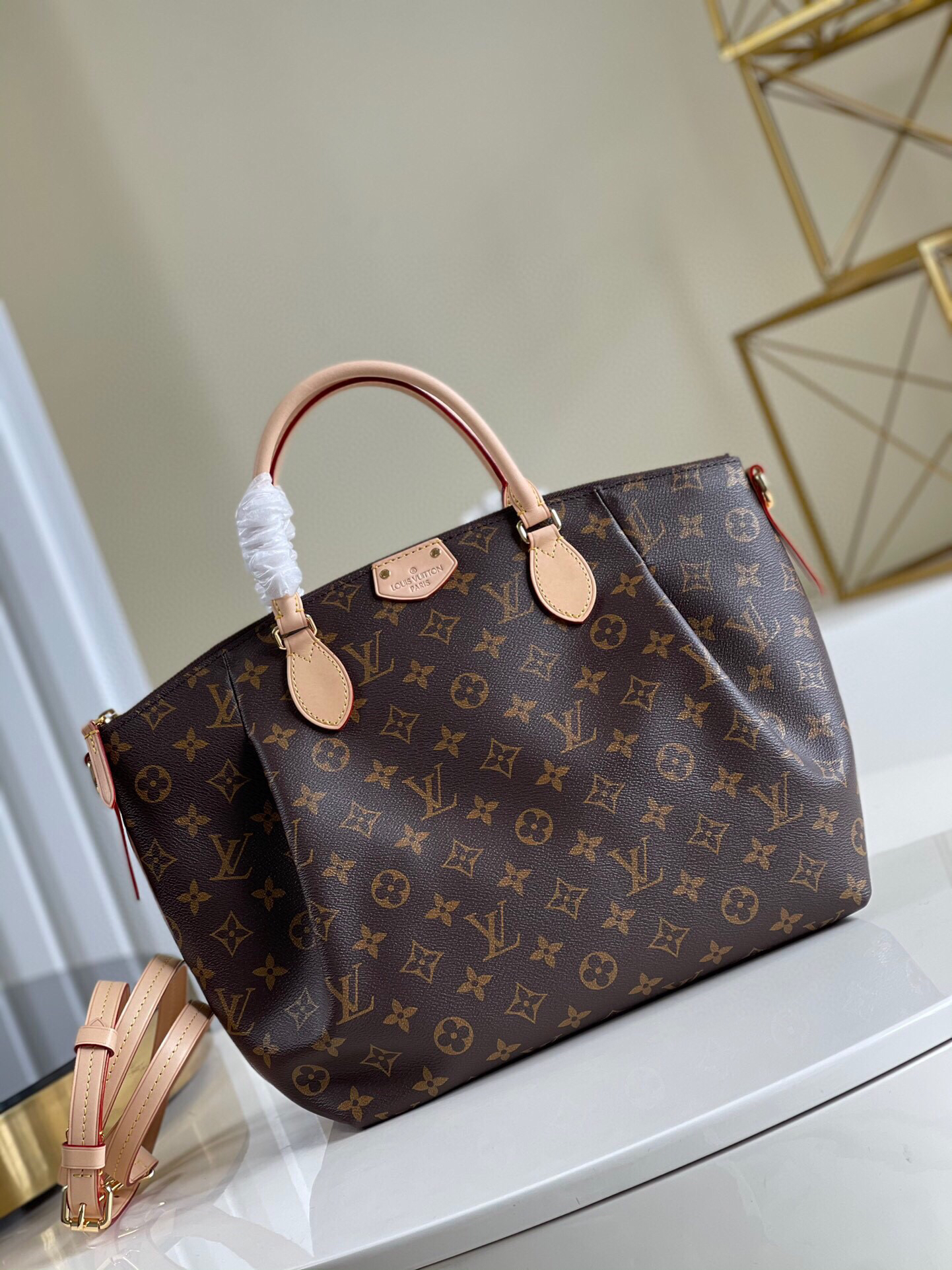 春季特价💰850 原单LV M48814 TURENNE 中号手袋实用又不失时尚! 以 Monogram 涂层帆布制成的 Turenne 中号号手提包采用了圆形手柄和前部褶皱设计,是一款颇具时尚风格的女士包款。 可调节式包带令使用者可以斜挎该包进行各种混搭。