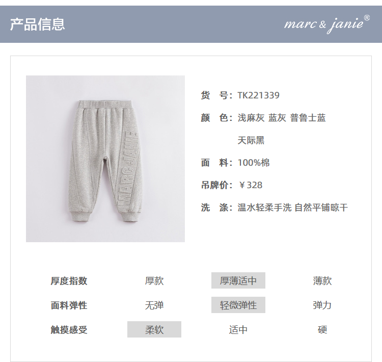 马克珍妮秋装新款 男童拼缝立体字母运动裤 儿童裤子221339