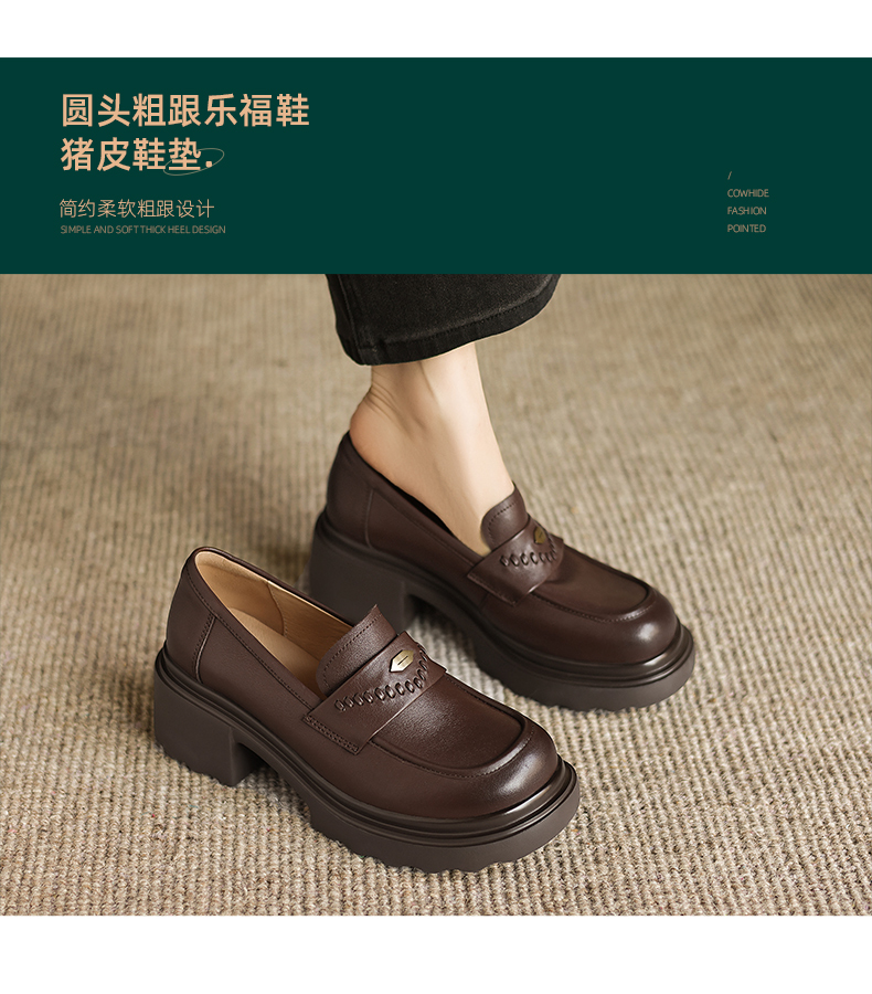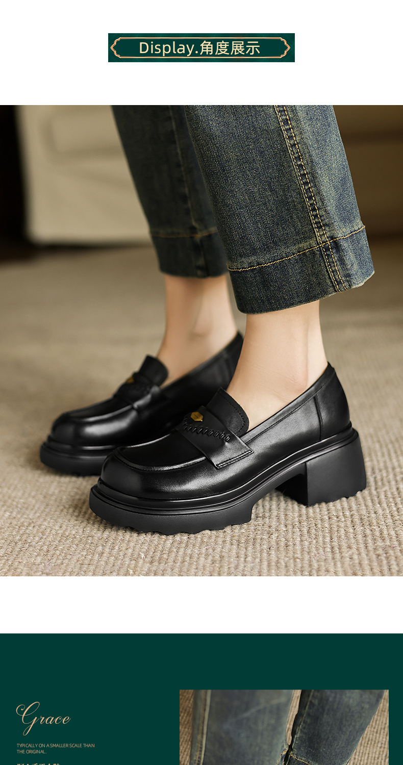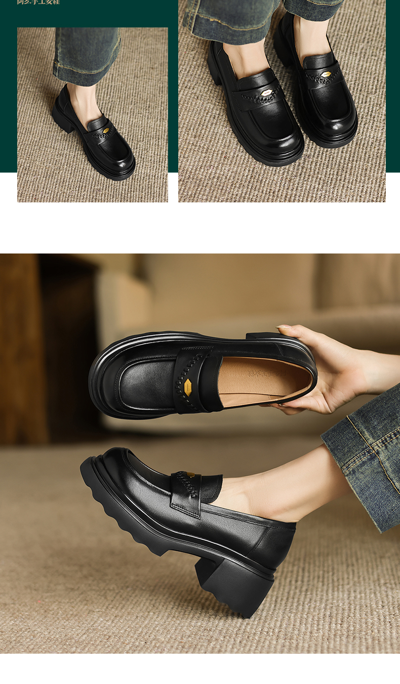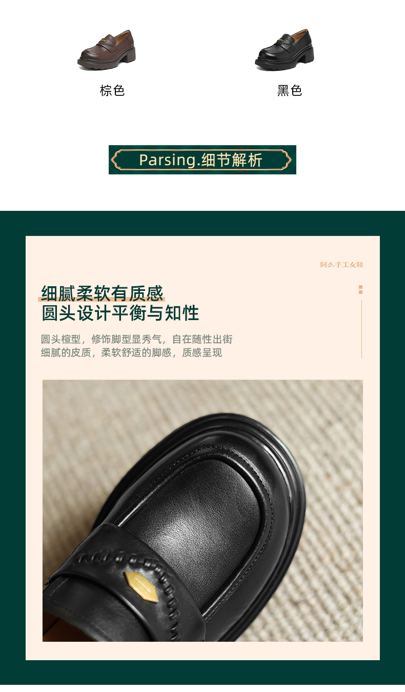 阿么手工女鞋厚底一脚蹬真皮软底乐福鞋2025新款百搭小皮鞋6.5CM