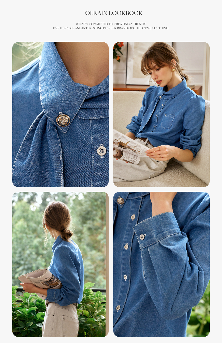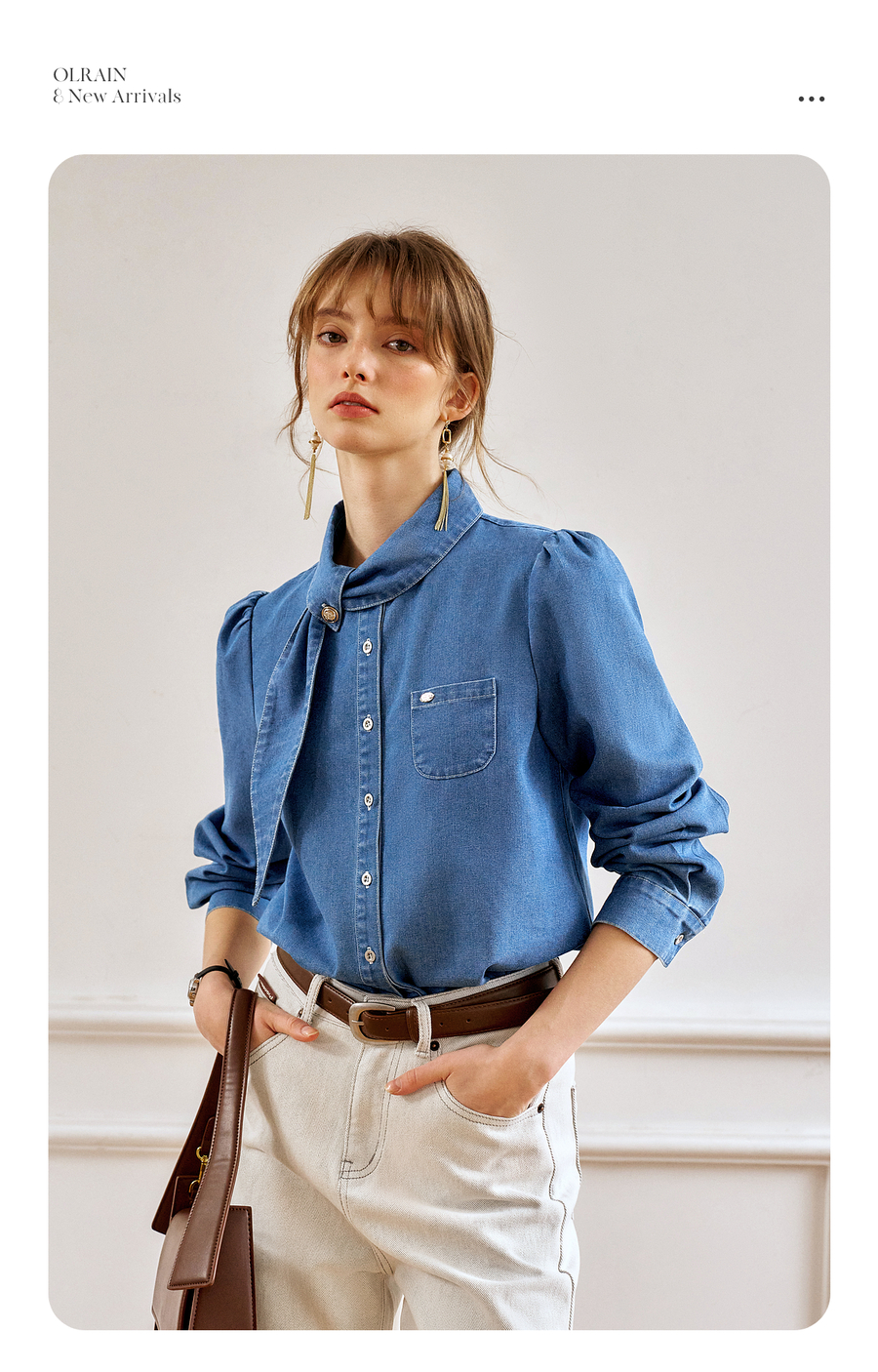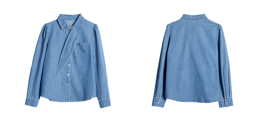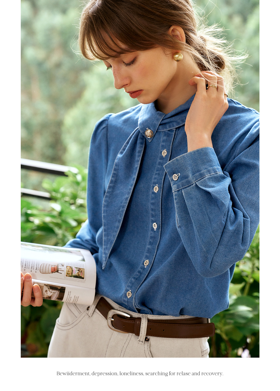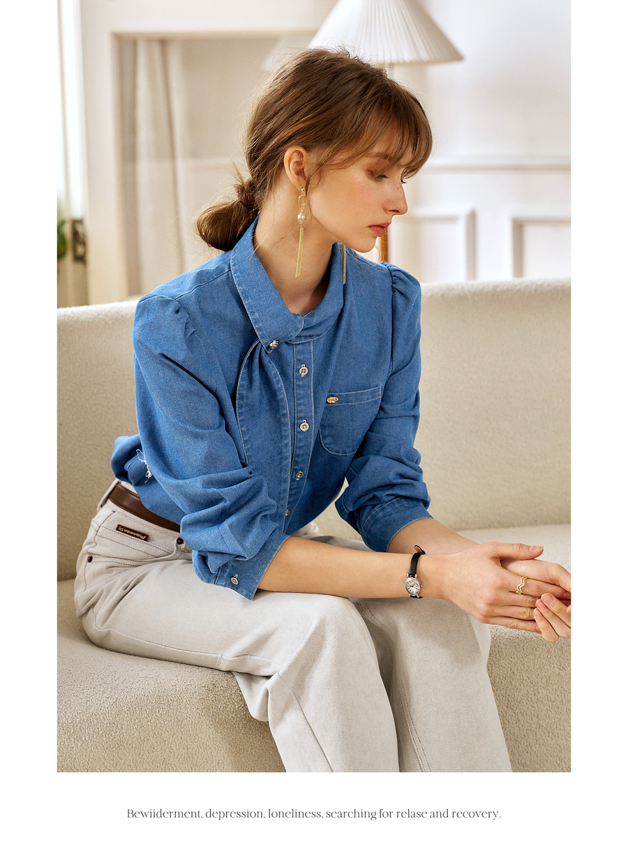 OLrain欧芮儿法式牛仔衬衫女春季2025年新款设计感减龄长袖衬衣