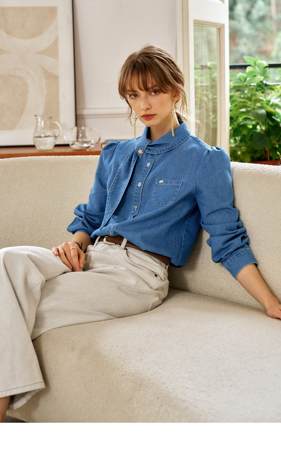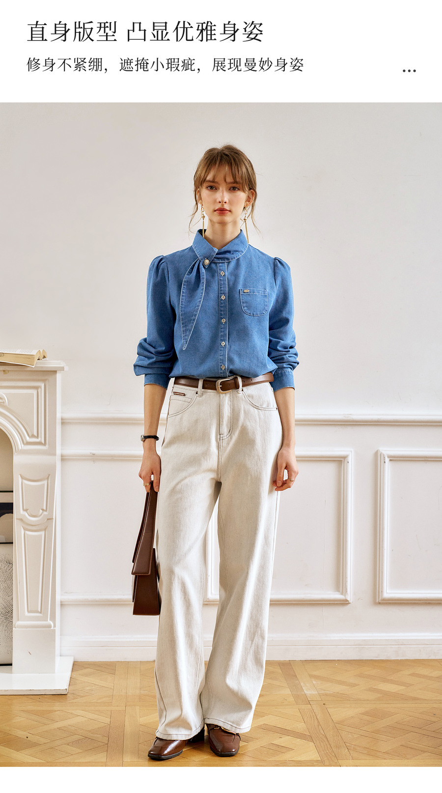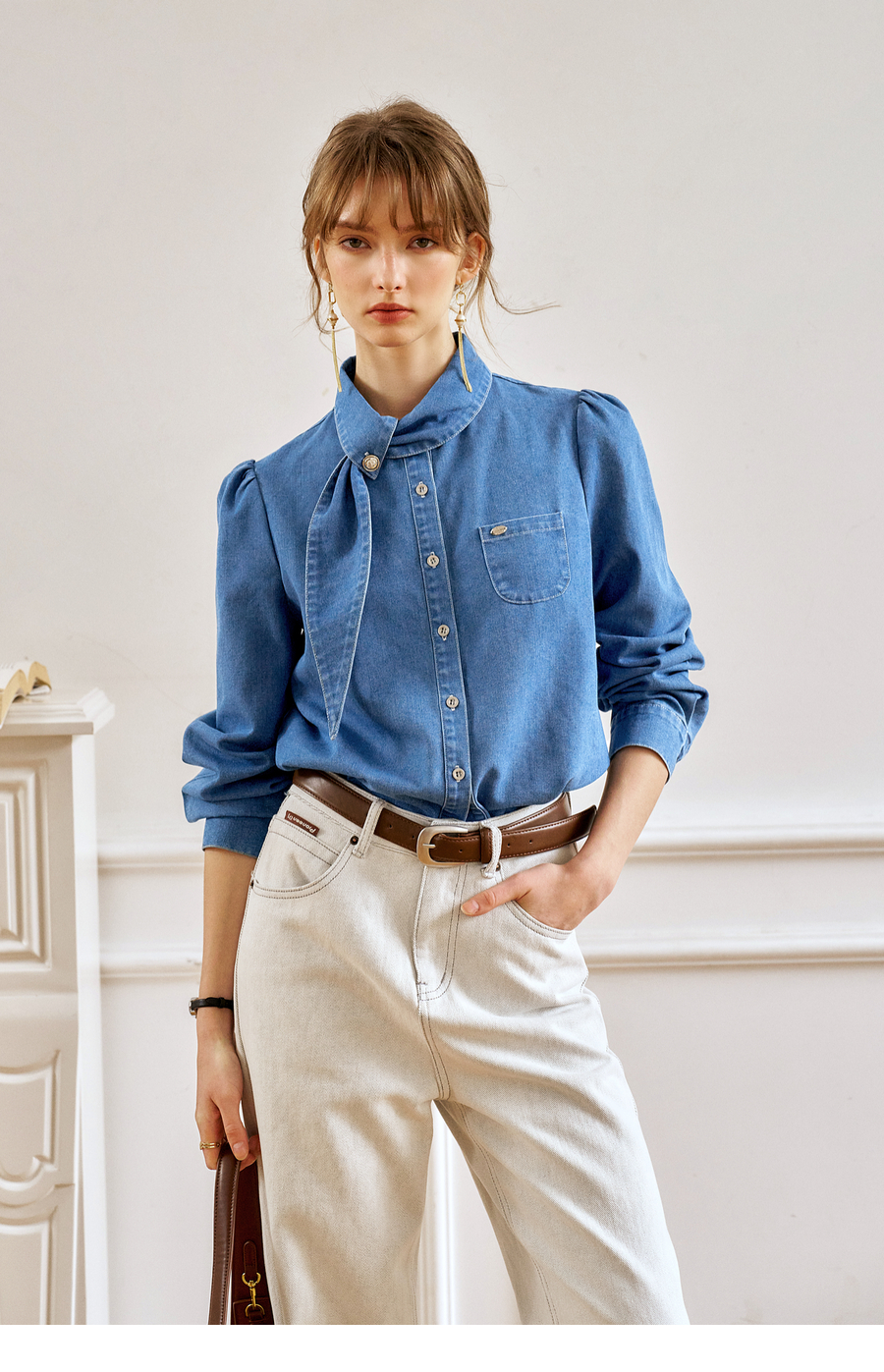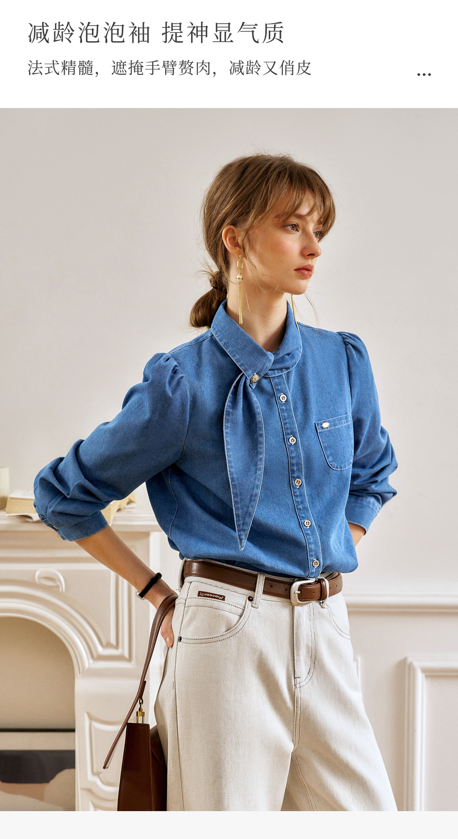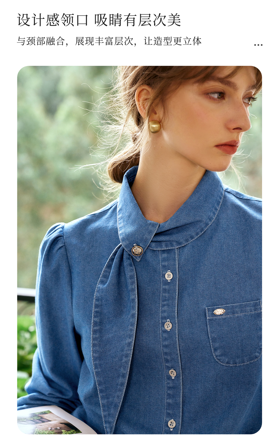 OLrain欧芮儿法式牛仔衬衫女春季2025年新款设计感减龄长袖衬衣