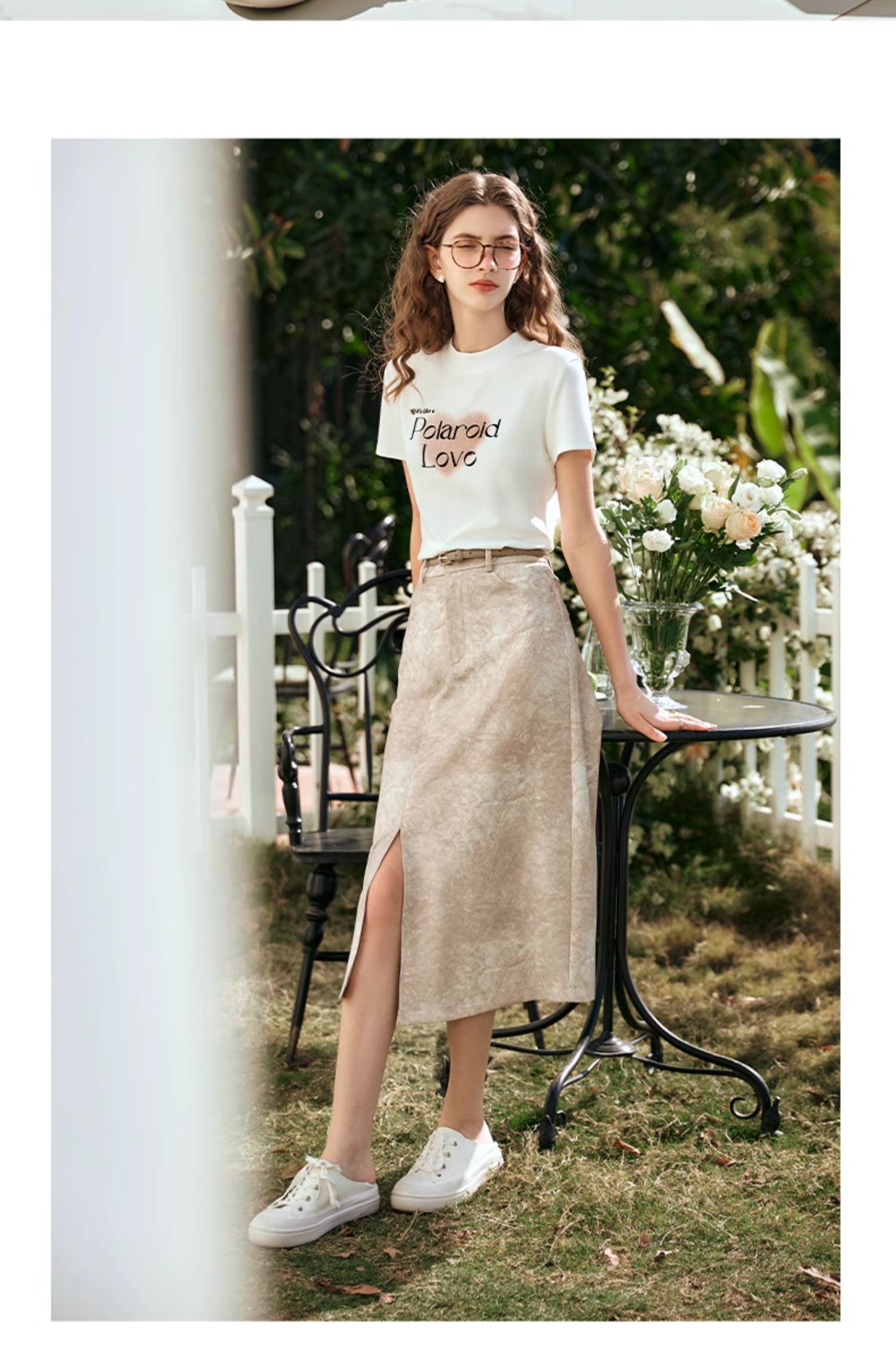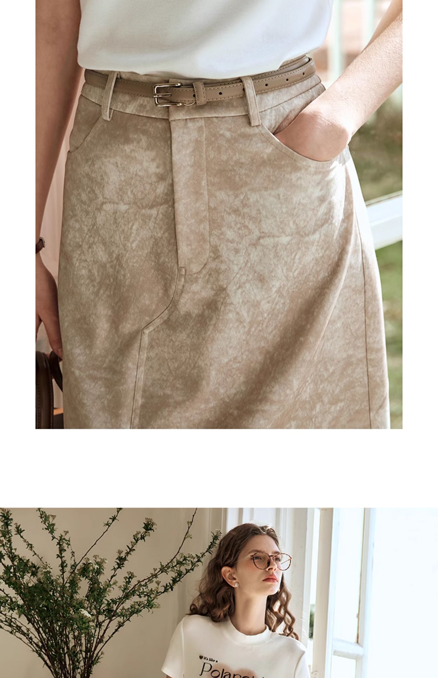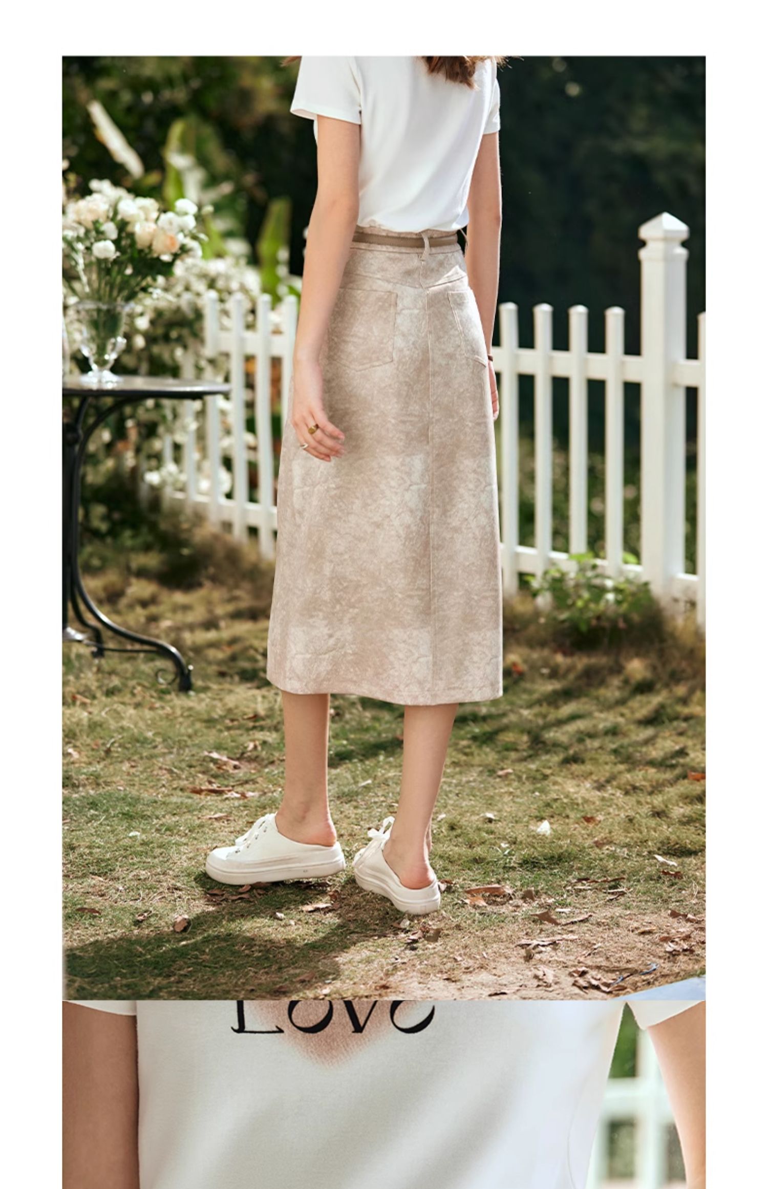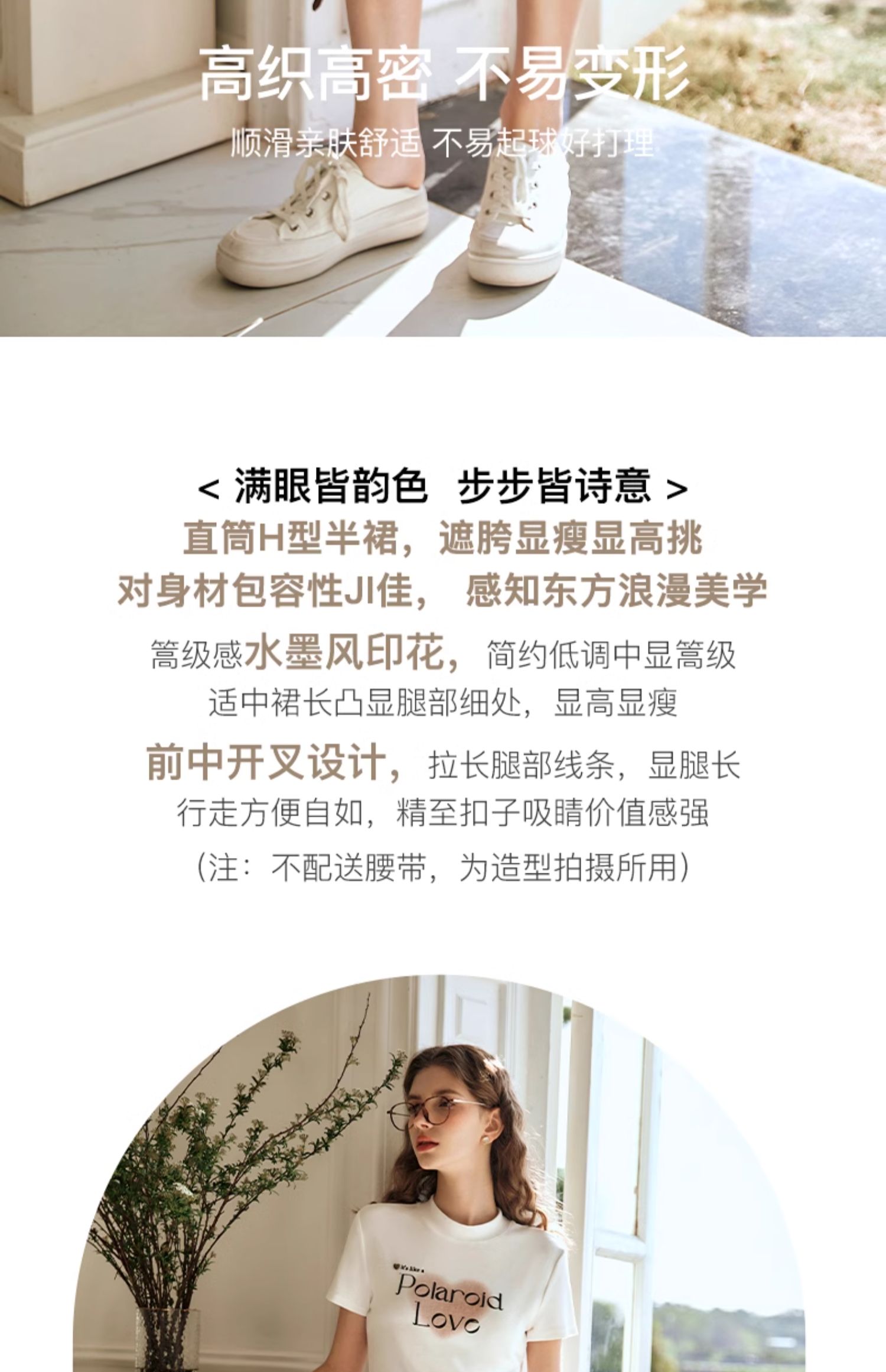 OLrain欧芮儿燕麦色半身裙女春季2024年新款高级水墨印花直筒半裙