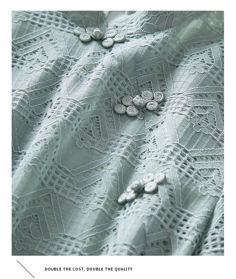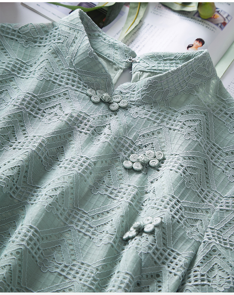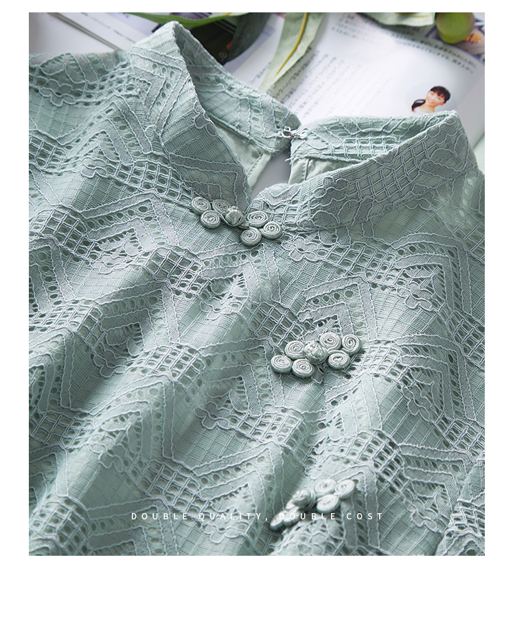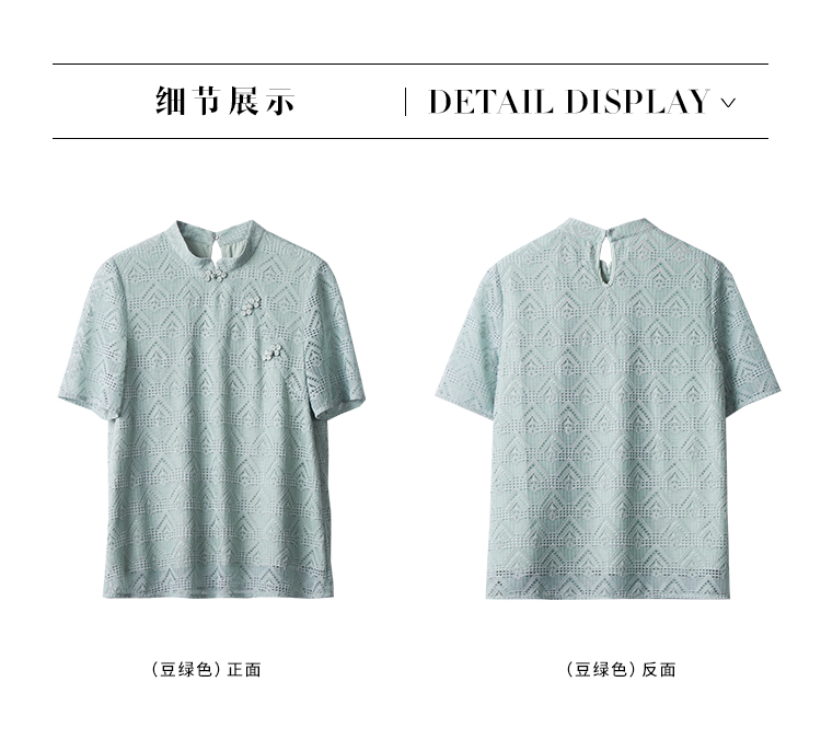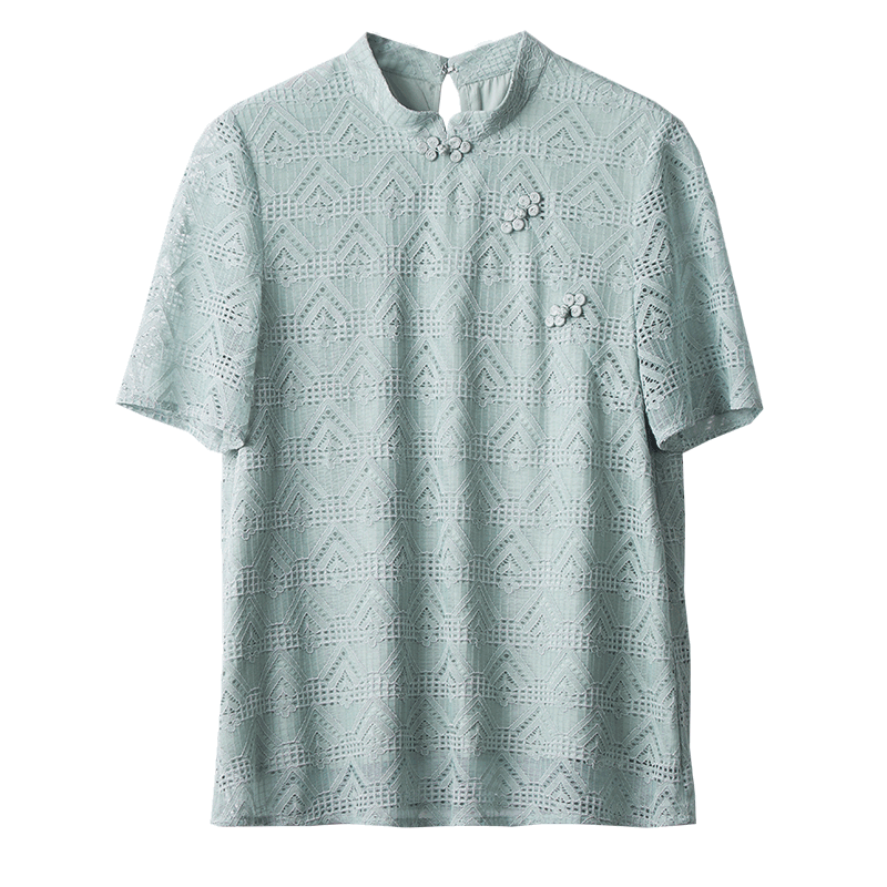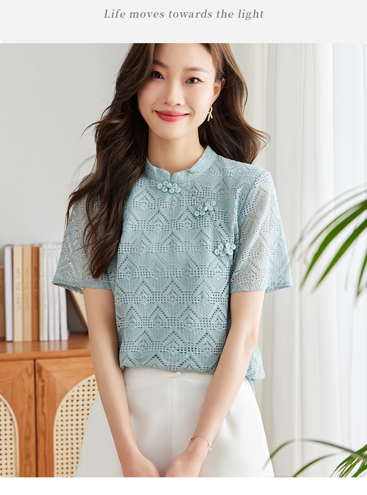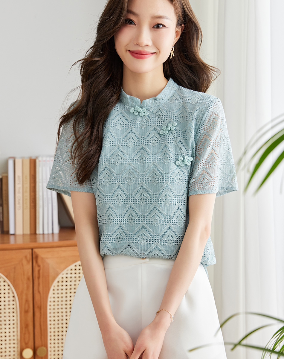 【专属特价】熙世界知性中国风旗袍盘扣蕾丝衫短袖女夏上衣国潮蕾丝衬衫显白仙气衬衣