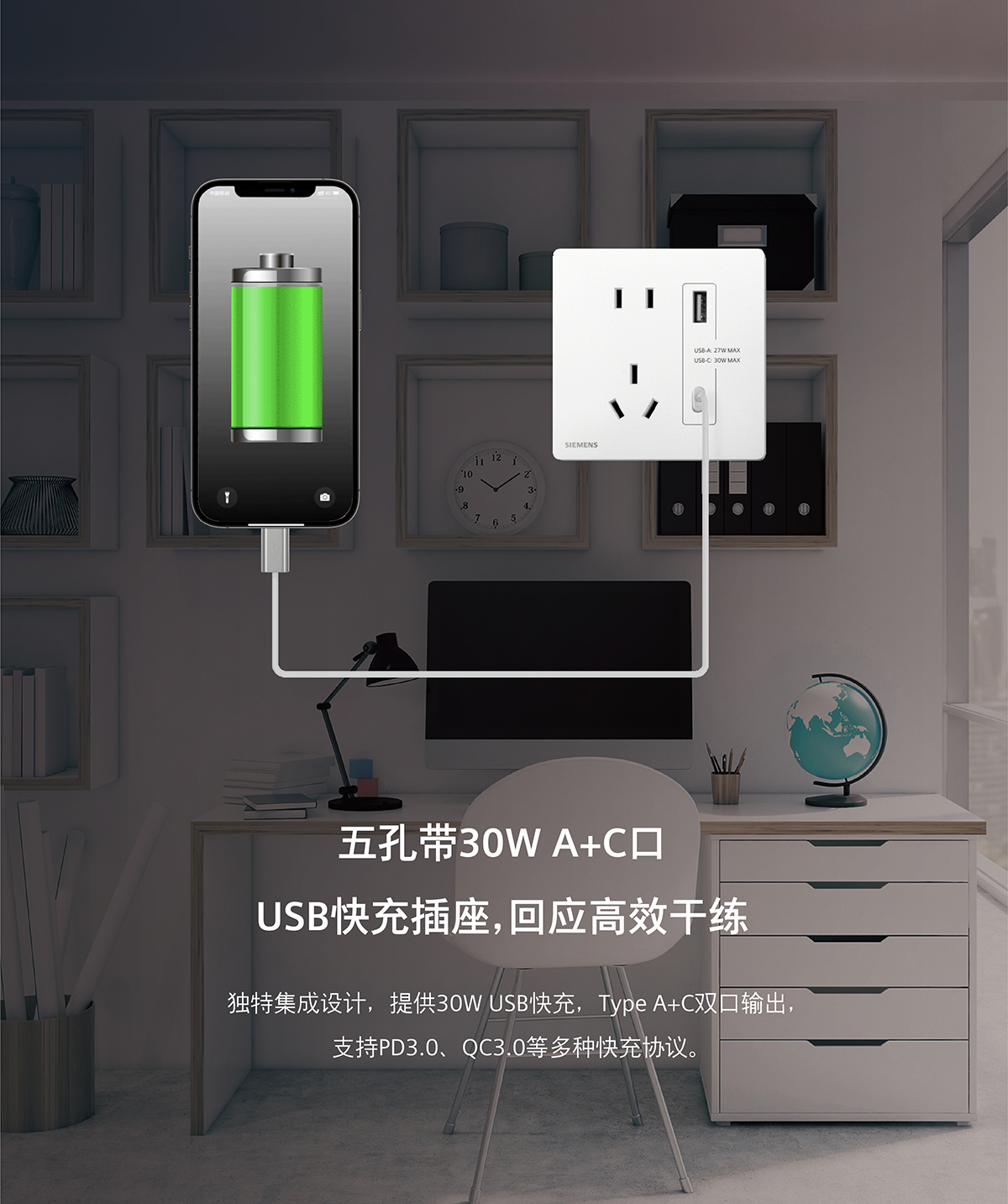 【新品】西门子开关插座超薄荟绎白色10A五孔USB一开空调家用套餐