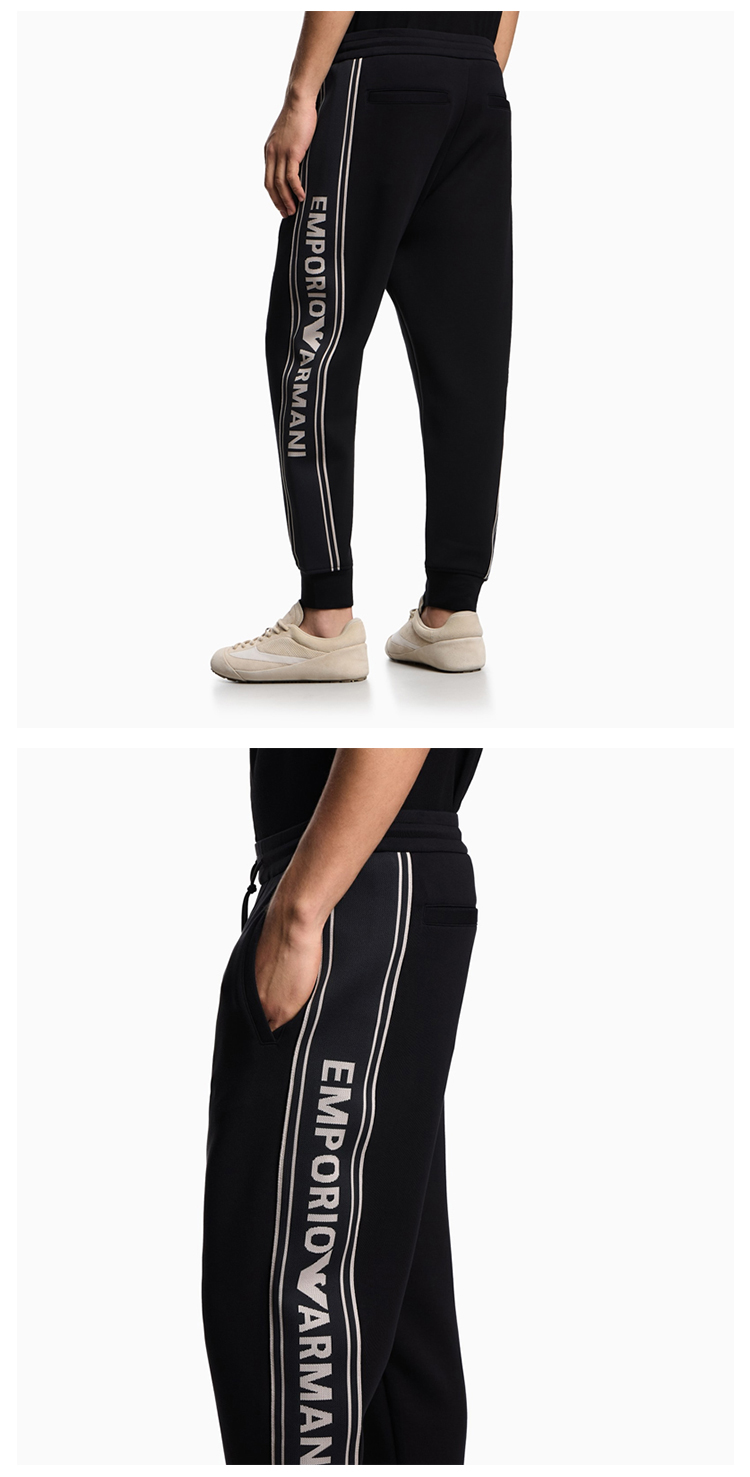 EMPORIO ARMANI 阿玛尼 男士徽标条纹 ASV 双面针织运动裤 黑色 EM002914 AF10013 UC001