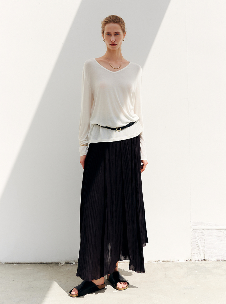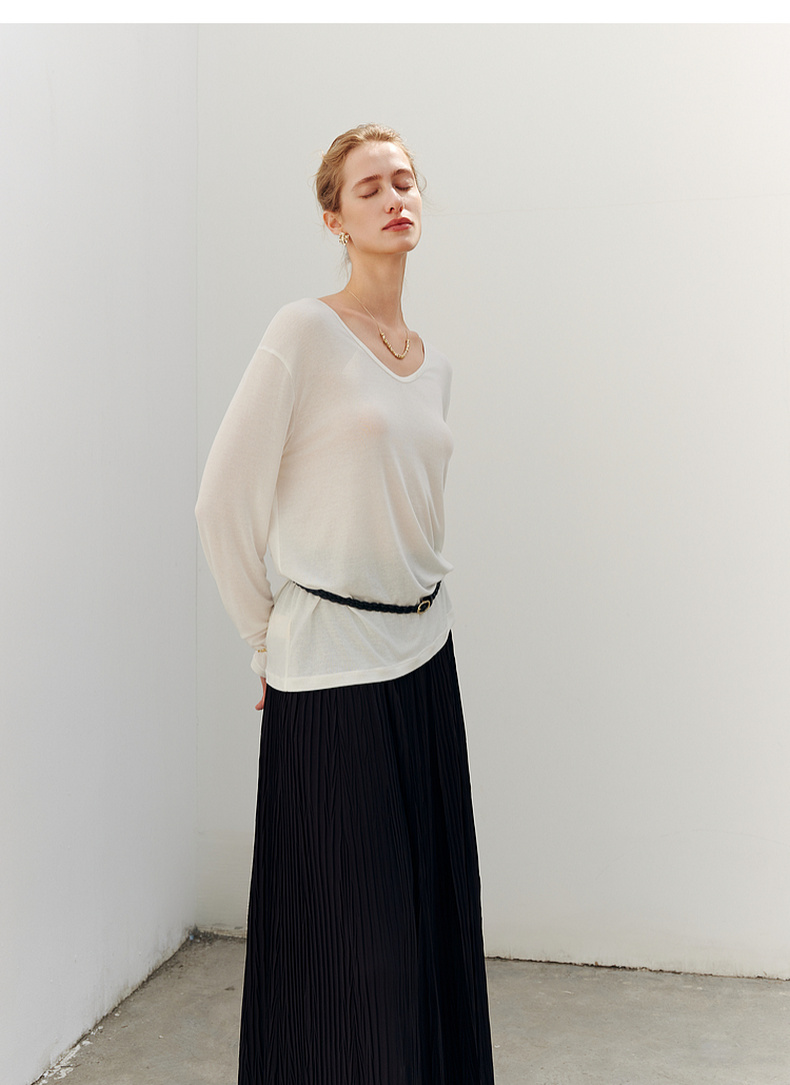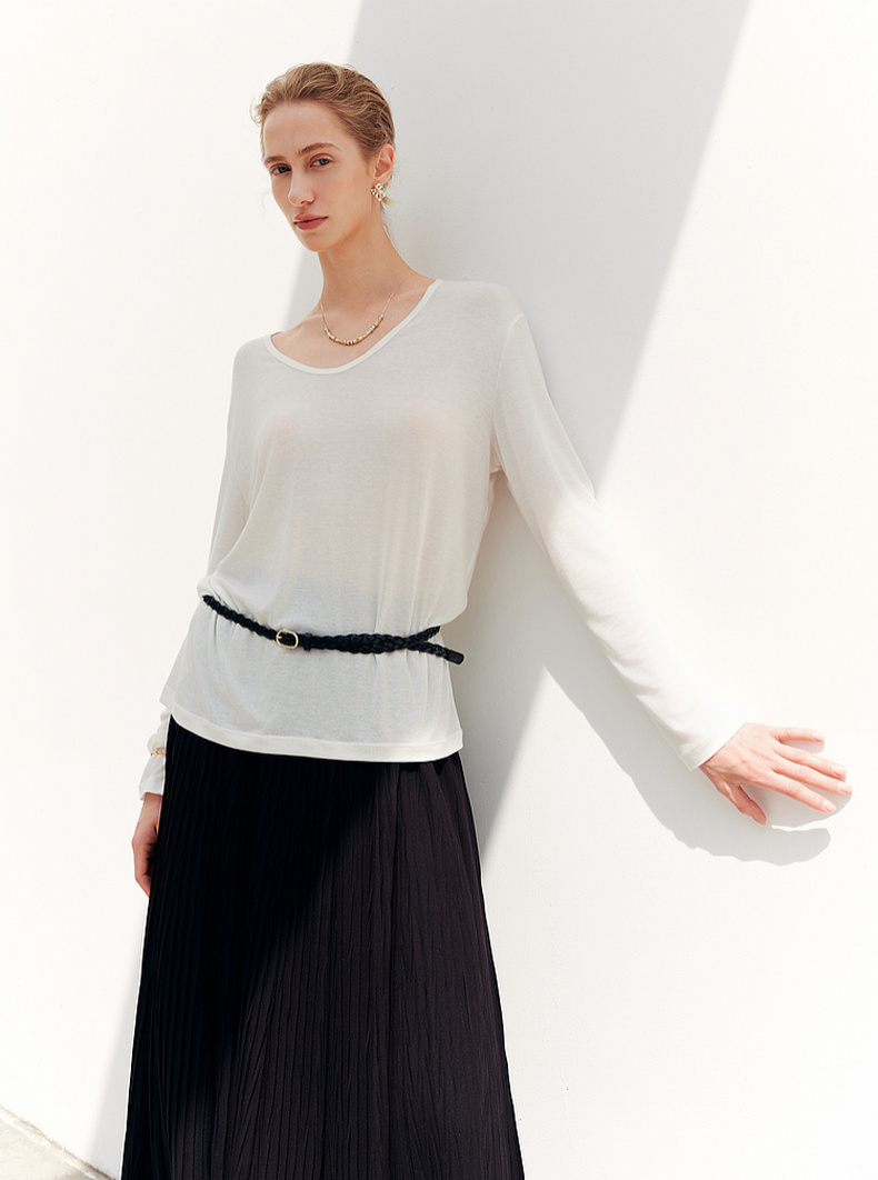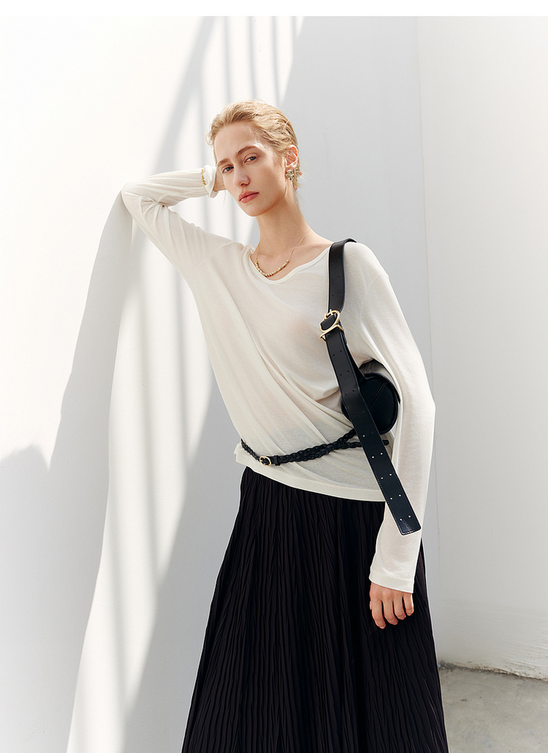 【商场同款】诗凡黎圆领羊毛打底衫2025秋新款长袖上衣3G8200901