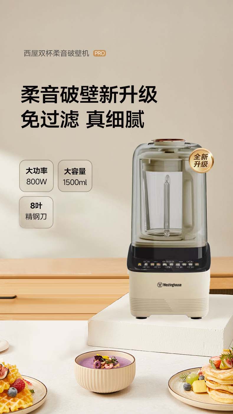 【山姆同款西屋柔音破壁机】柔音破壁,免过滤!800W强力搅拌,透气消声!1500ML大容量,细腻不留渣!多功能一台顶多台!家庭必备好物!【XW-X】