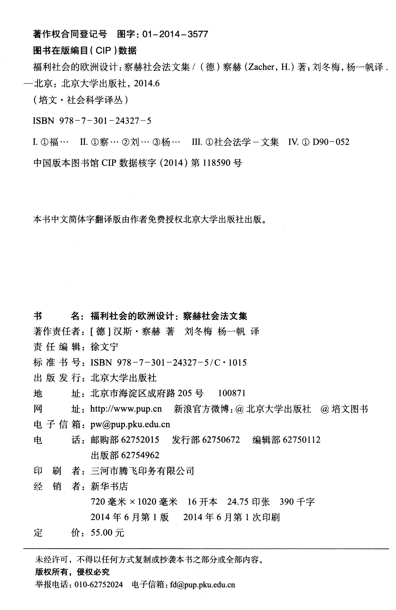 (仓发) 福利社会的欧洲设计:察赫社会法文集/北京大学出版社/[德]汉斯·察赫(Zacher,H)/9787301243275