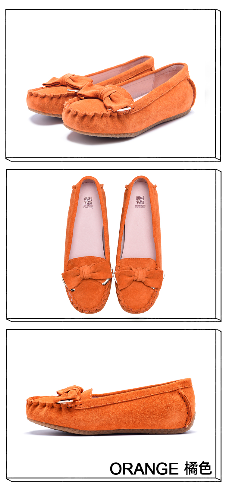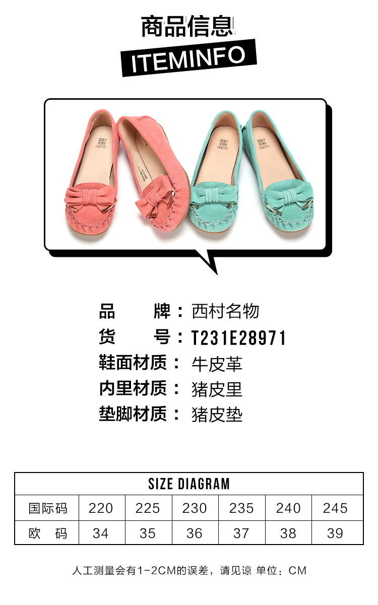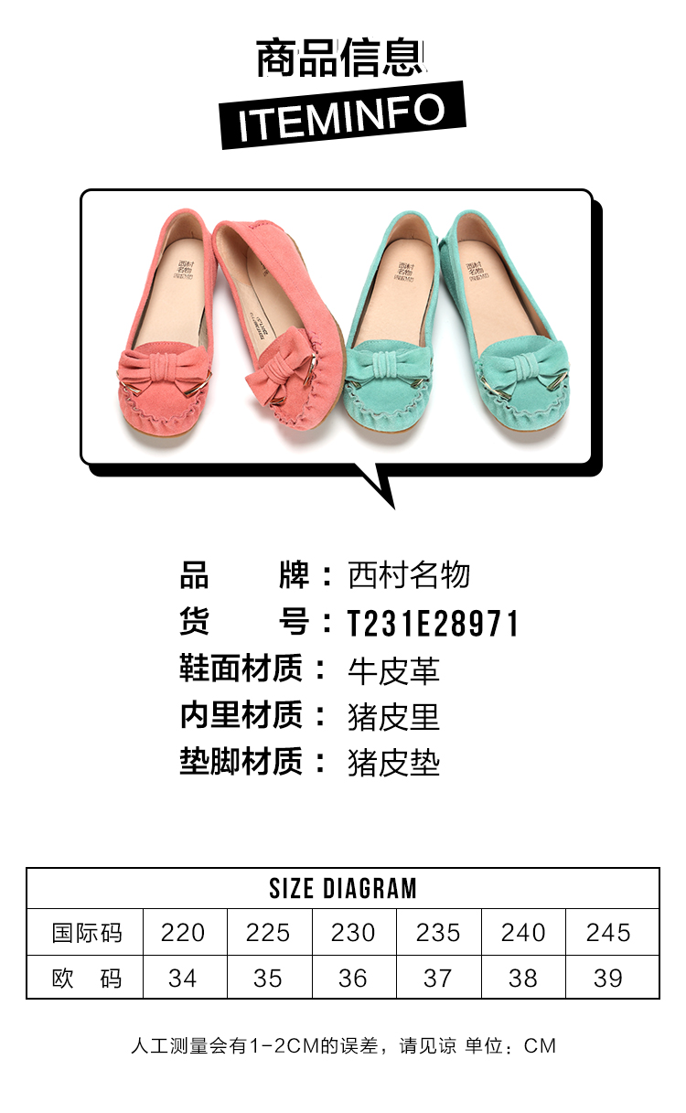 西村名物豆豆鞋女2020春季款真皮乐福鞋浅口平底一脚蹬单鞋T231E28971