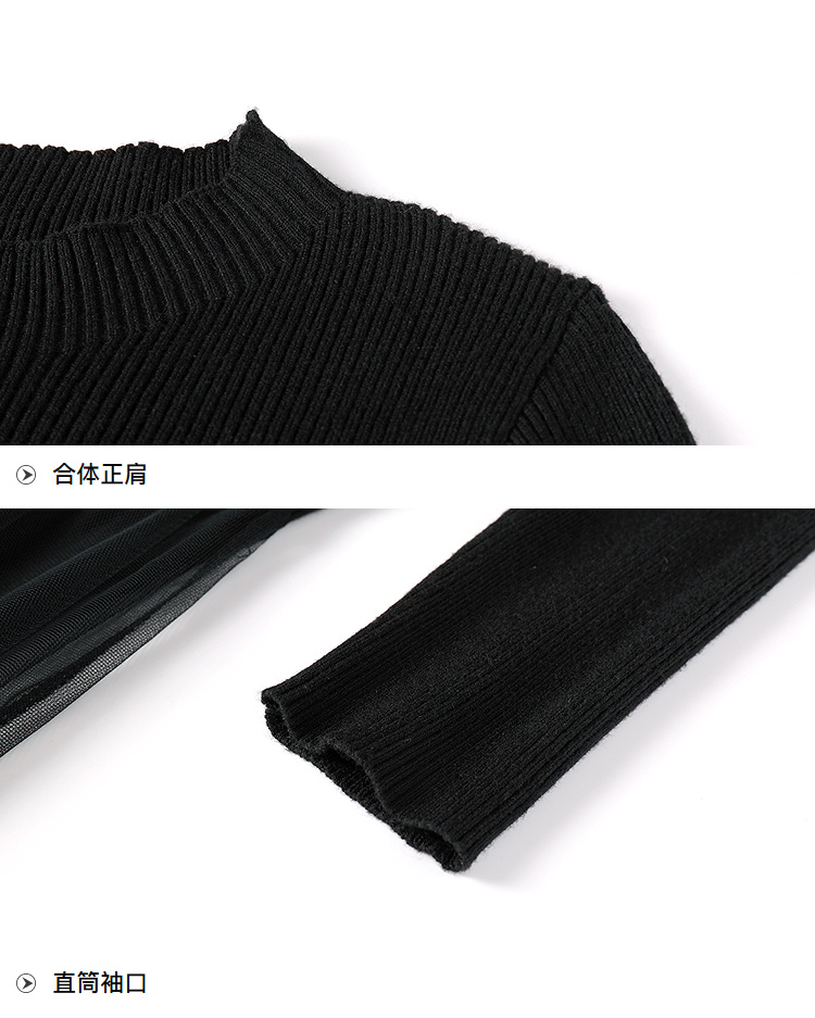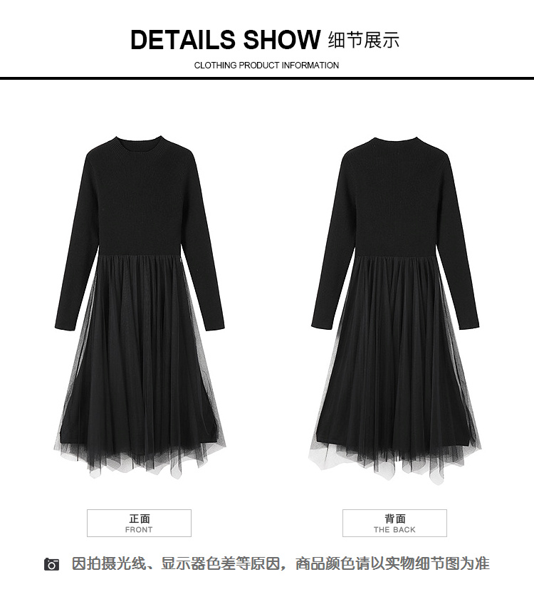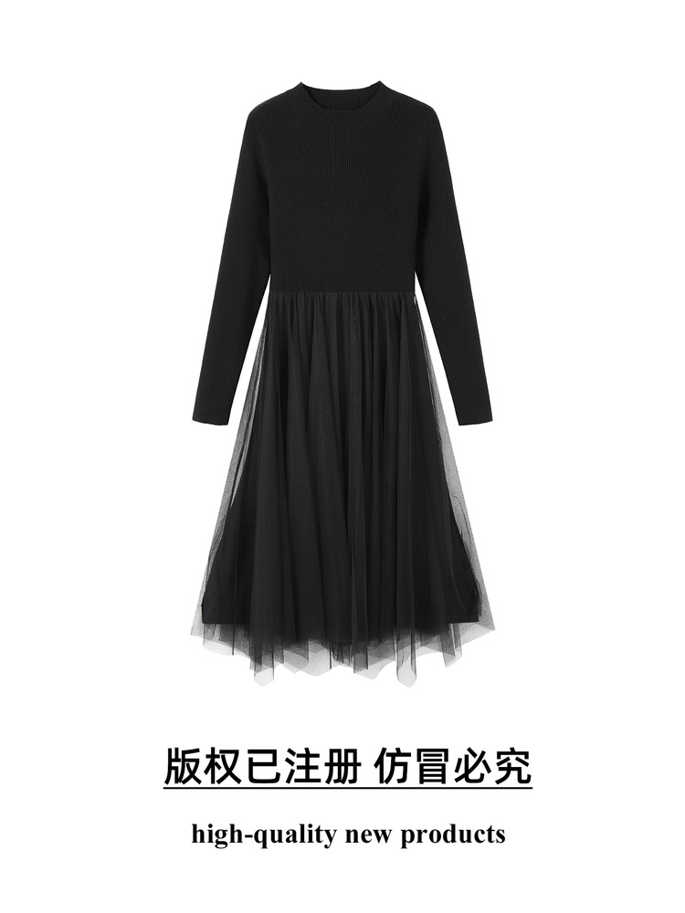 奢姿大码女装针织拼接网纱连衣裙秋冬胖妹妹遮肉气质中长款裙子9853853888