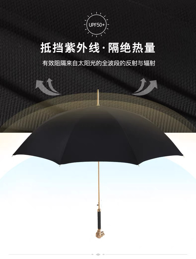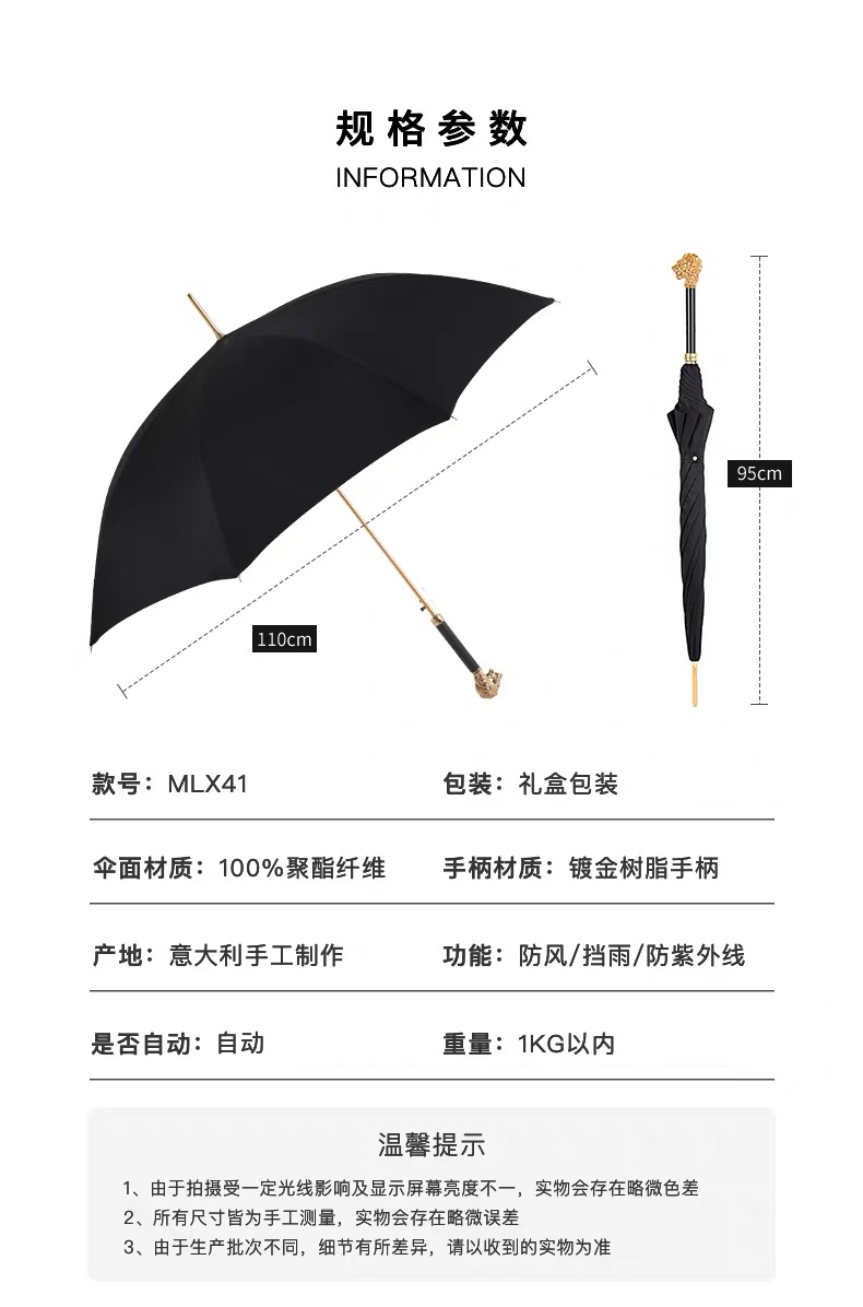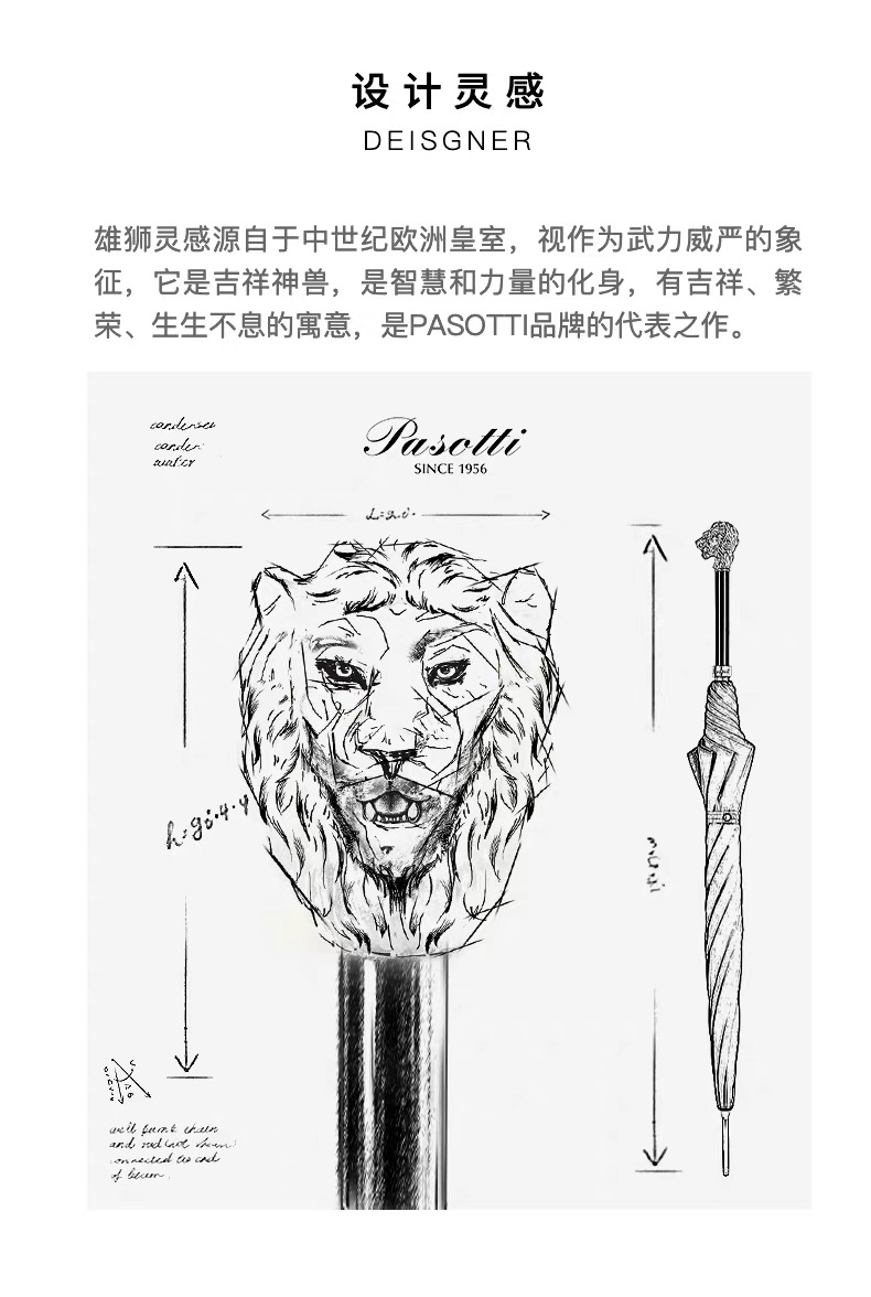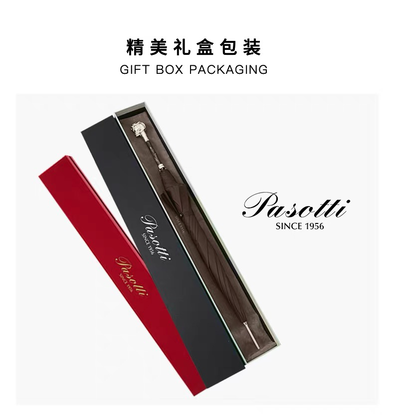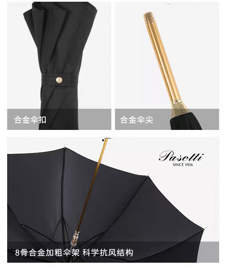 Pasotti意大利手工定制黑色伞面金狮子防紫外线晴雨伞男士礼盒装