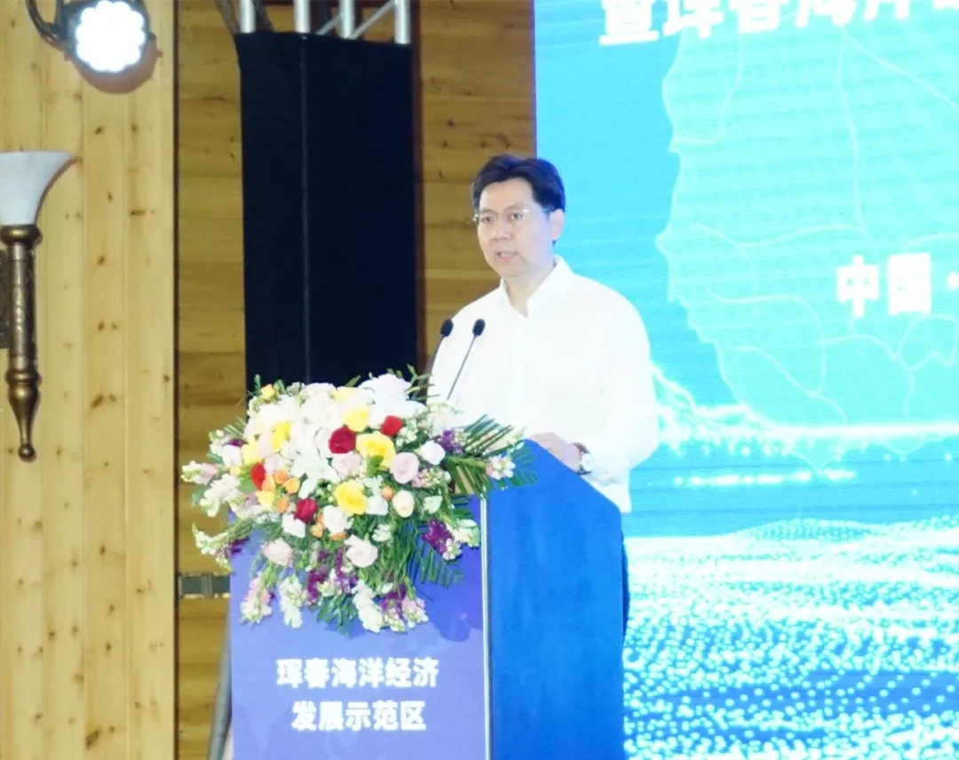 会议宣读了国家发改委、自然资源部关于同意设立珲春海洋经济发展示范区的联合复函。郑建邦、巴音朝鲁、江泽林,吉林省委常委、延边州委书记田锦尘共同为珲春海洋经济发展示范区揭牌。