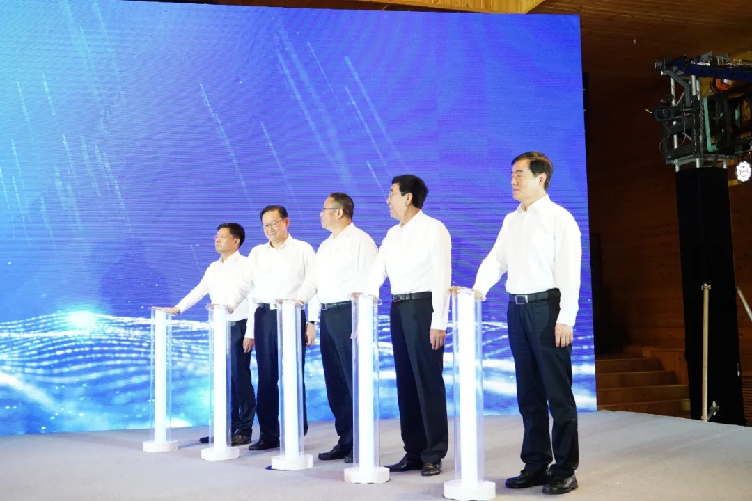 郑建邦、巴音朝鲁、江泽林,吉林省委常委、延边州委书记田锦尘共同为珲春海洋经济发展示范区揭牌。