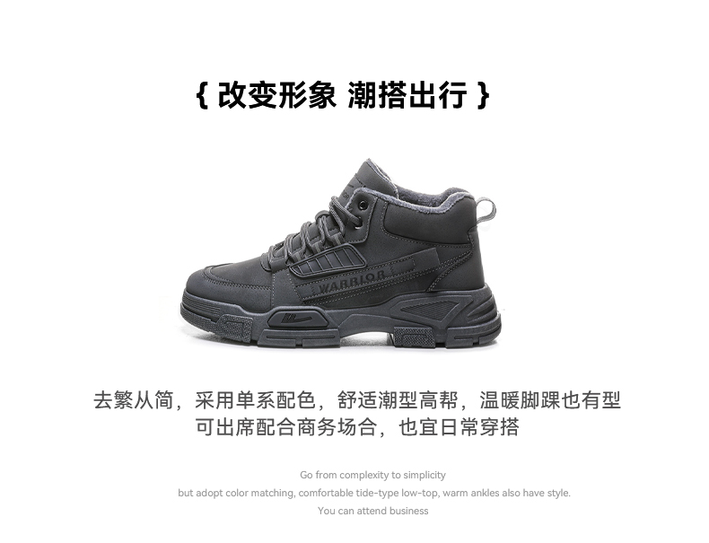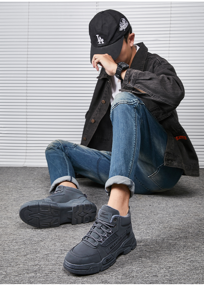 回力男鞋工装鞋春秋季2025新款高帮加绒棉鞋户外登山鞋马丁靴男款