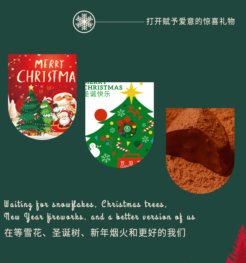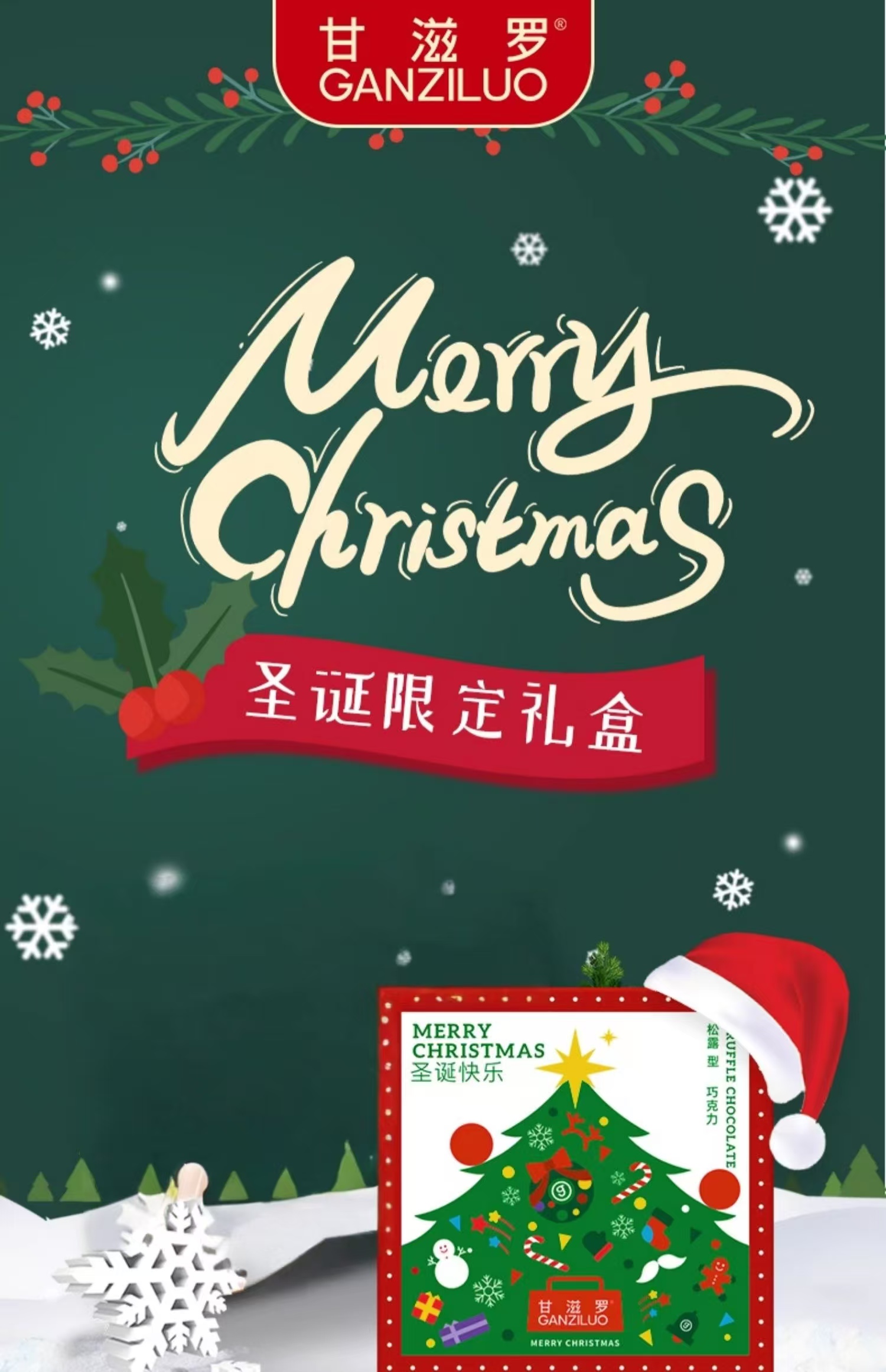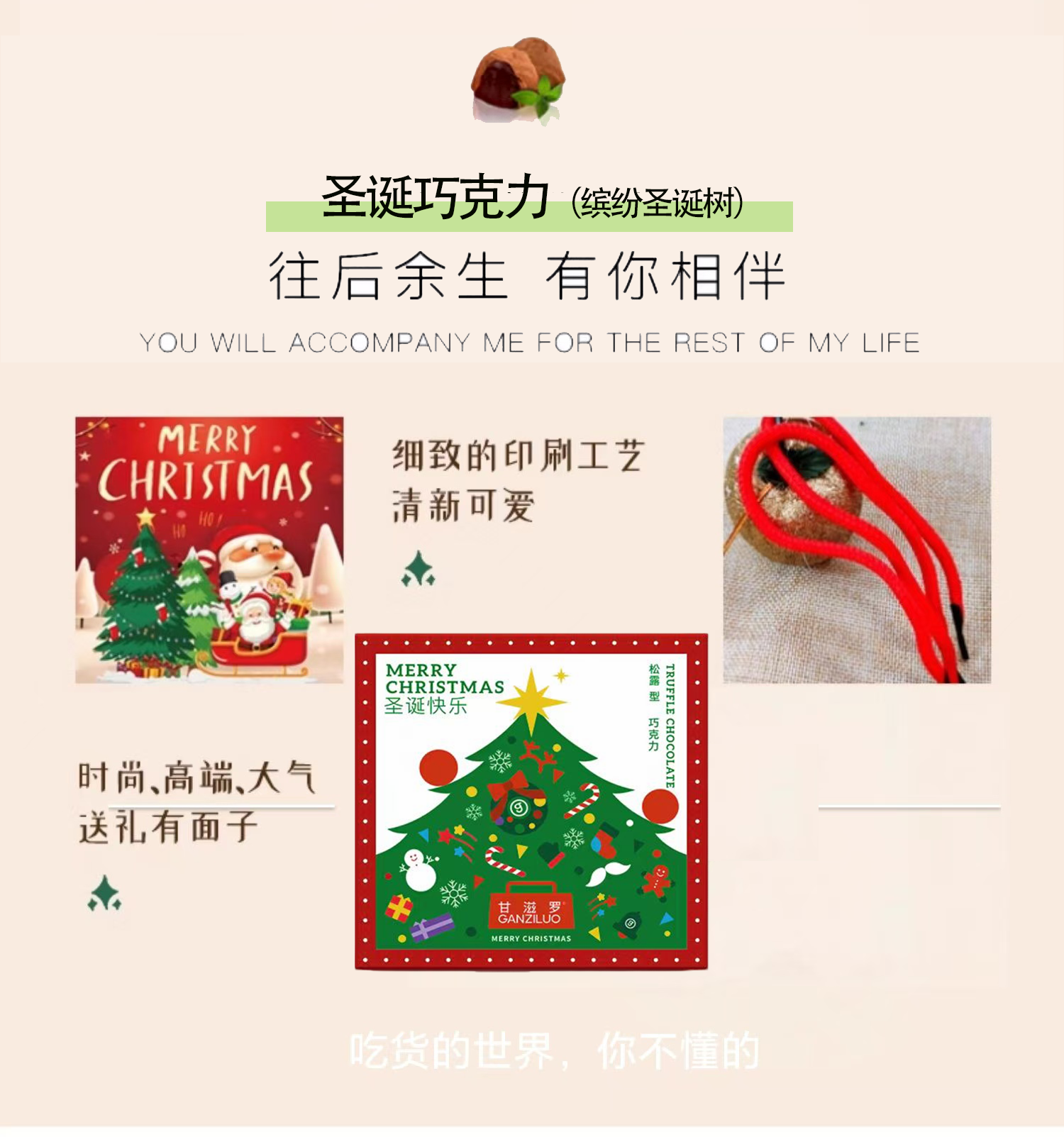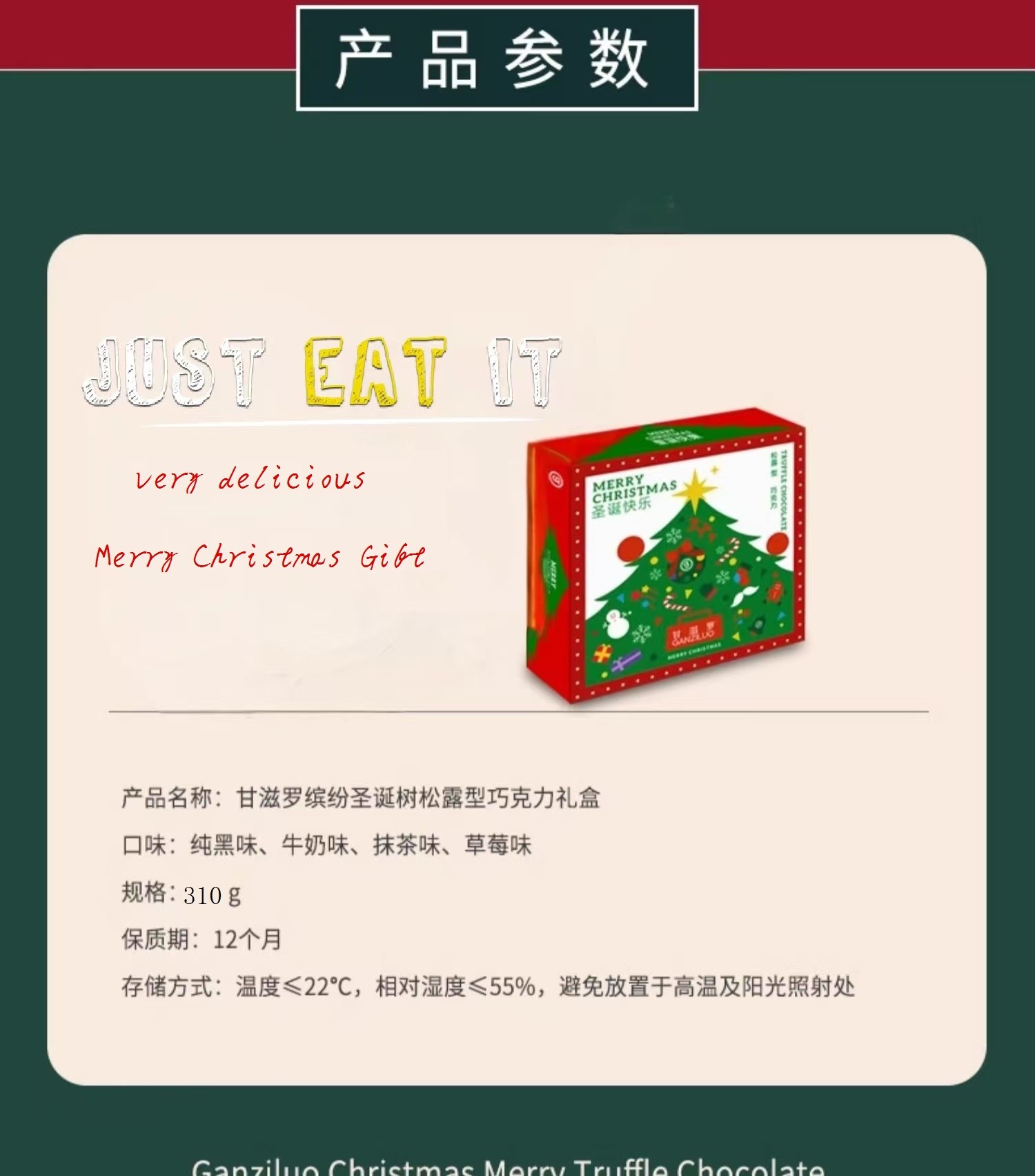 【预售-12月22日配送】甘滋罗纯可可脂松露巧克力-圣诞款(310g/盒 85-95颗 混合口味)配礼袋+圣诞帽生产日期:12月