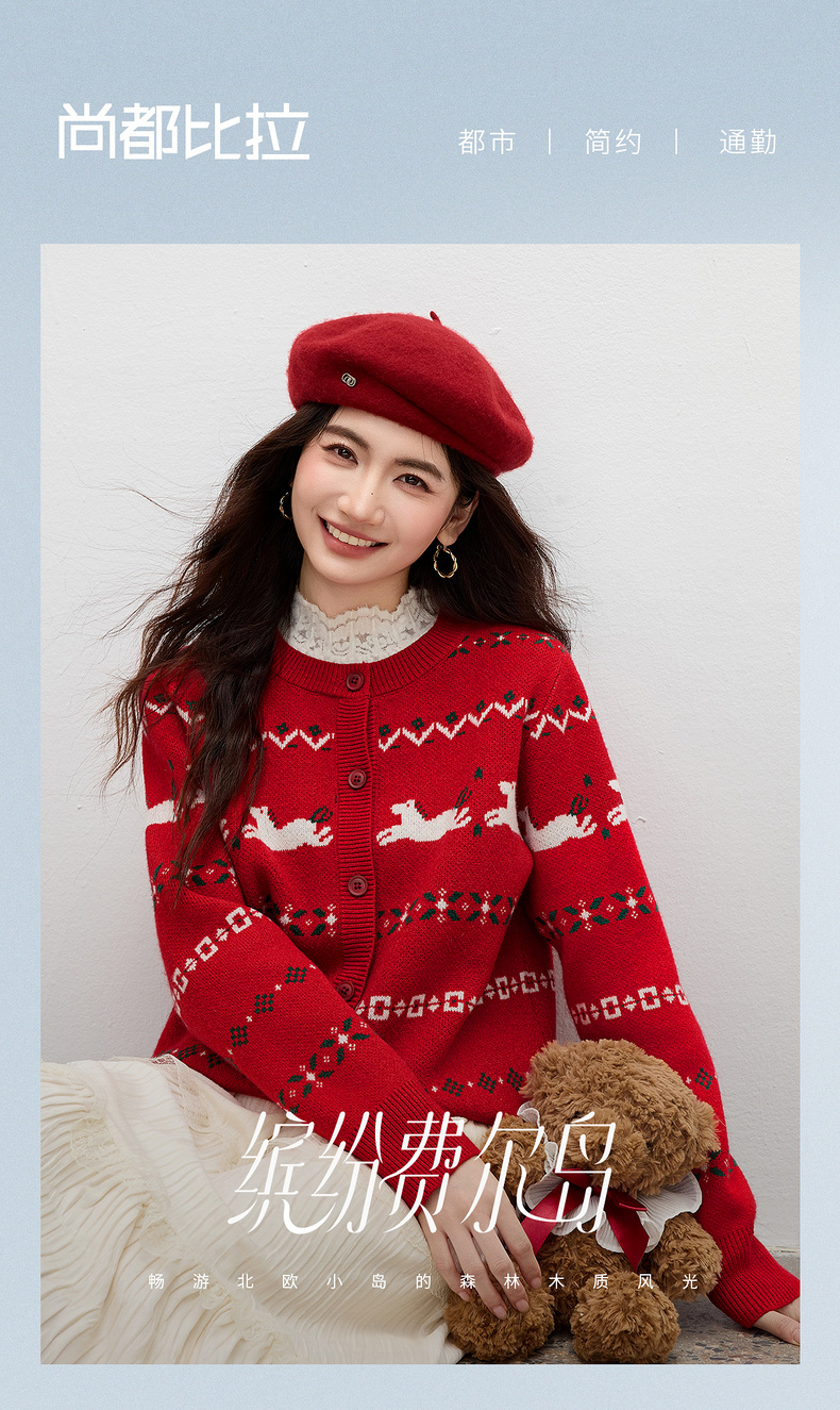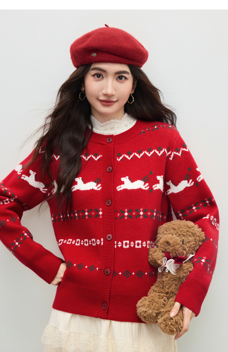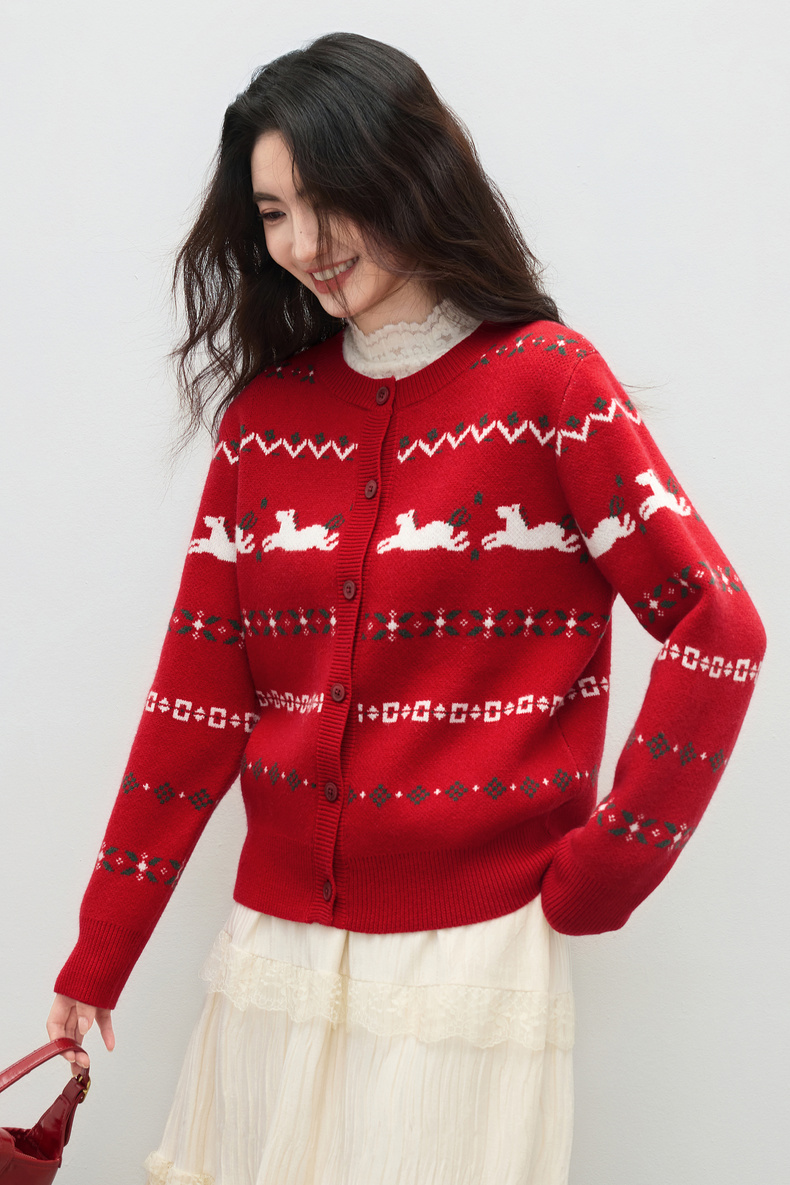 【内购】【冰岛系列】圣诞新年氛围感北欧风费尔岛圆领宽松显瘦开衫毛衣-W54EB4030