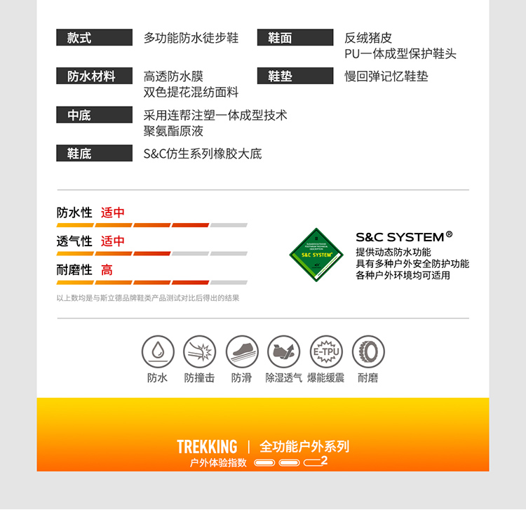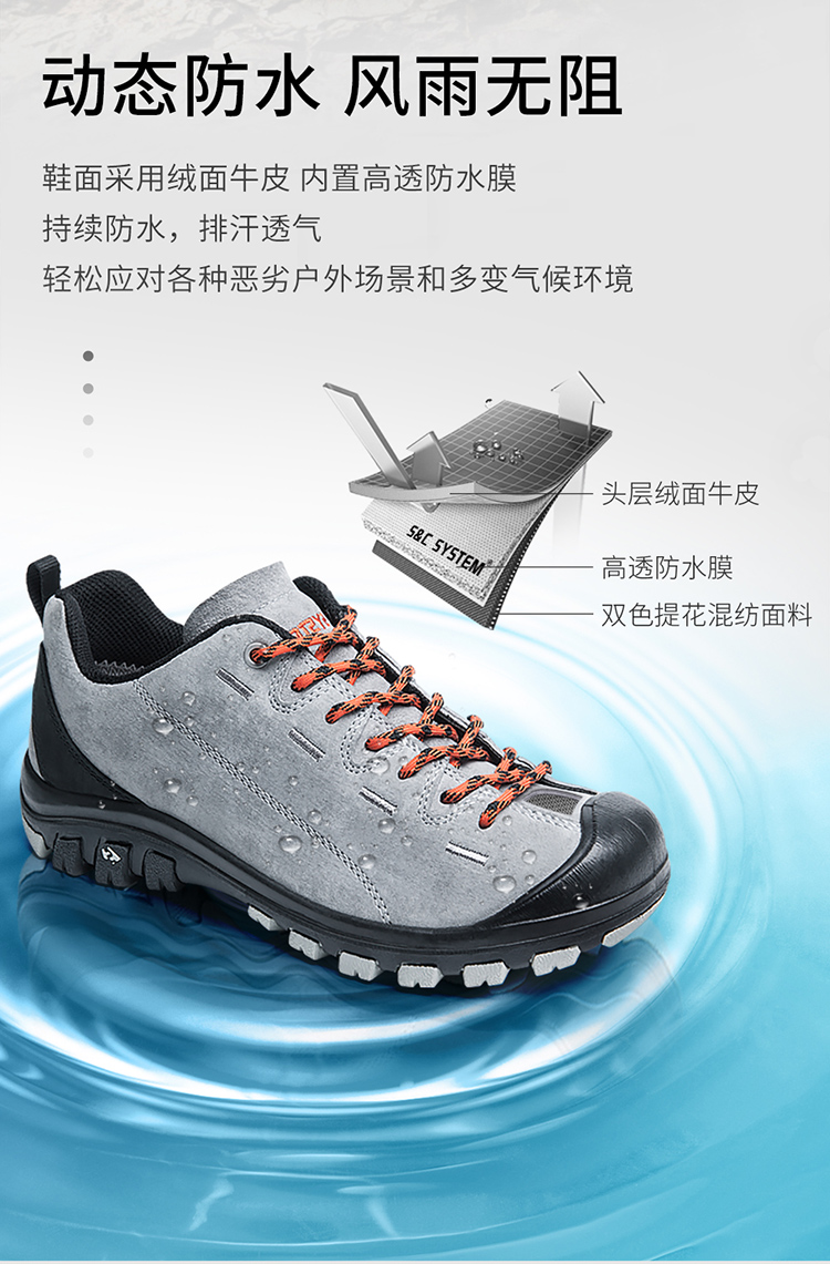 【防水版】斯立德户外运动鞋防水防滑徒步鞋女牛皮厚底耐磨登山鞋男透气S204大地