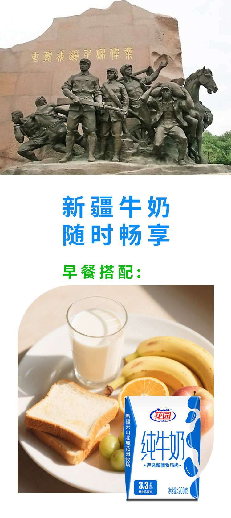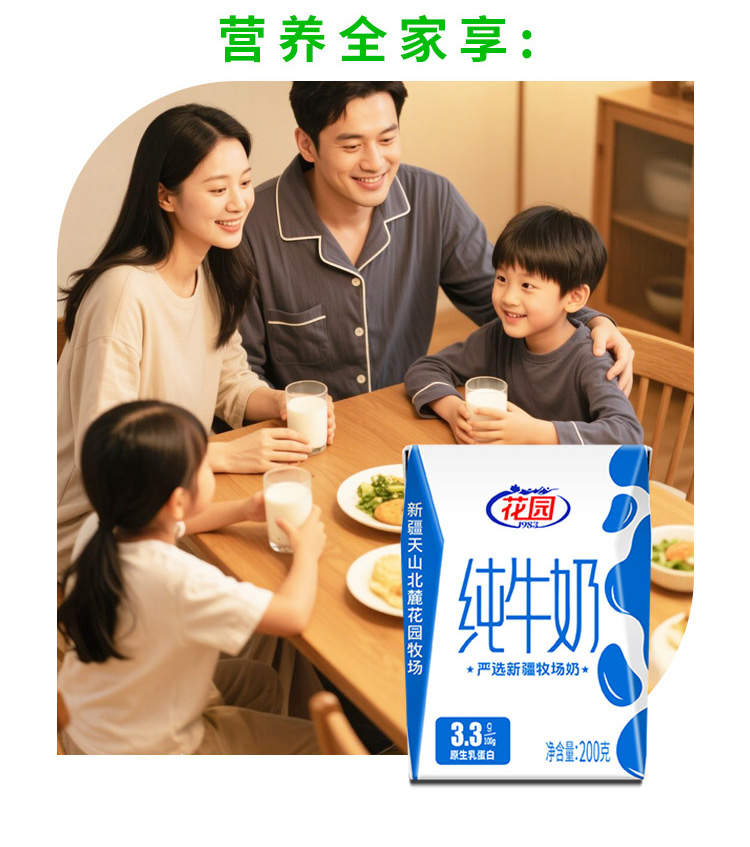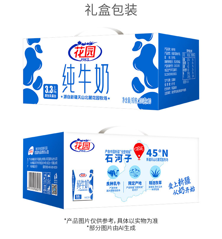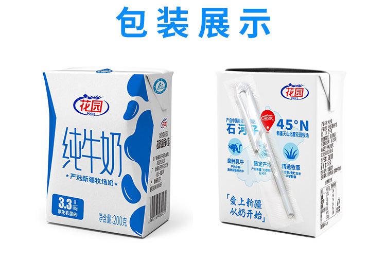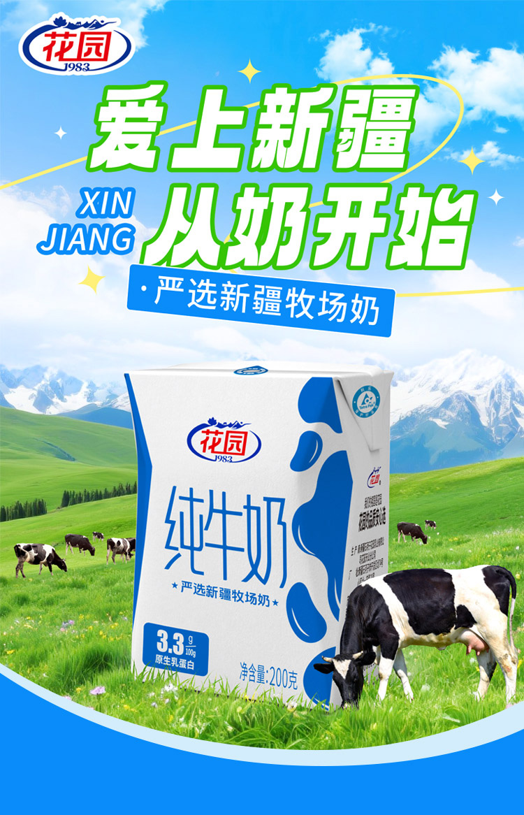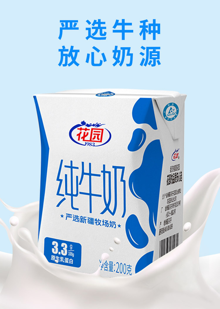 新疆花园纯牛奶-利乐砖(200ml*20盒/箱 蛋白含量≥3.3)生产日期: 3月