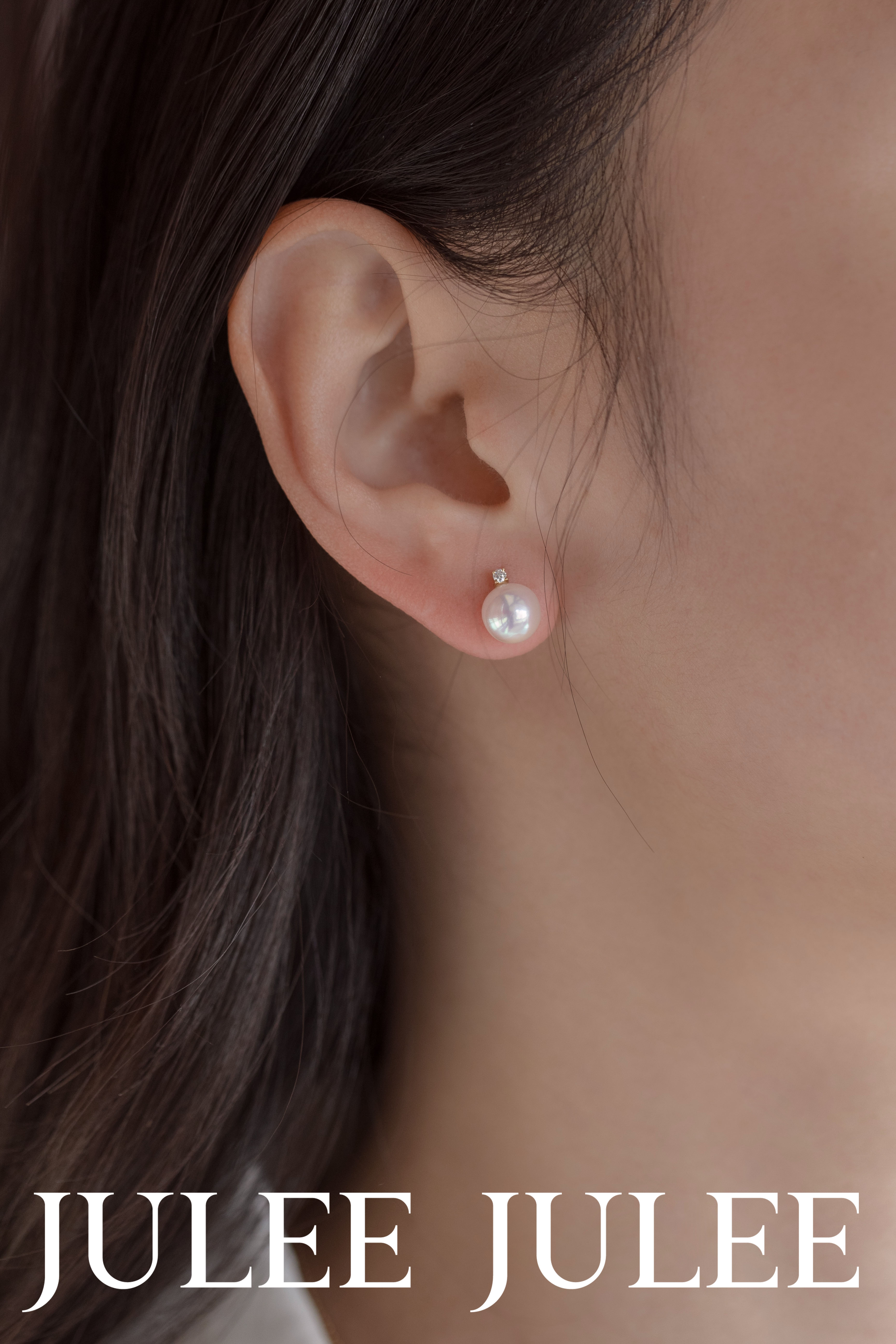 【18K黄金钻石Akoya珍珠耳钉】