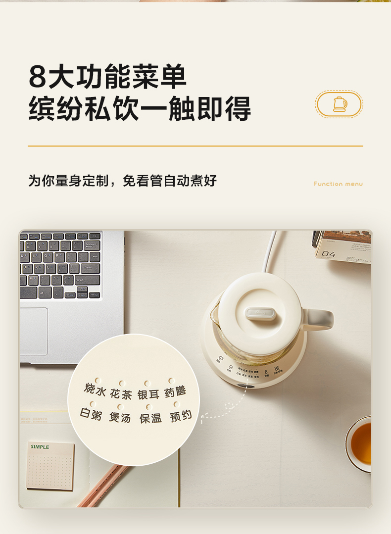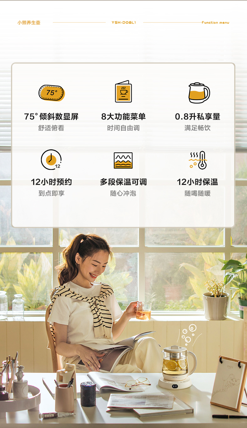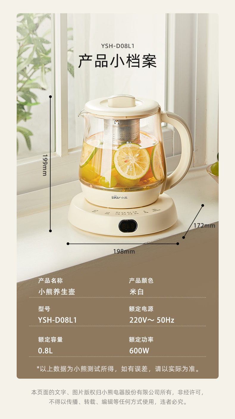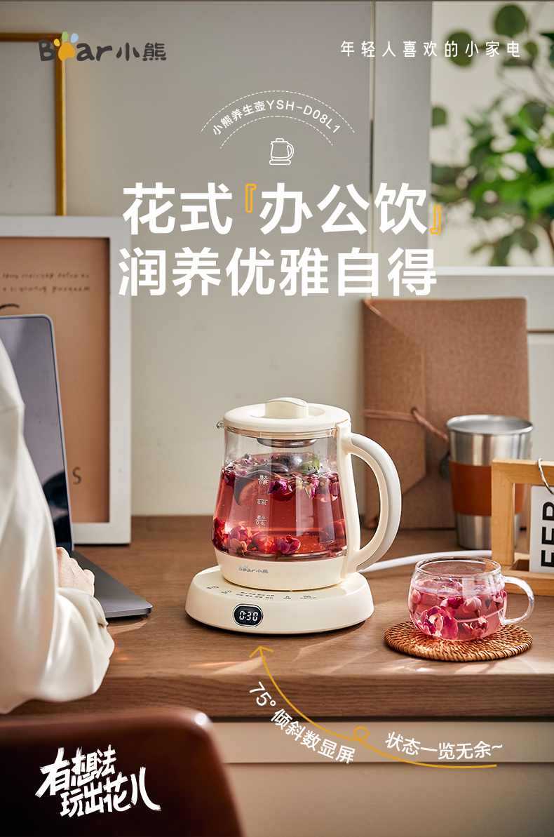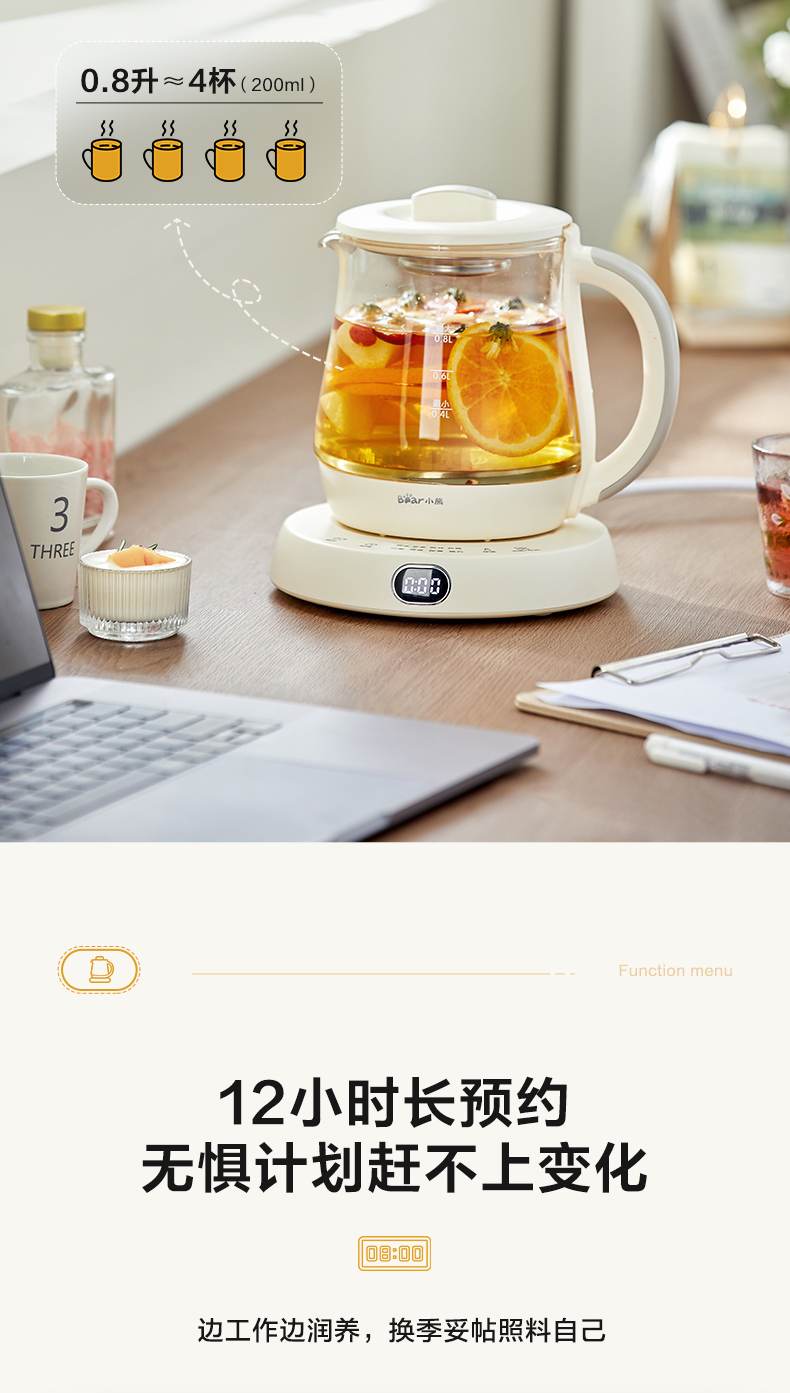 【小程序】小熊(Bear)迷你养生杯养生壶煮茶器 办公室家用便携煮茶壶恒温烧水壶小型花茶壶0.8升YSH-D08L1