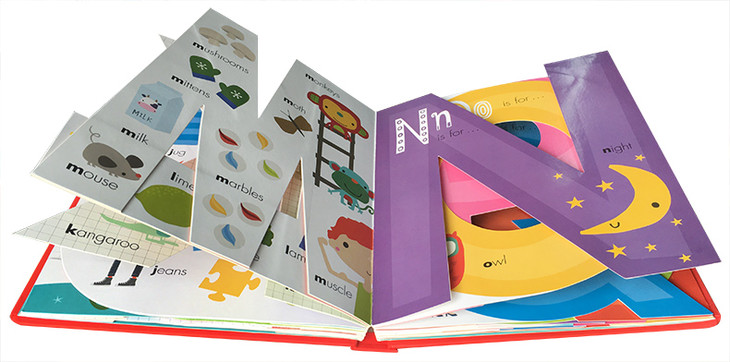 作为一本字母书,其实它很简单,就是帮助孩子们认识26个字母。但这本书简单之中又多了很多奇妙的心思:每一页书就是一个镂空的立体的大字母,每个字母上分散着数个以它开头的单词示例,并附带上能把人萌化了的插图。