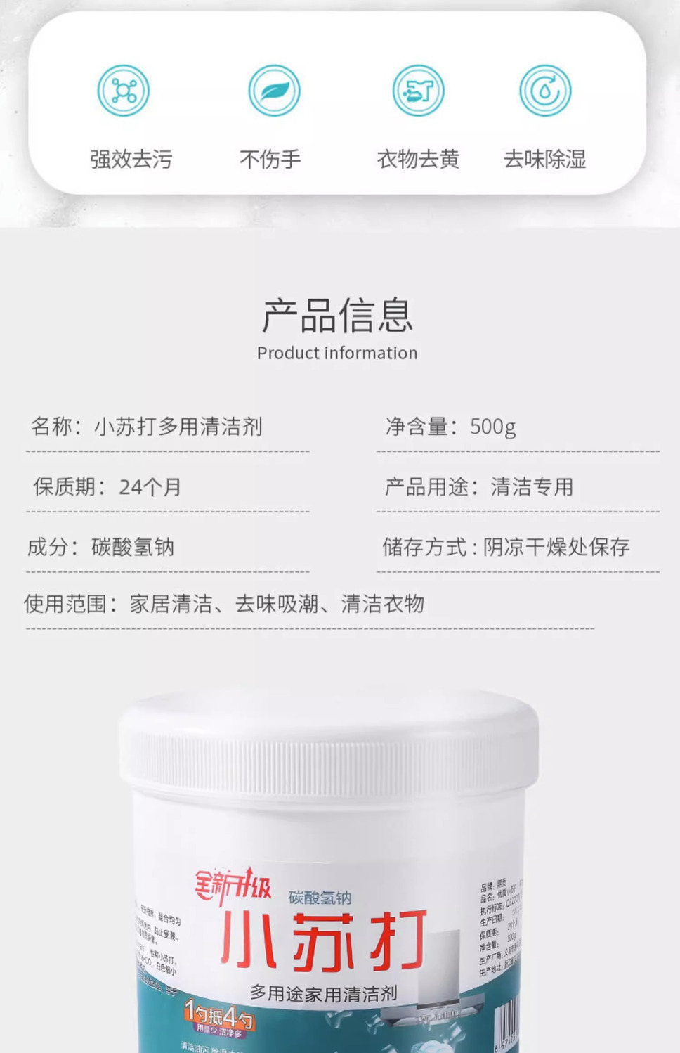 【小苏打粉清洁去污】洗衣服去黄 家用厨房多用途 瓷砖除水垢去油清洁剂
