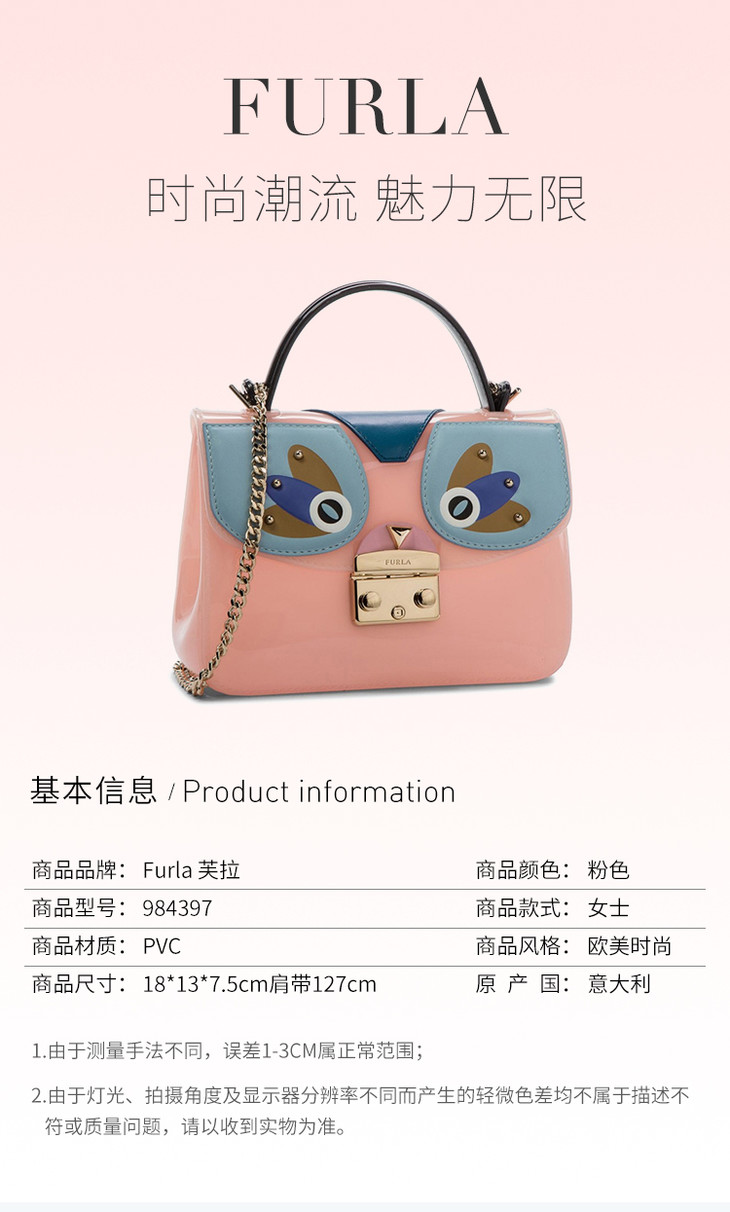 【香港直邮】QH Furla 芙拉 女士粉色PVC手提单肩包 984397 商品缩略图0